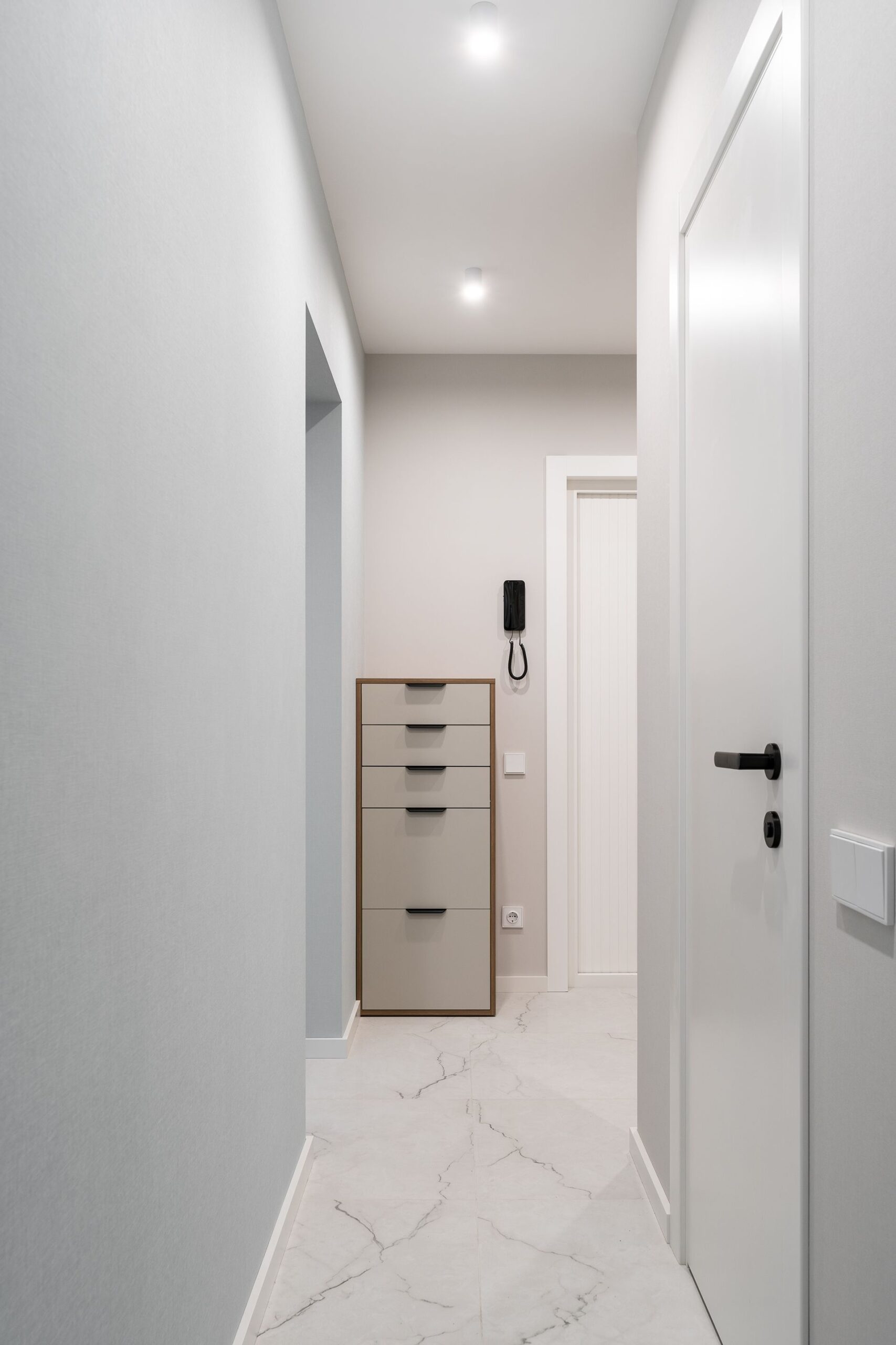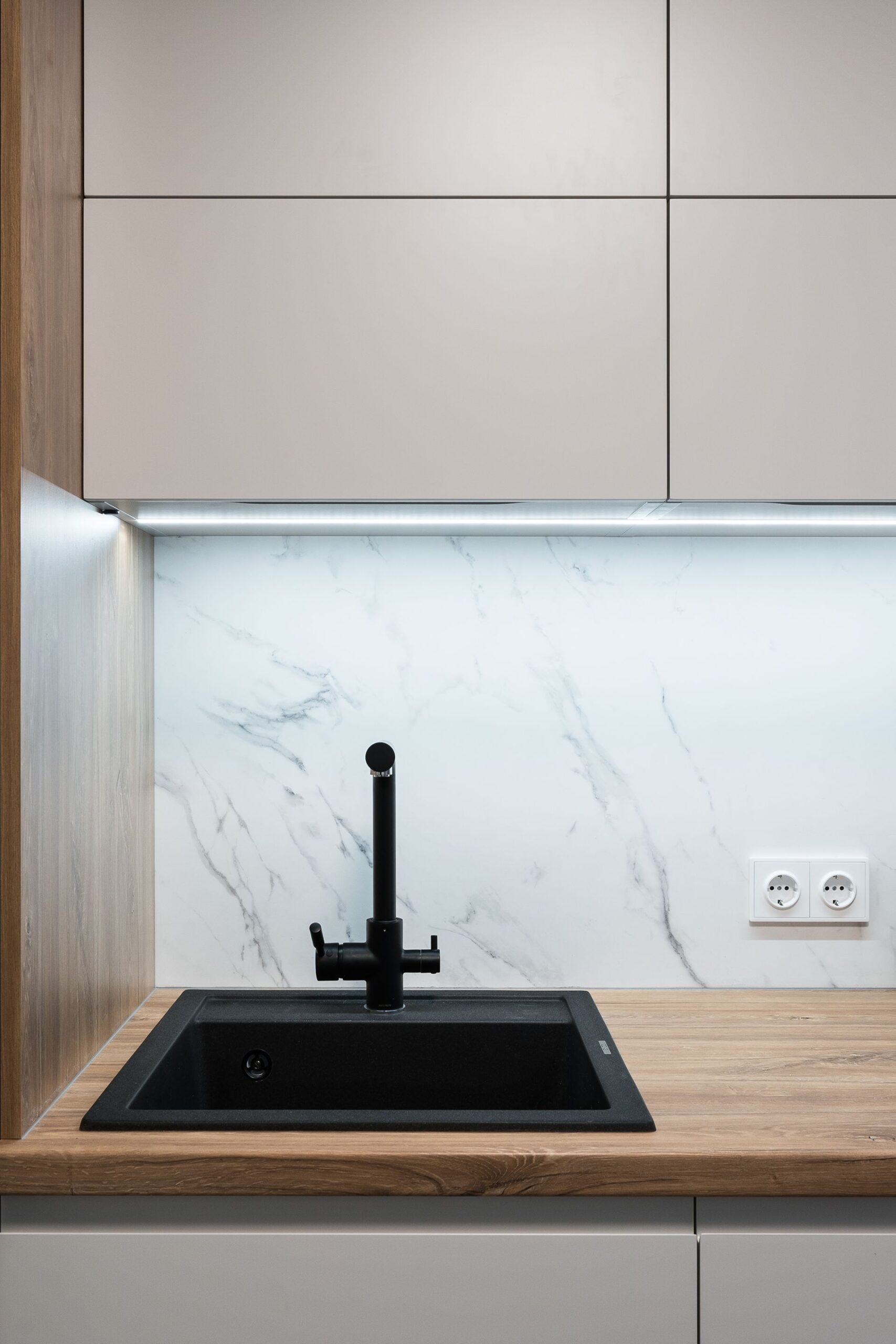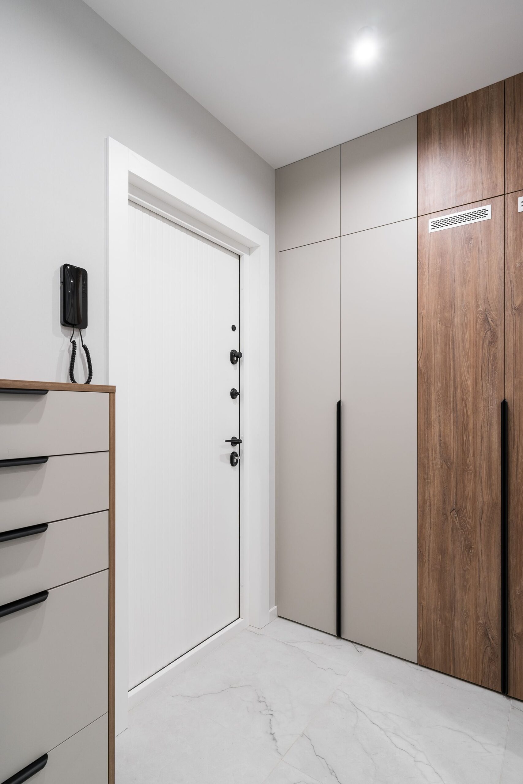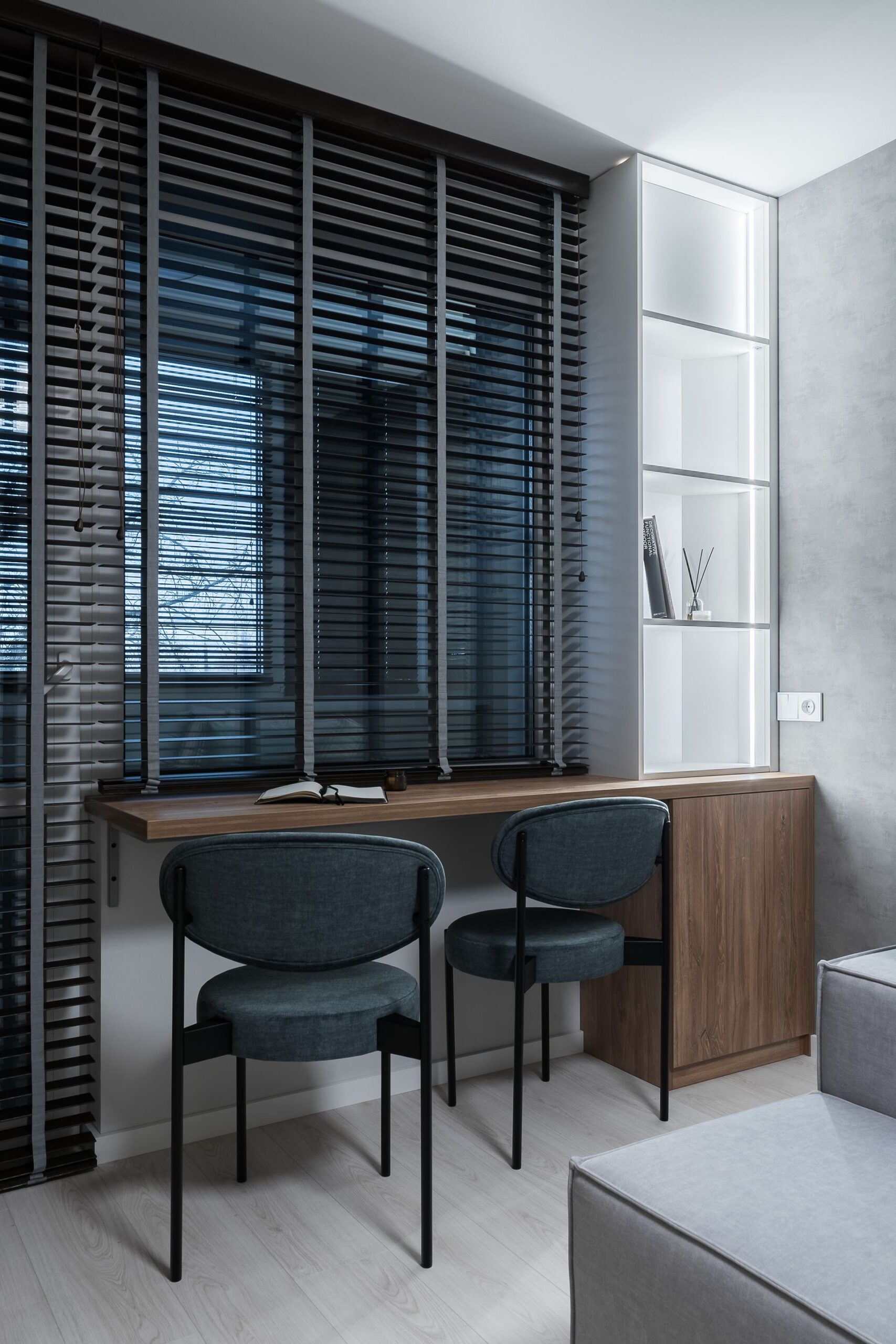 К нам обратились с готовым дизайн-проектом от студии «Ателит», в котором был заложен современный, лаконичный стиль с акцентом на натуральные текстуры и чёткие линии. Наша задача — воплотить задумку в жизнь, учитывая сложную конфигурацию стен и сохраняя гармонию интерьера.