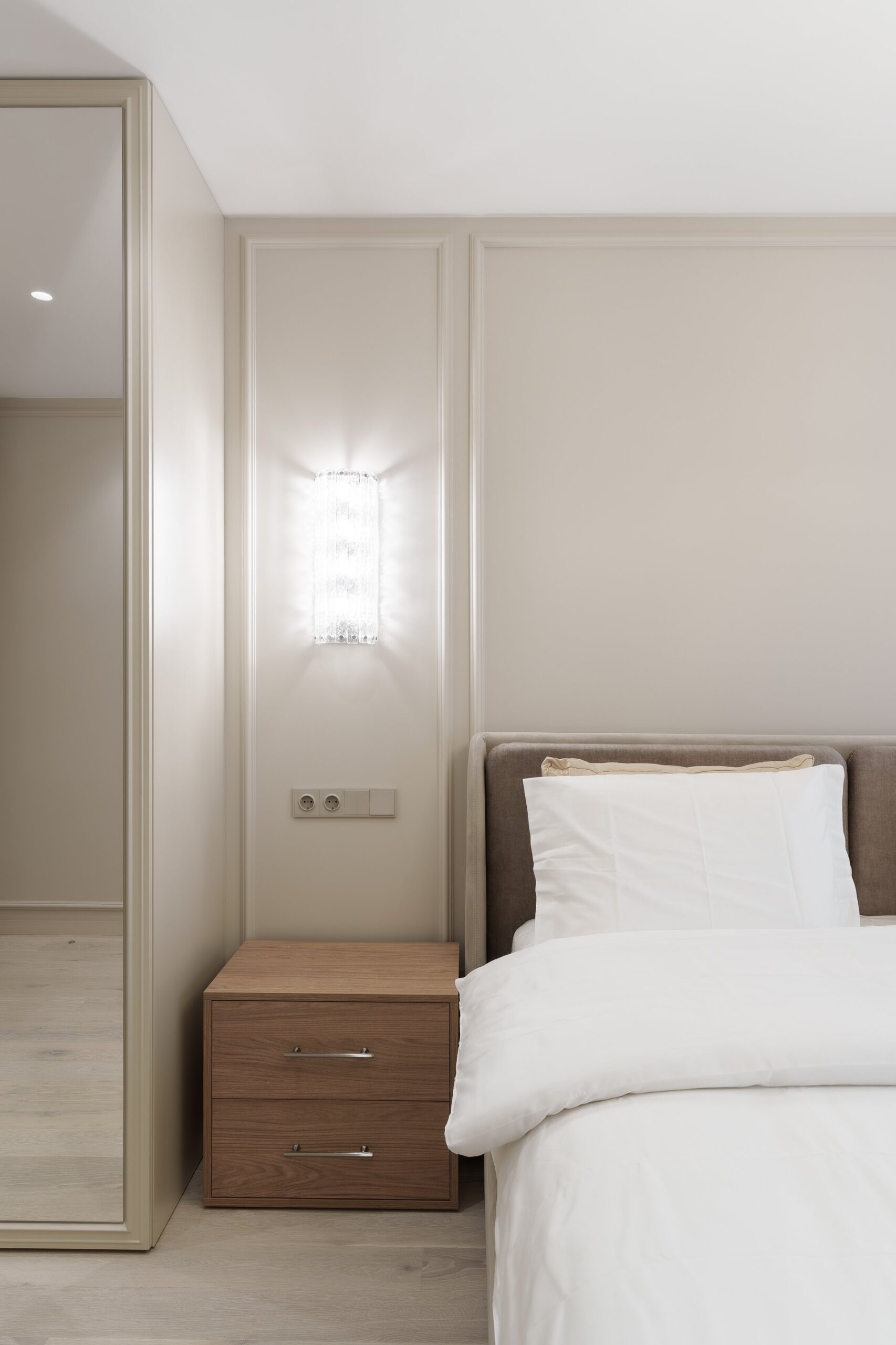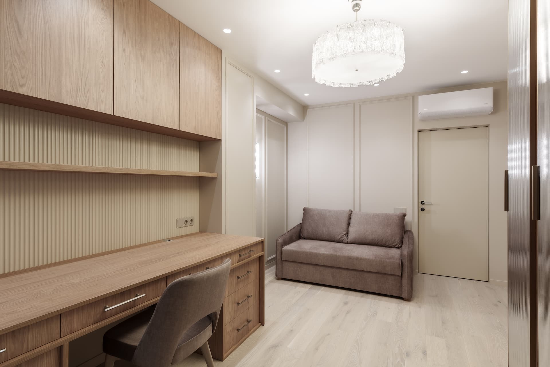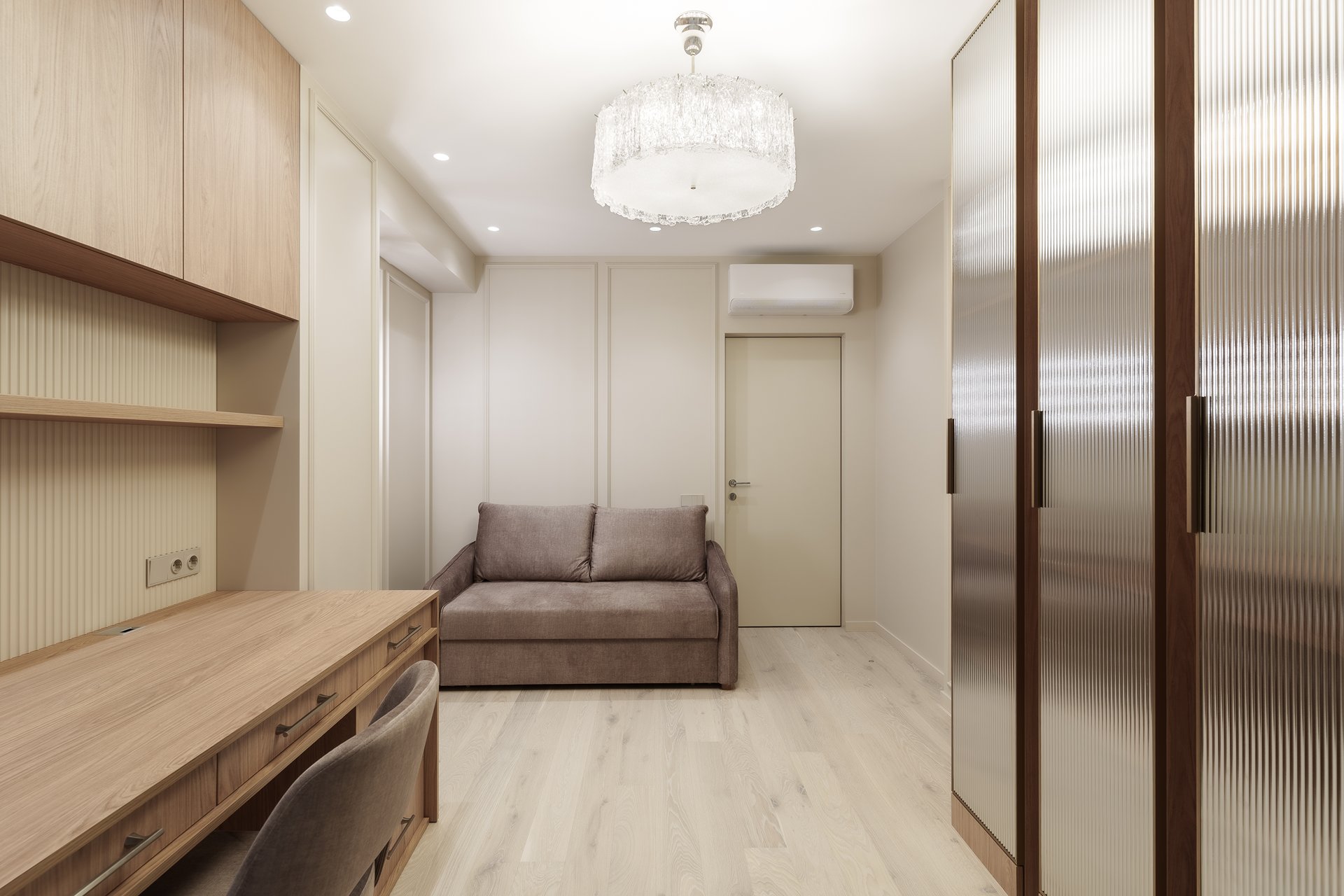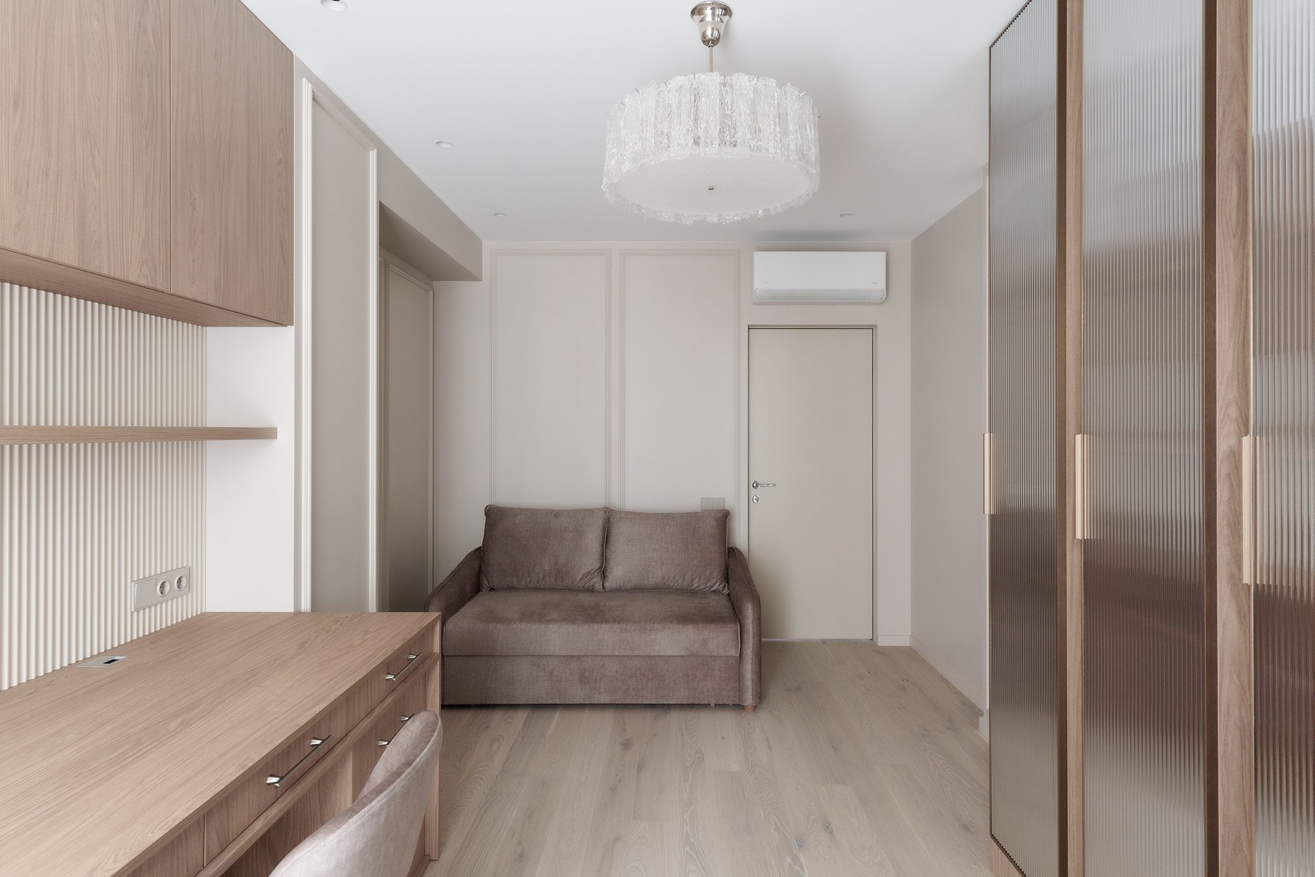 За основу был взят готовый дизайн-проект от студии «Ателит», в котором прослеживалась четкая художественная концепция: лаконичность, спокойствие, натуральные текстуры и продуманная эргономика. Наша задача заключалась в том, чтобы не просто повторить визуализацию, а воплотить её в долговечной, удобной и качественной мебели, которая будет служить годами.