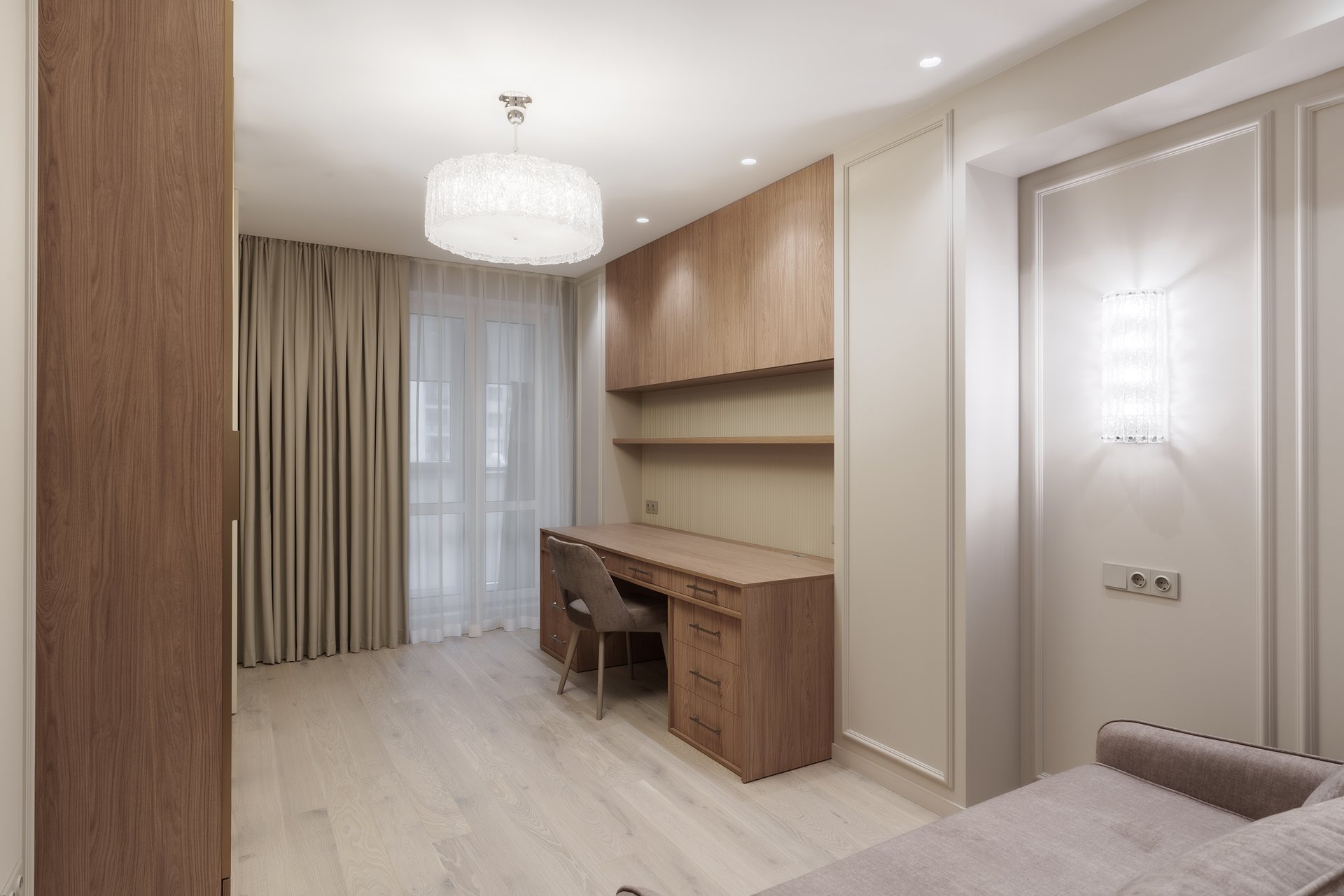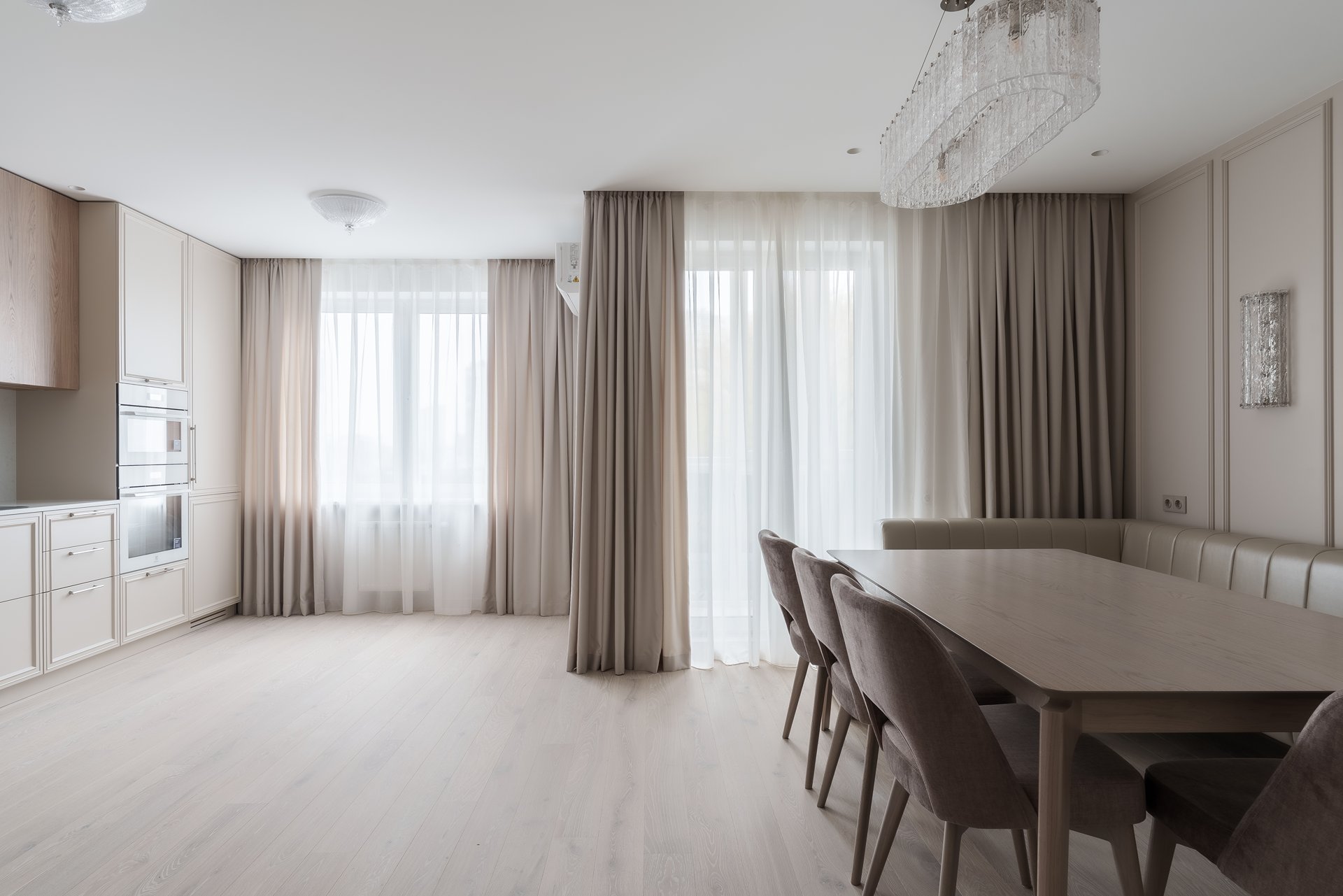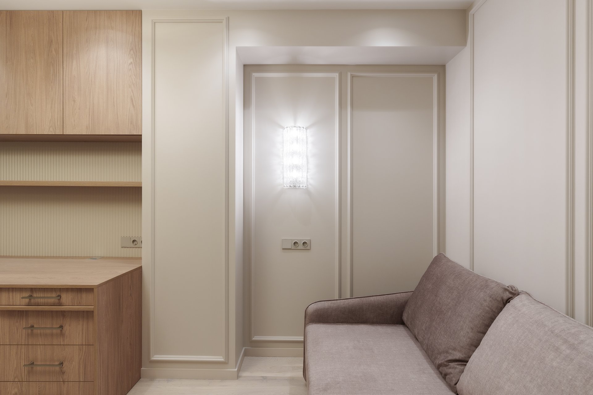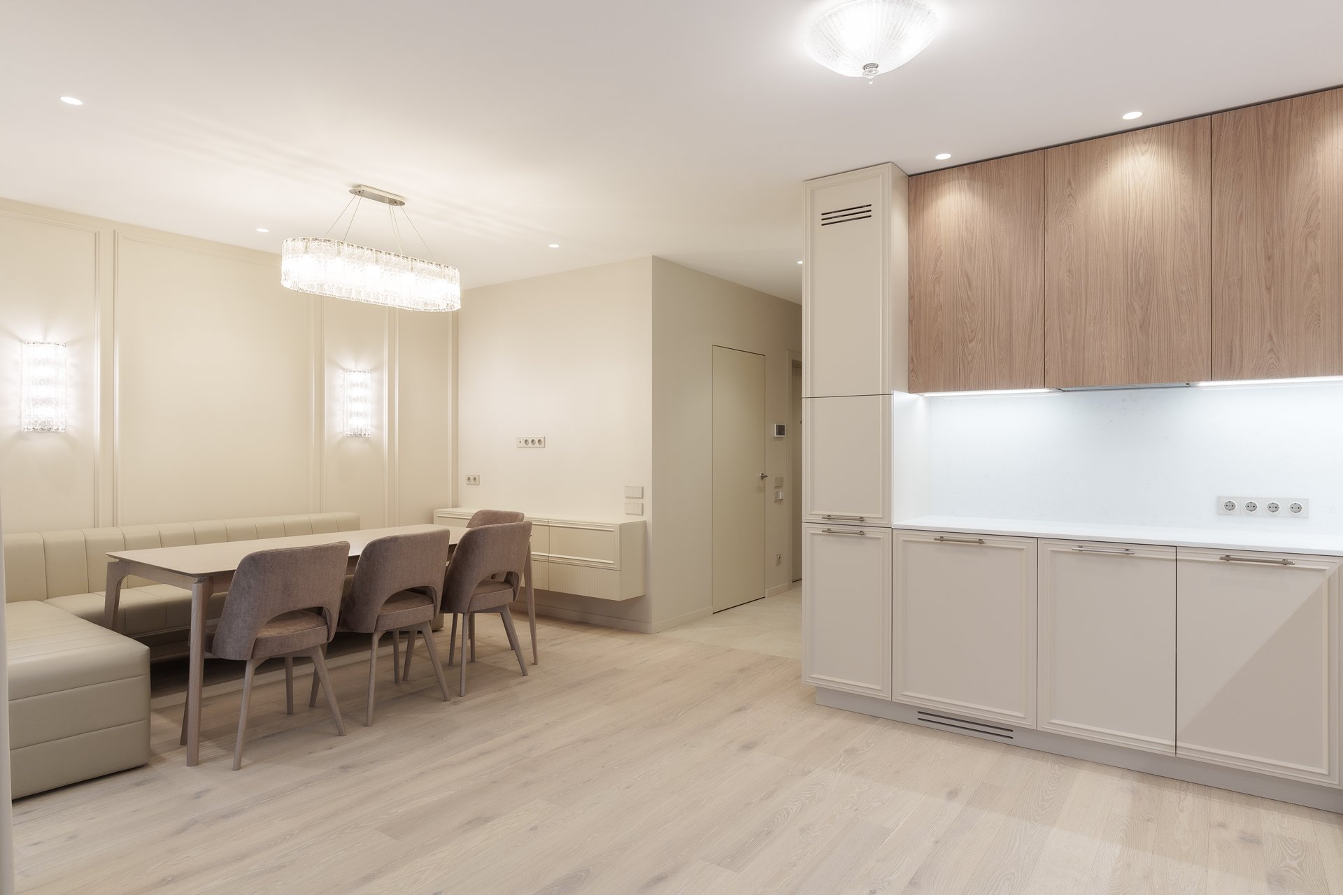 Сегодня квартира полностью готова к эксплуатации: все элементы мебели идеально вписаны в пространство, дверцы плавно закрываются, выдвижные ящики работают бесшумно, а общий ансамбль интерьера дарит ощущение уюта, порядка и гармонии.