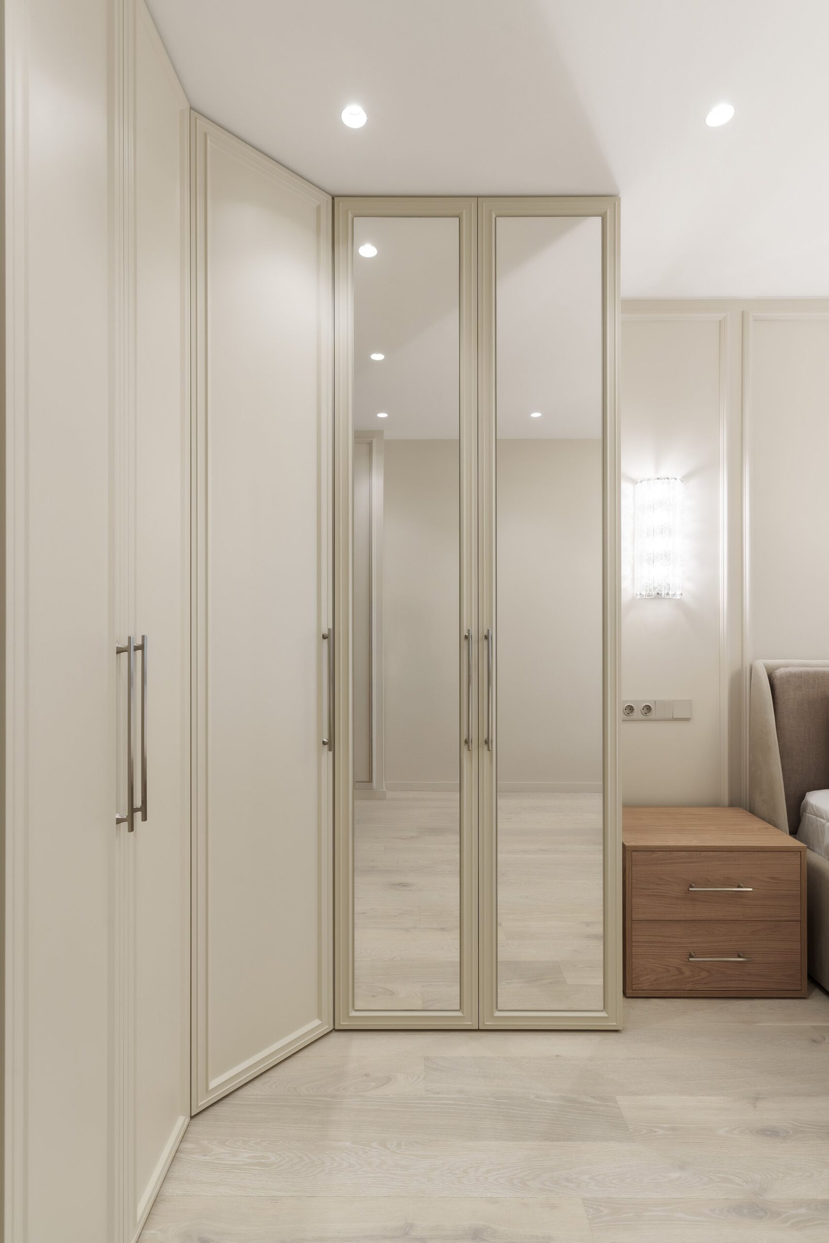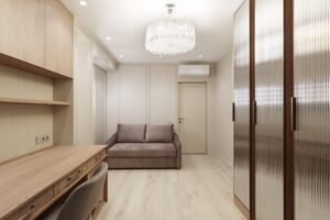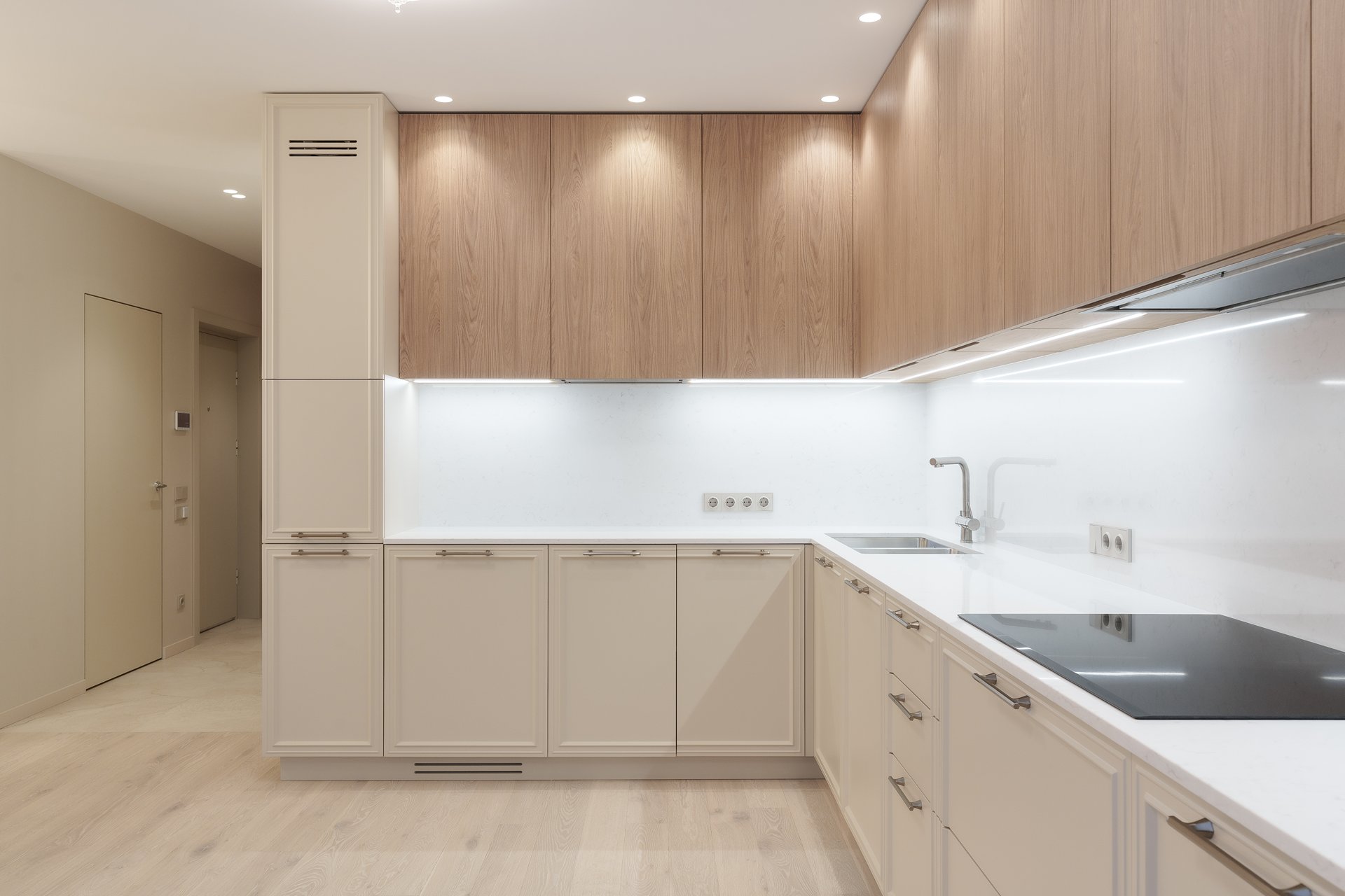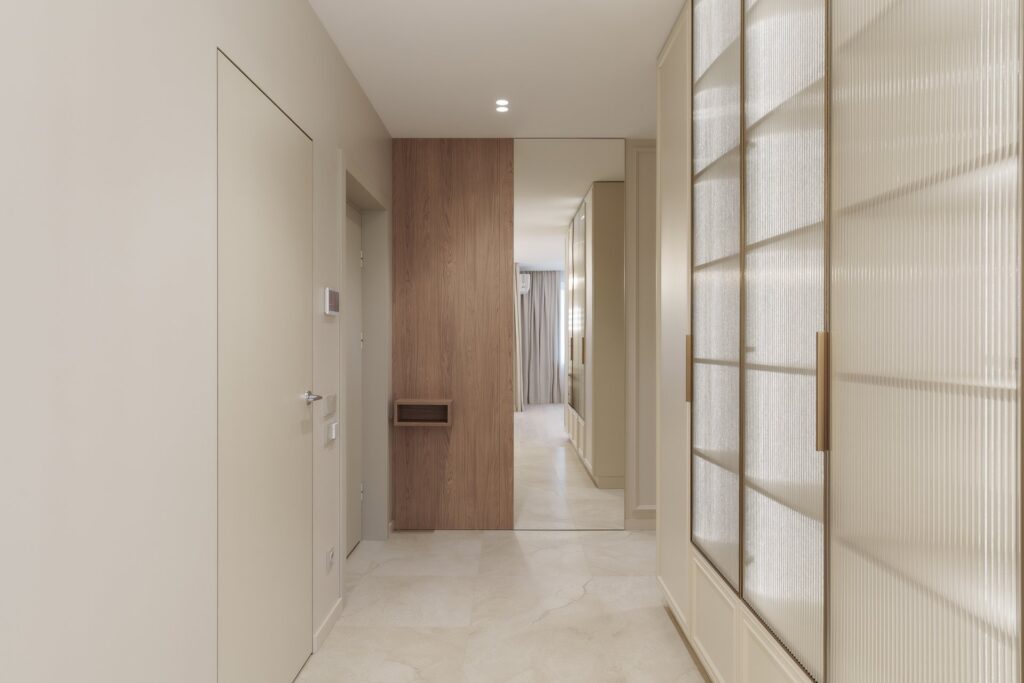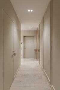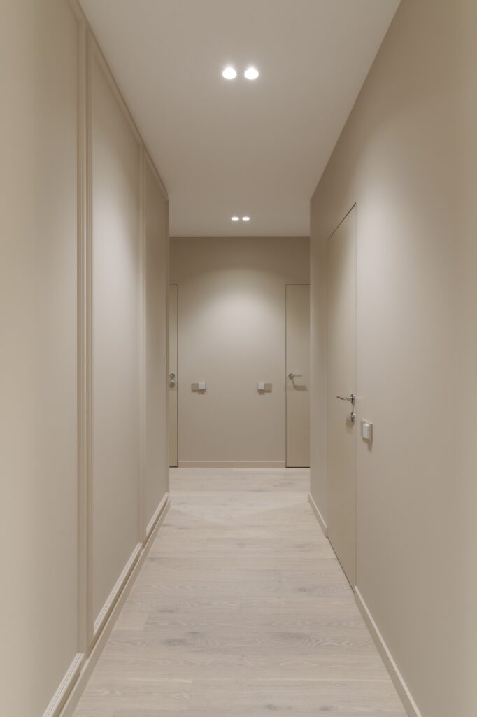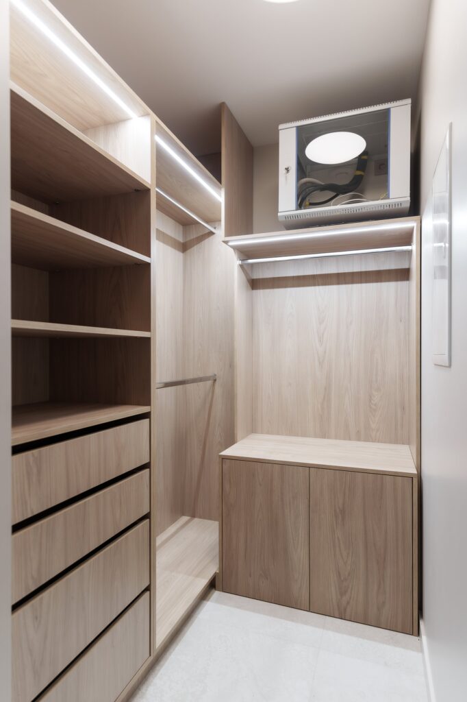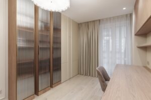 Работа началась с профессиональной замерки квартиры — обязательного этапа для всех проектов мебели под заказ. Далее совместно с заказчиком мы подобрали материалы премиум-класса, надёжную фурнитуру от ведущих европейских производителей (Blum, Hettich) и цветовые решения, идеально сочетающиеся с отделкой интерьера. Особое внимание уделили встроенной мебели в гостиной, спальне и прихожей, а также кухонному гарнитуру, выполненному с учётом всех пожеланий по хранению, доступности и эстетике.