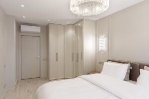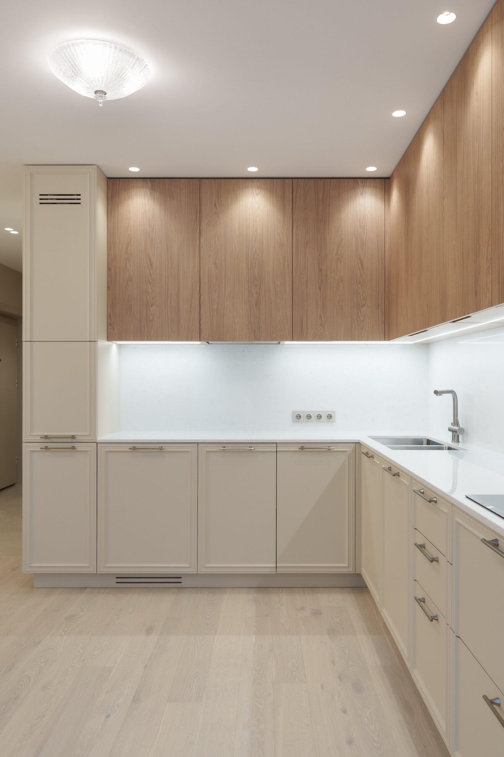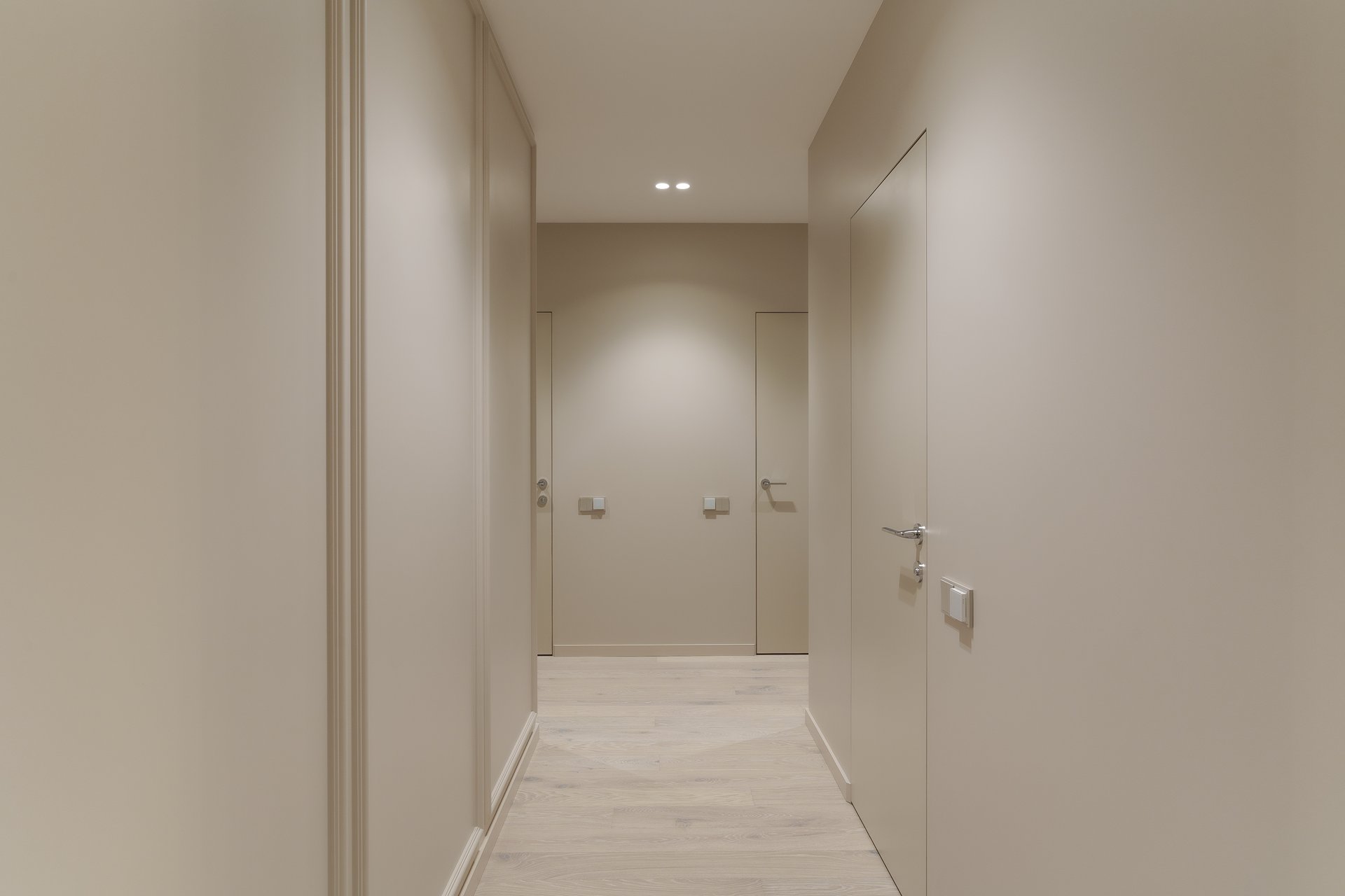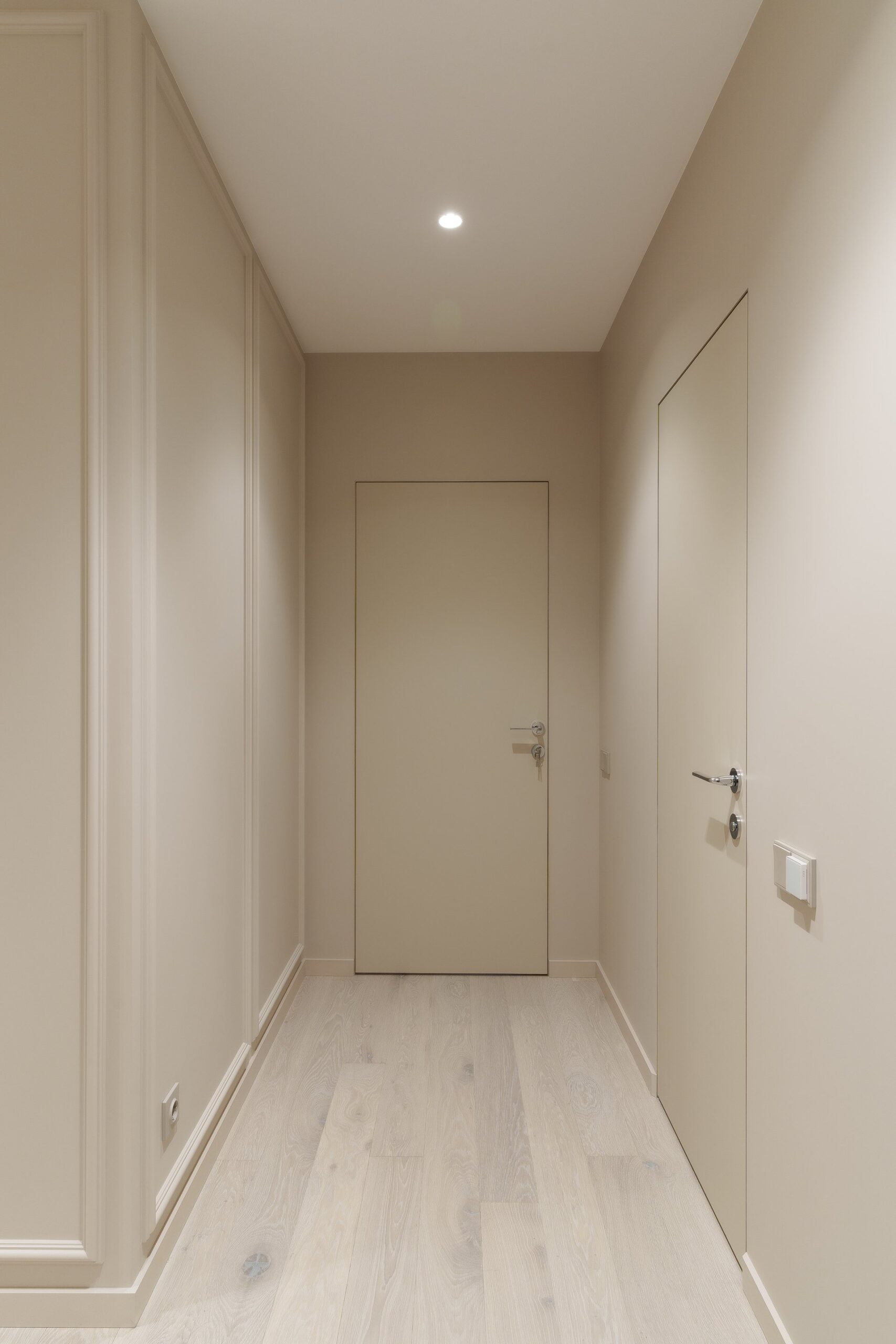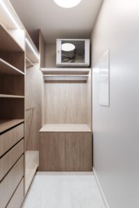 Работа началась с профессиональной замерки квартиры — обязательного этапа для всех проектов мебели под заказ. Далее совместно с заказчиком мы подобрали материалы премиум-класса, надёжную фурнитуру от ведущих европейских производителей (Blum, Hettich) и цветовые решения, идеально сочетающиеся с отделкой интерьера. Особое внимание уделили встроенной мебели в гостиной, спальне и прихожей, а также кухонному гарнитуру, выполненному с учётом всех пожеланий по хранению, доступности и эстетике.