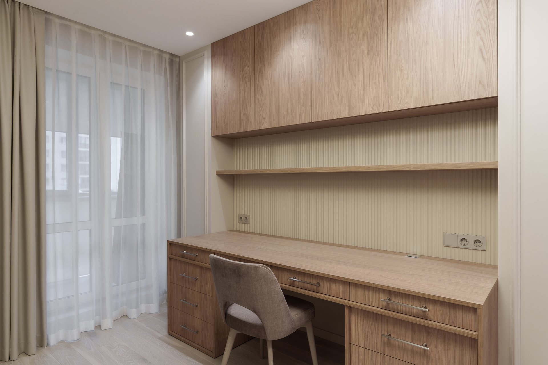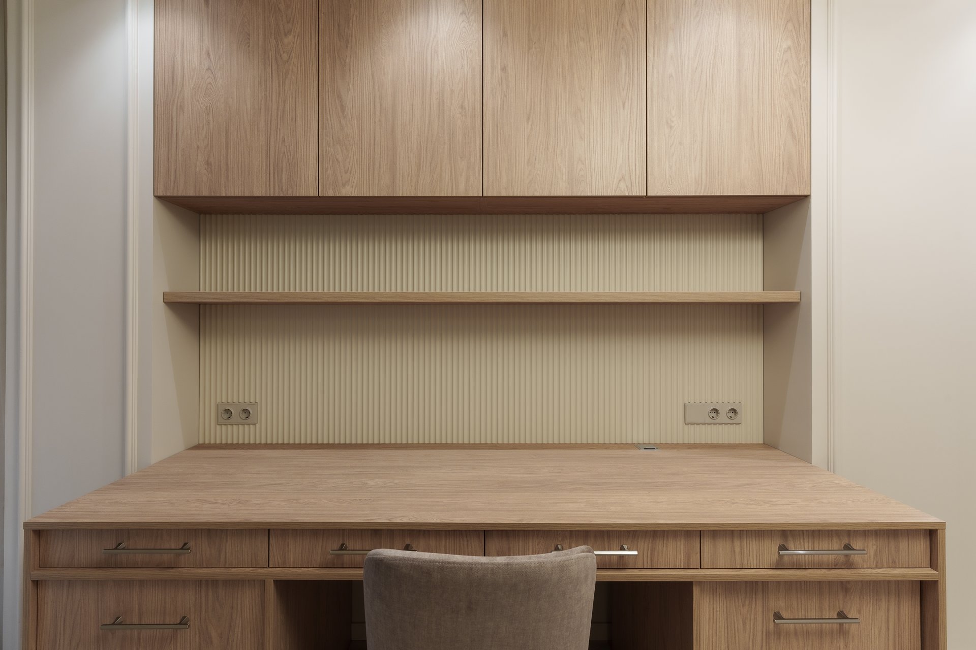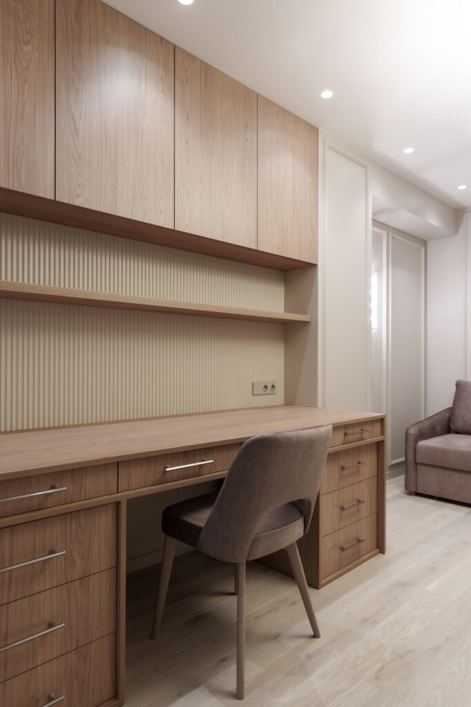 Этот проект стал ярким примером того, как профессиональный подход к изготовлению мебели на заказ, точное следование дизайн-концепции и внимание к деталям создают по-настоящему уютное и функциональное пространство.