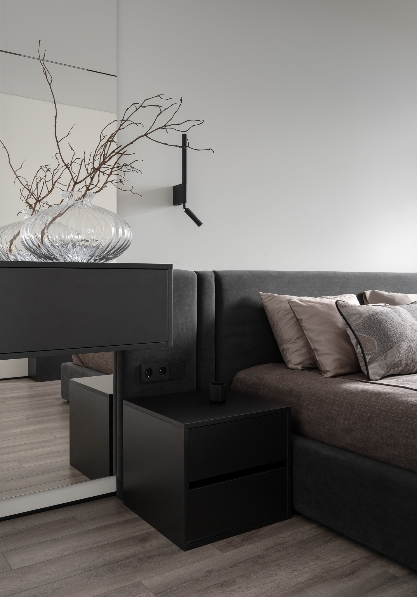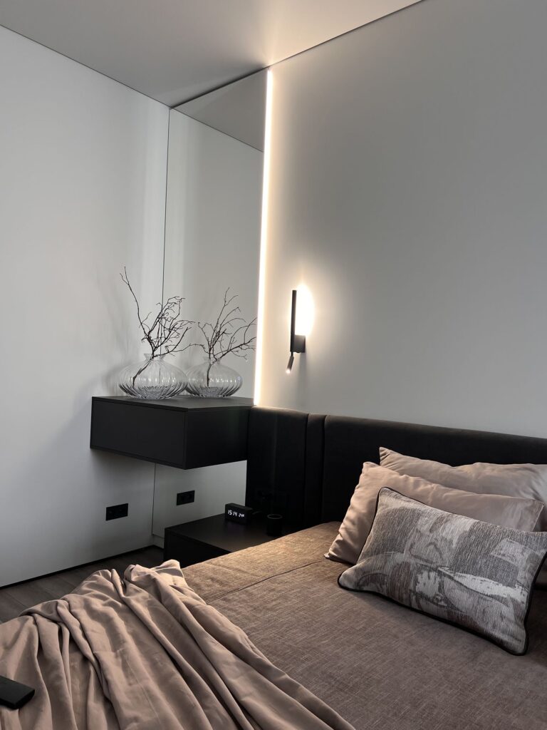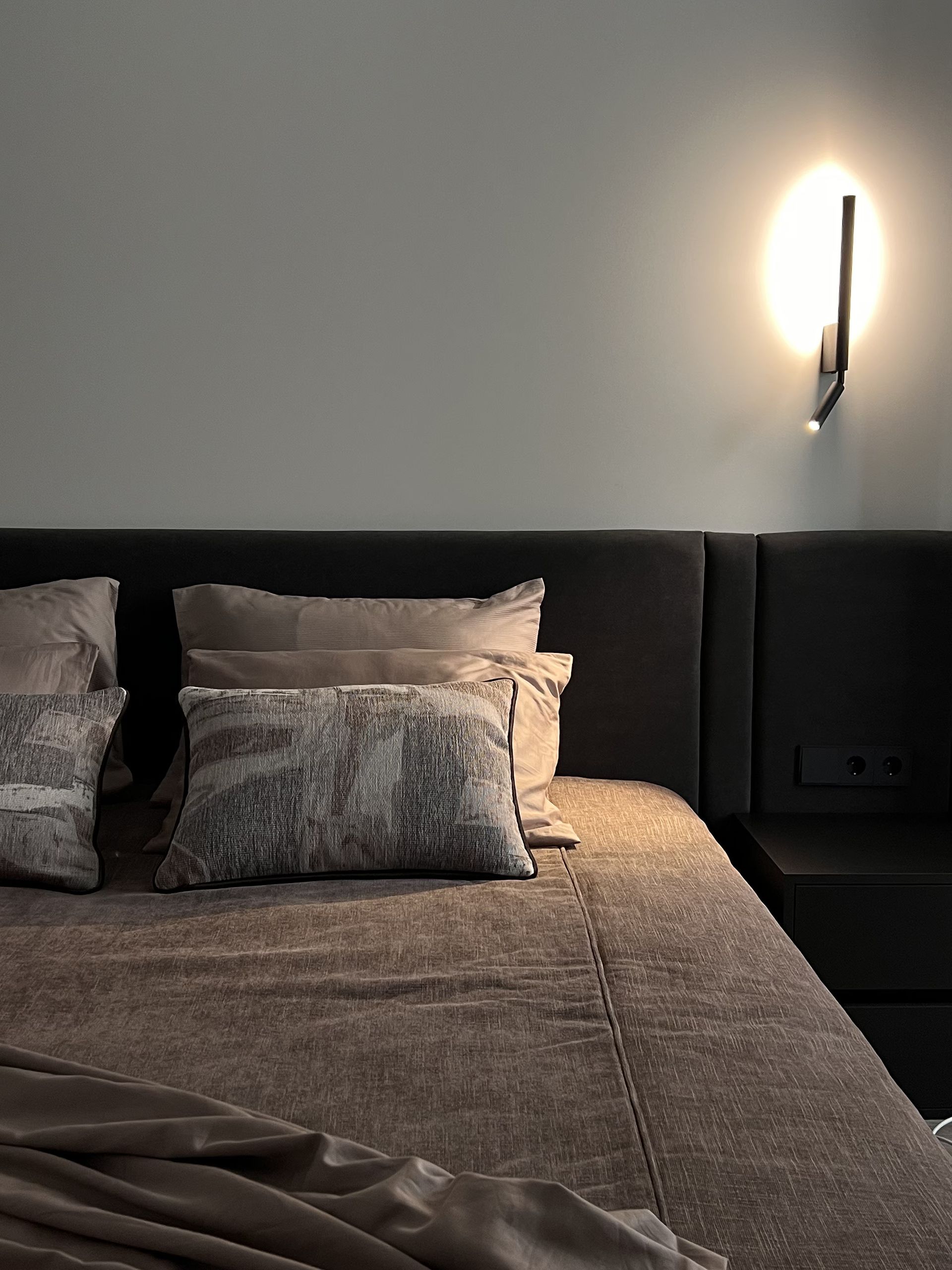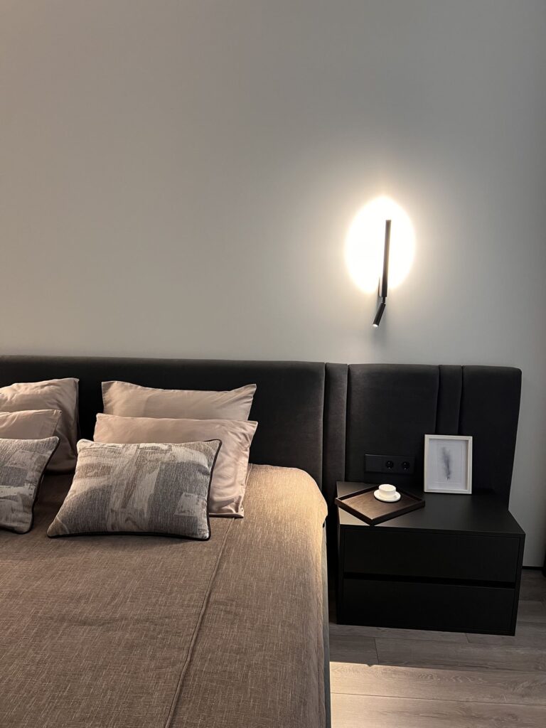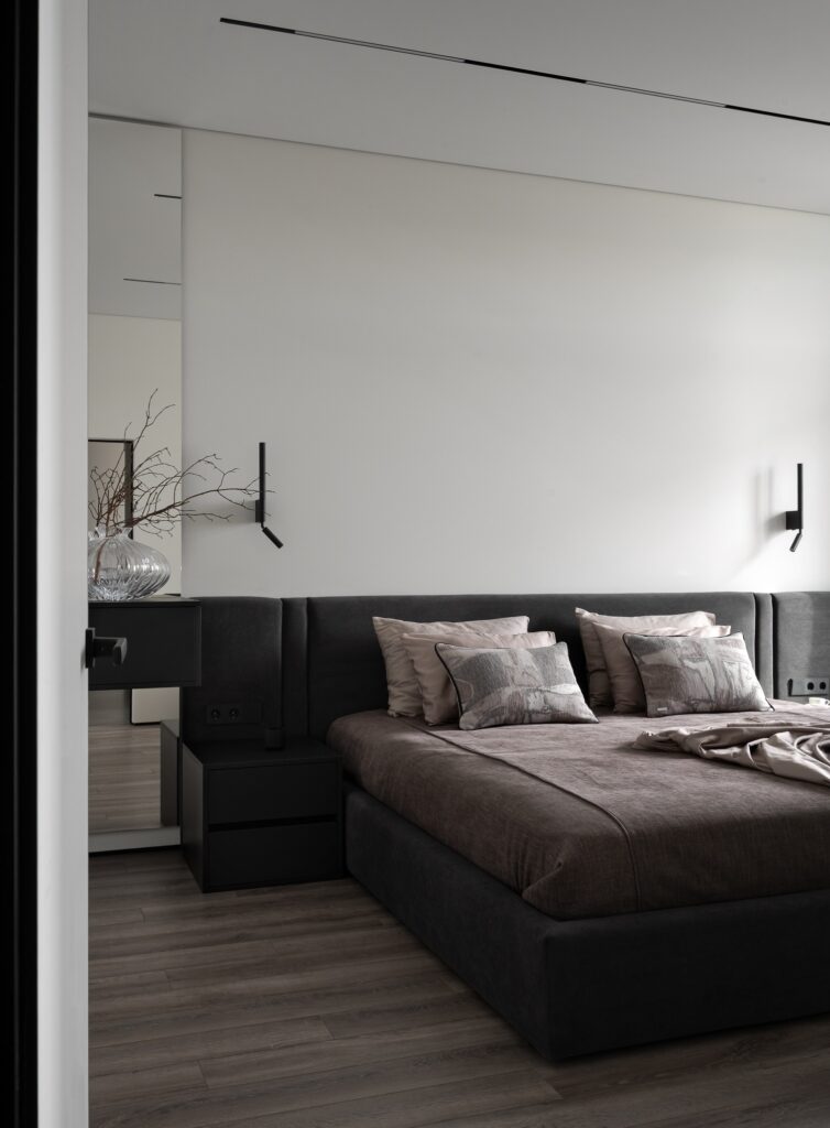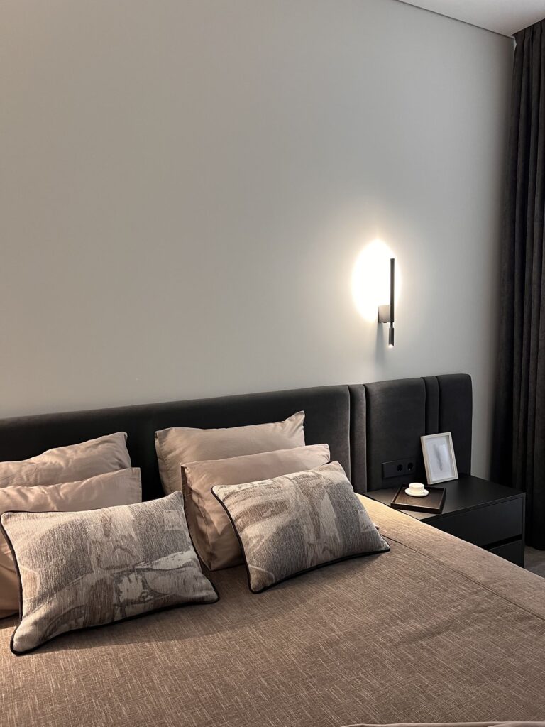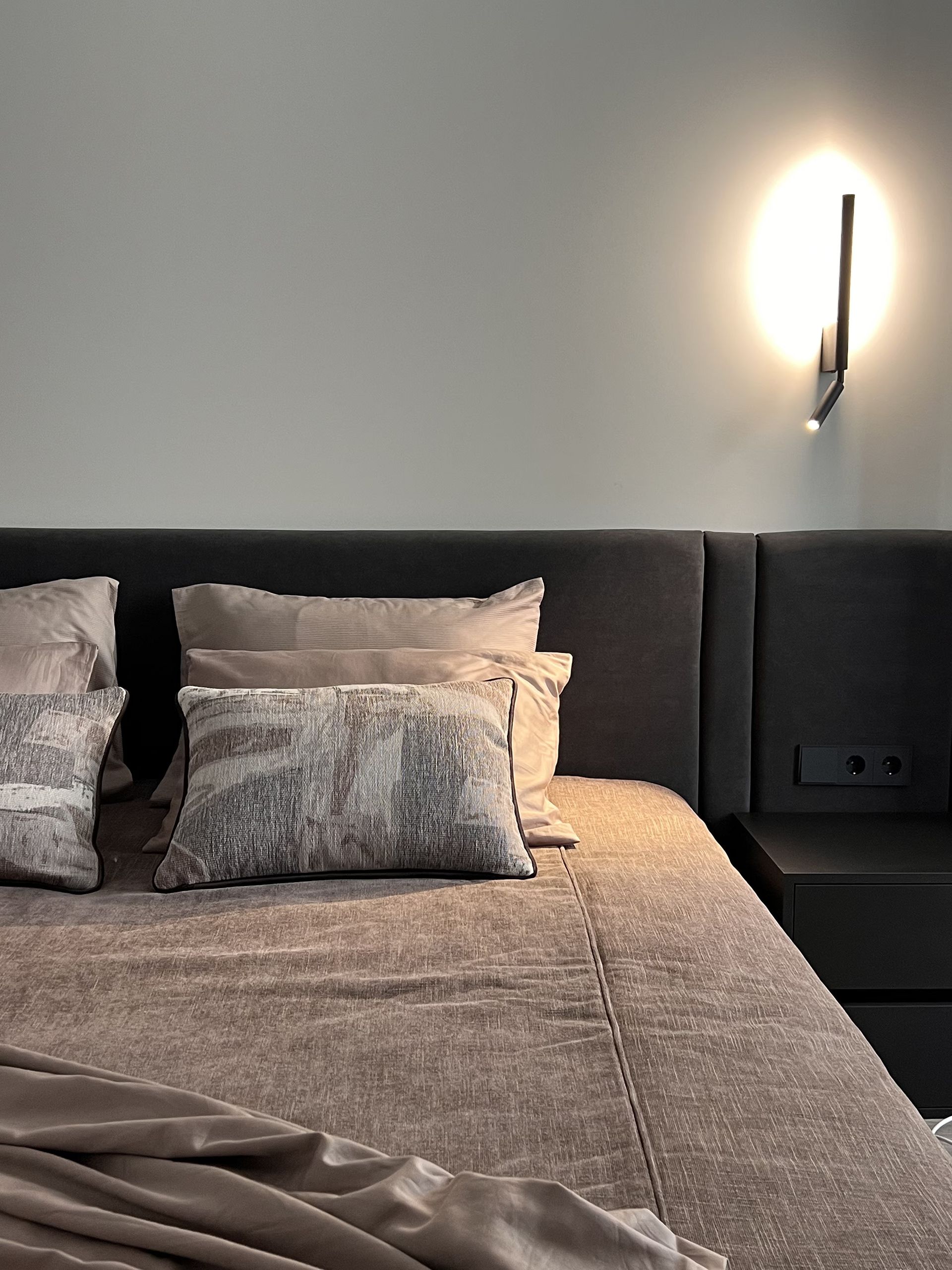 От контрольного замера до финальной сборки прошло около 3 месяцев. В результате получился интерьер в стиле «тихой роскоши»: глубокие тёмные акценты, мягкие текстуры, натуральное дерево, лаконичные формы и продуманное освещение. Здесь нет лишнего декора — каждая деталь работает на ощущение уюта, спокойствия и визуальной целостности.