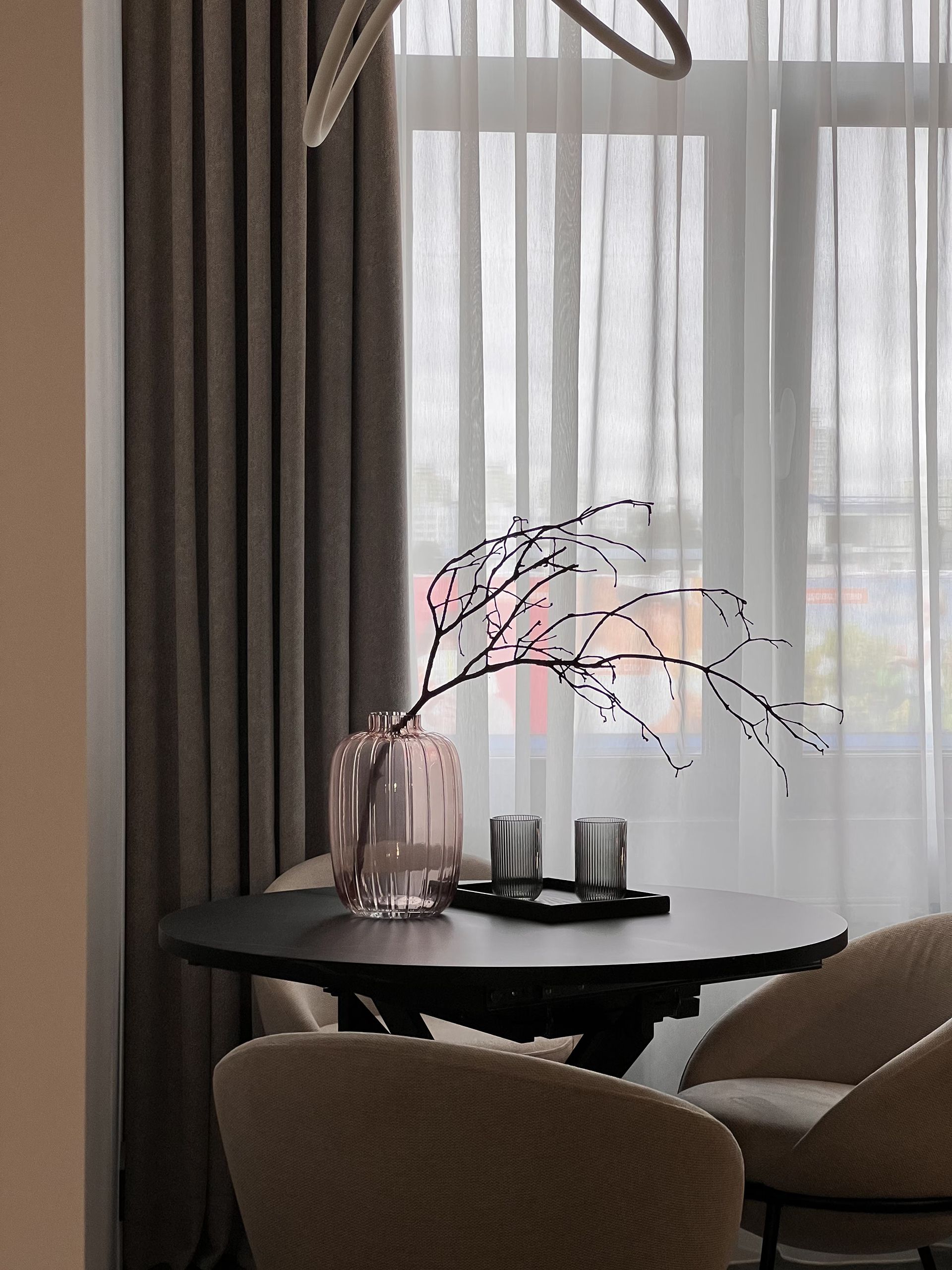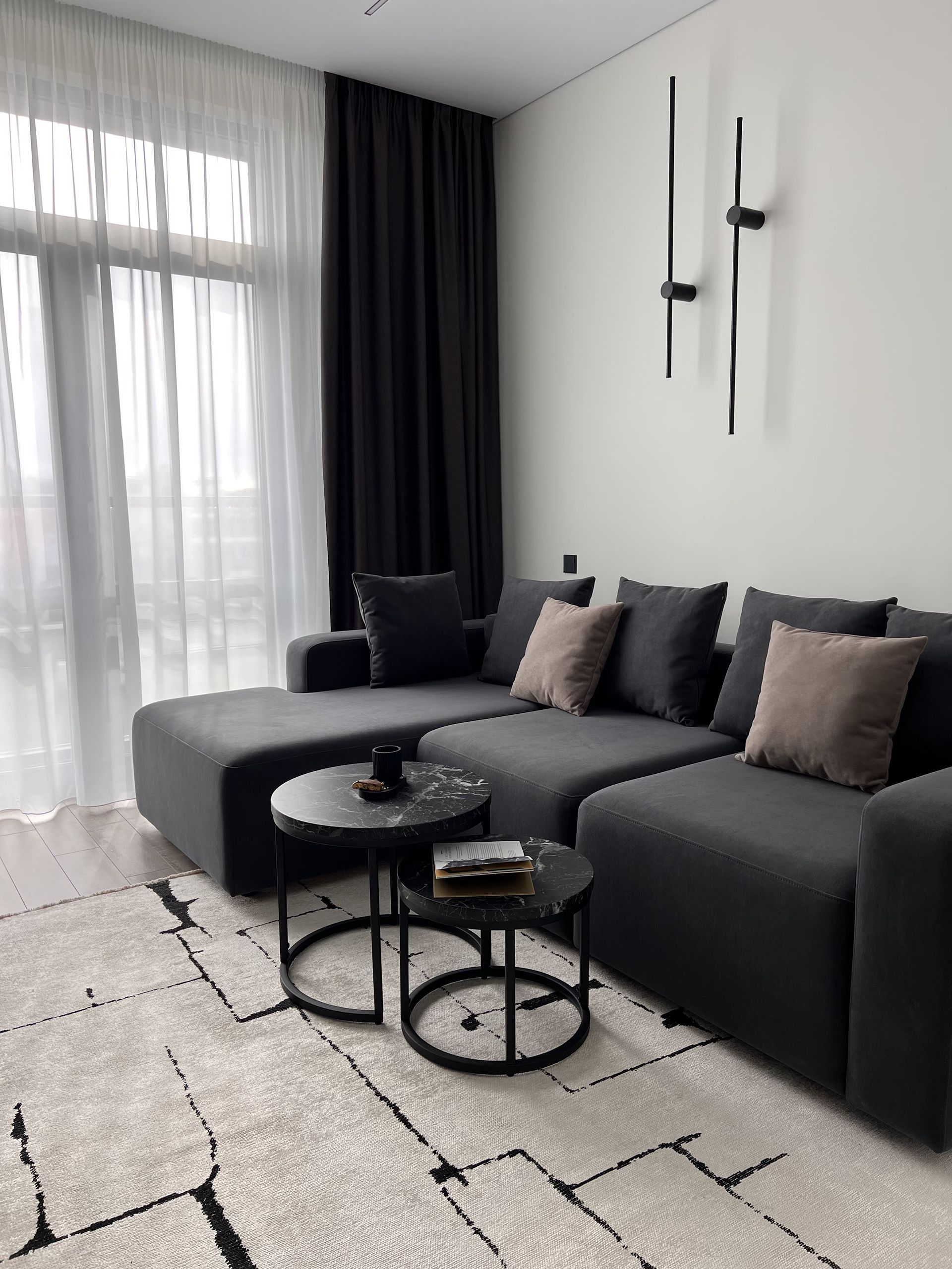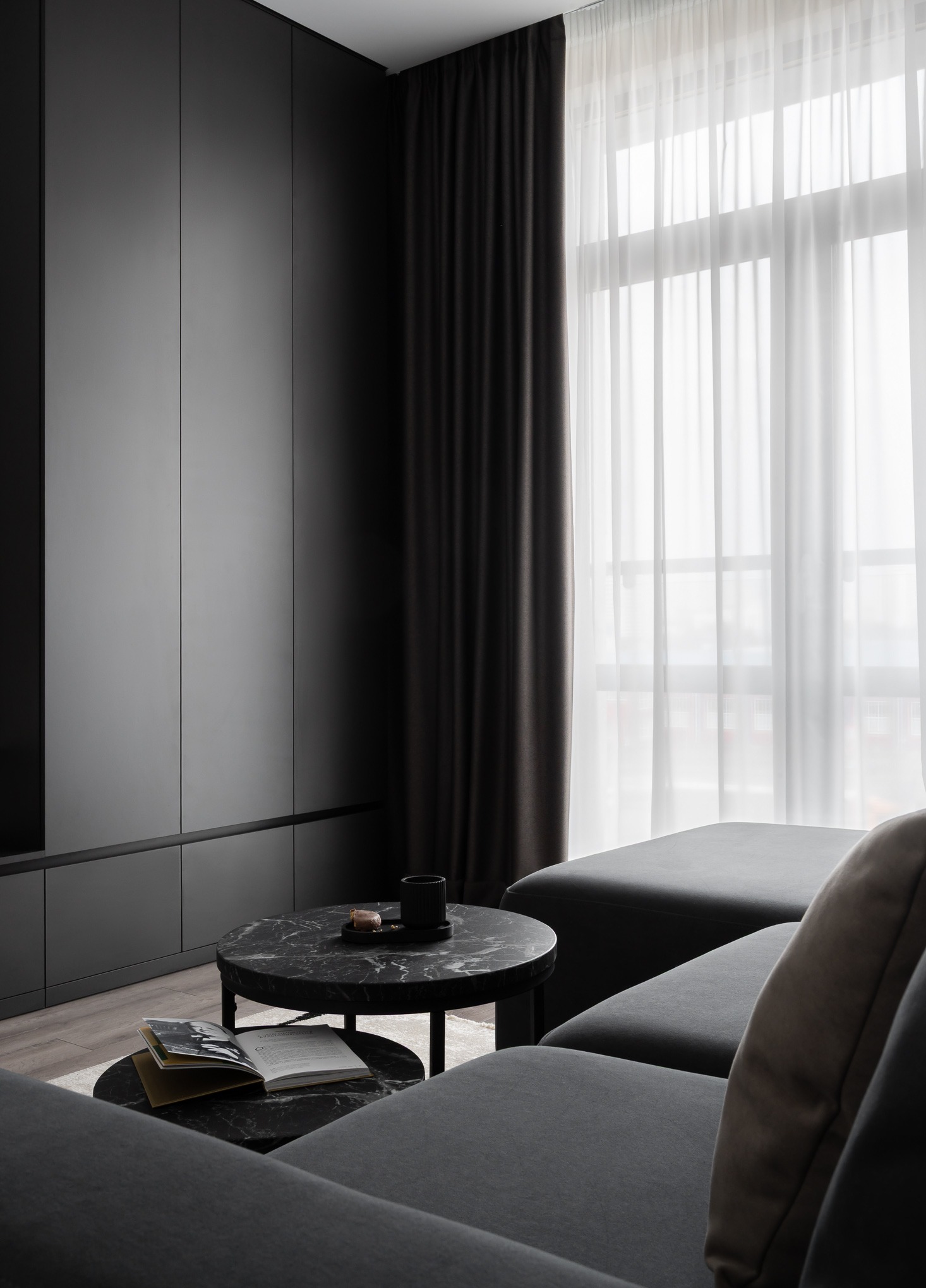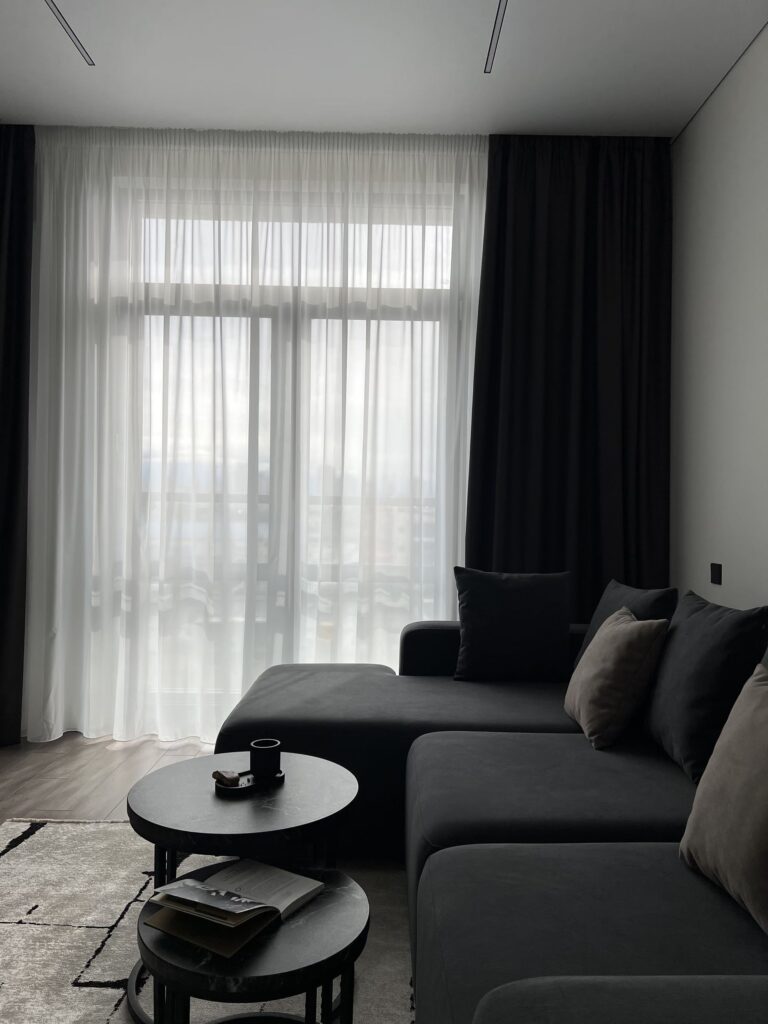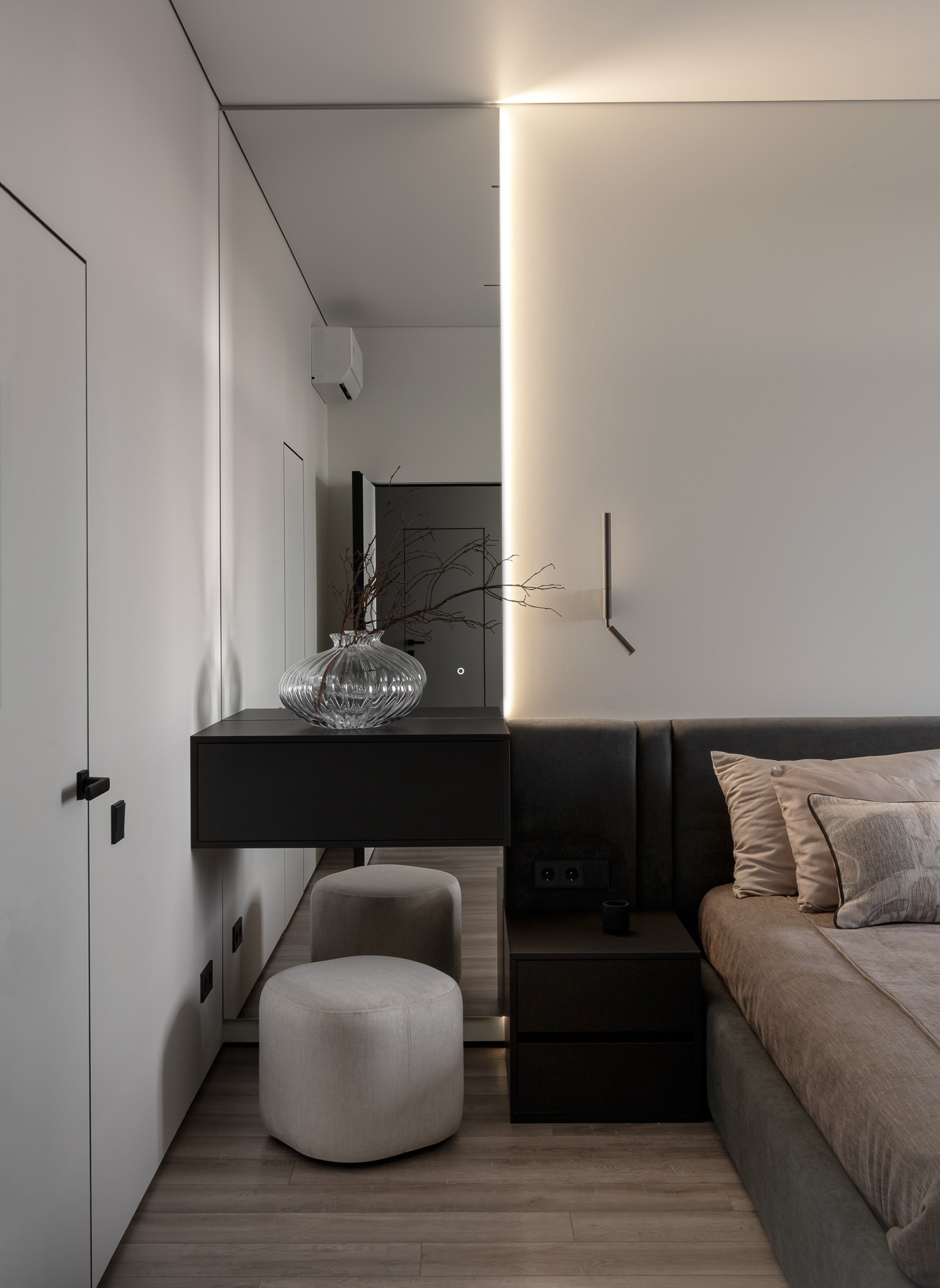 От контрольного замера до финальной сборки прошло около 3 месяцев. В результате получился интерьер в стиле «тихой роскоши»: глубокие тёмные акценты, мягкие текстуры, натуральное дерево, лаконичные формы и продуманное освещение. Здесь нет лишнего декора — каждая деталь работает на ощущение уюта, спокойствия и визуальной целостности.