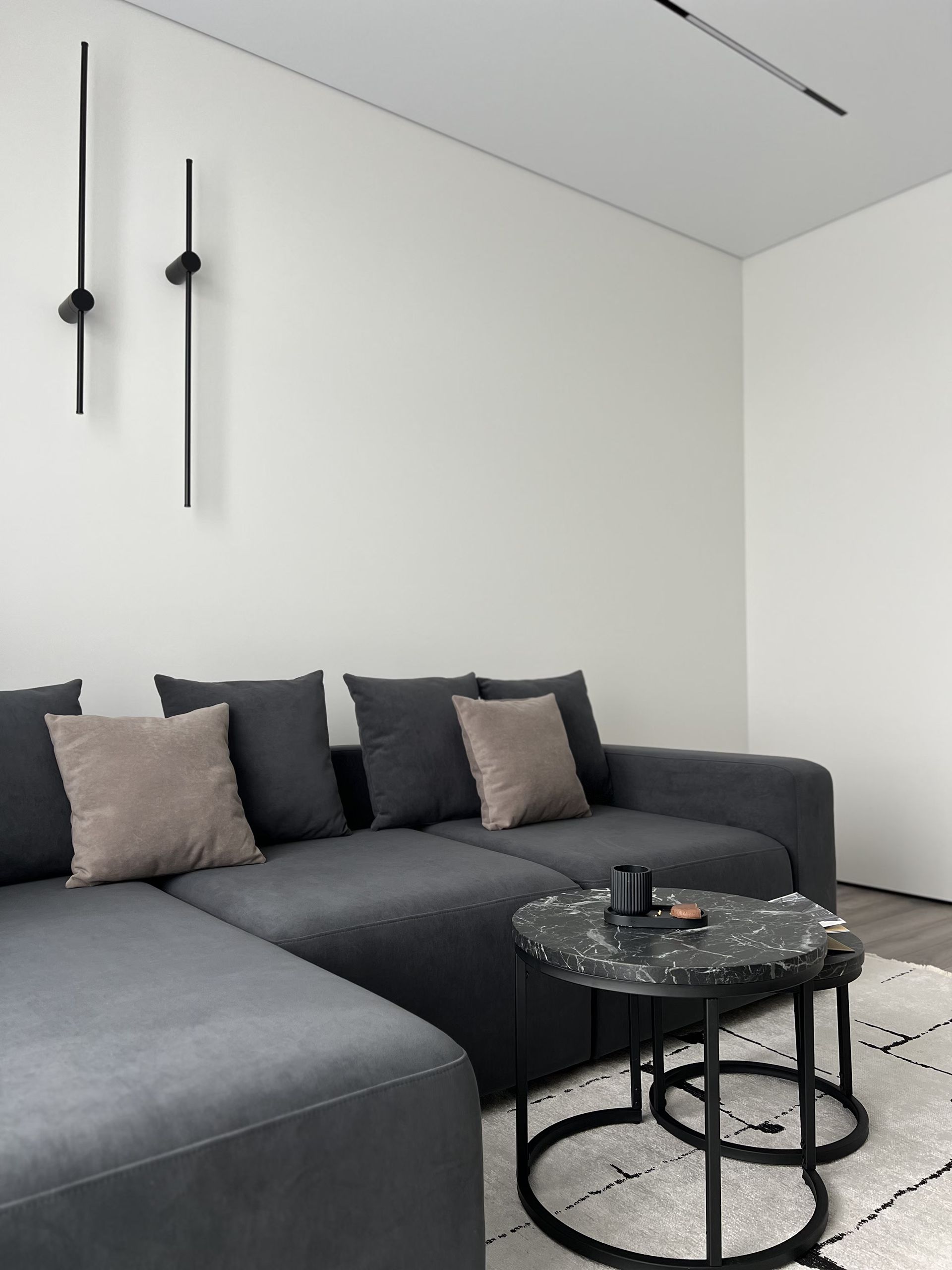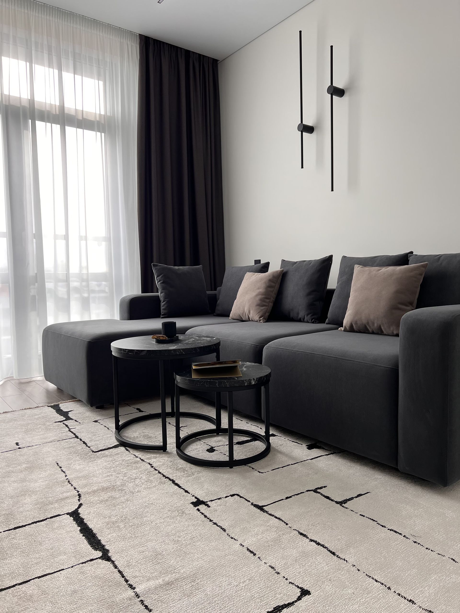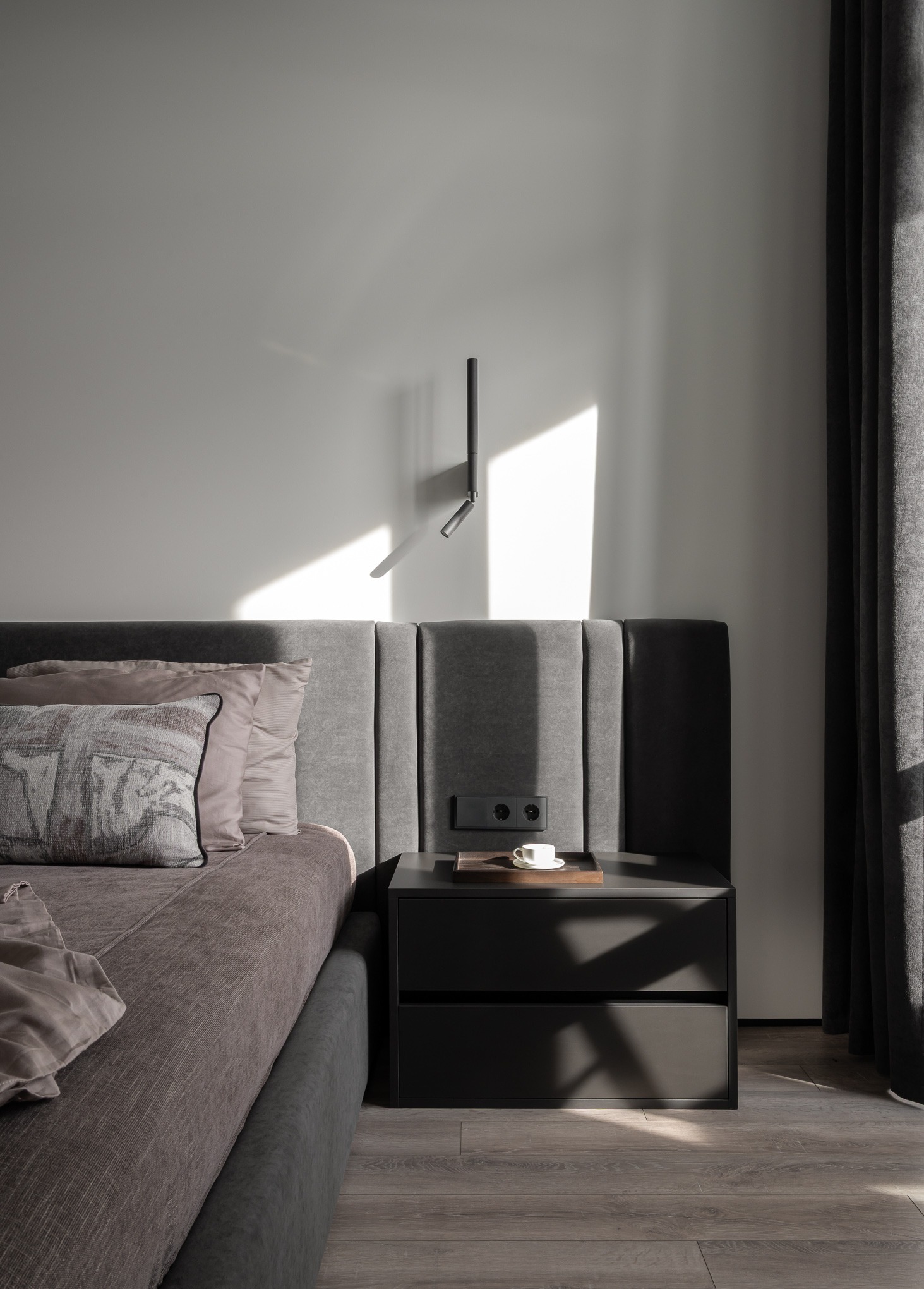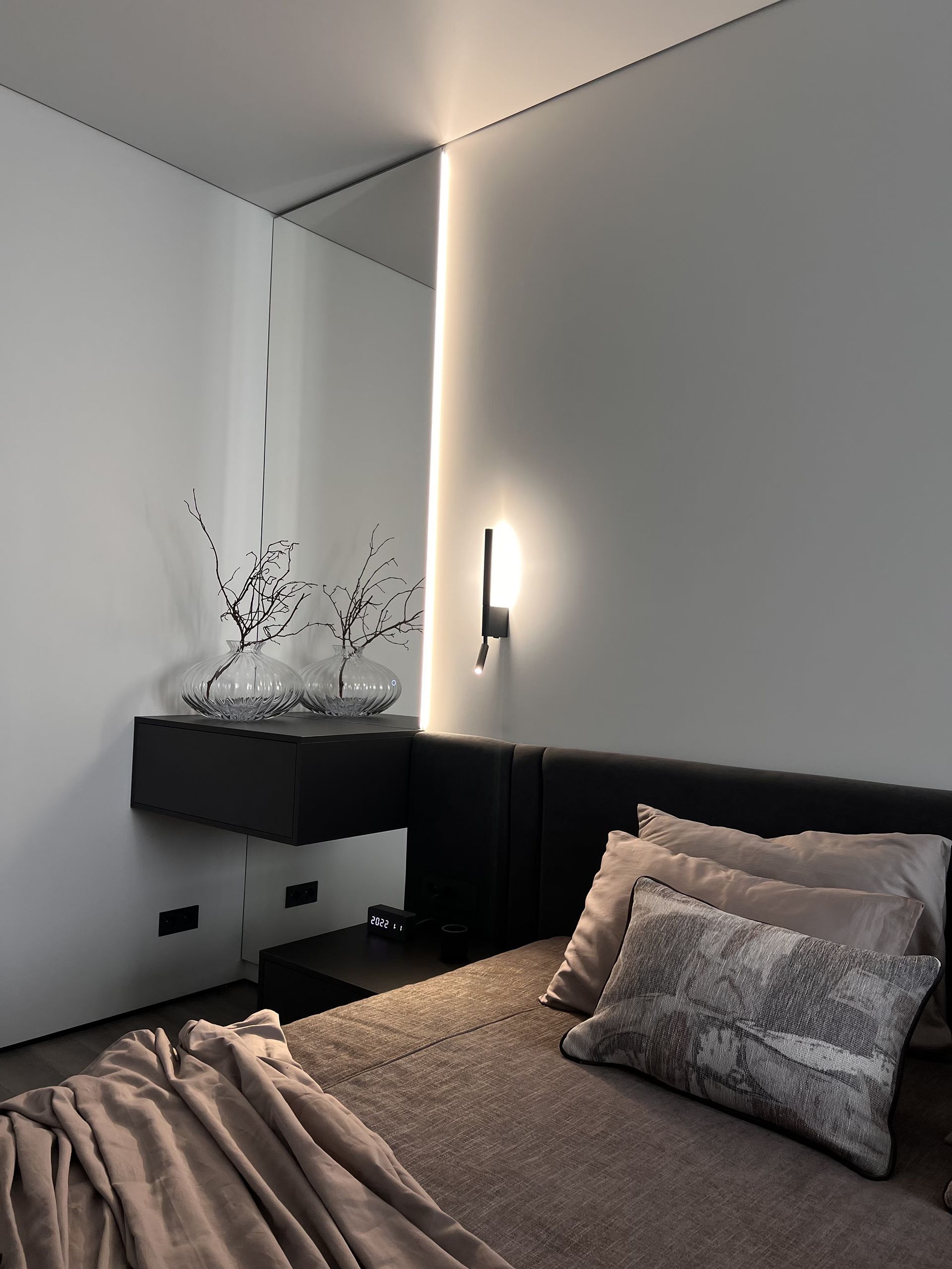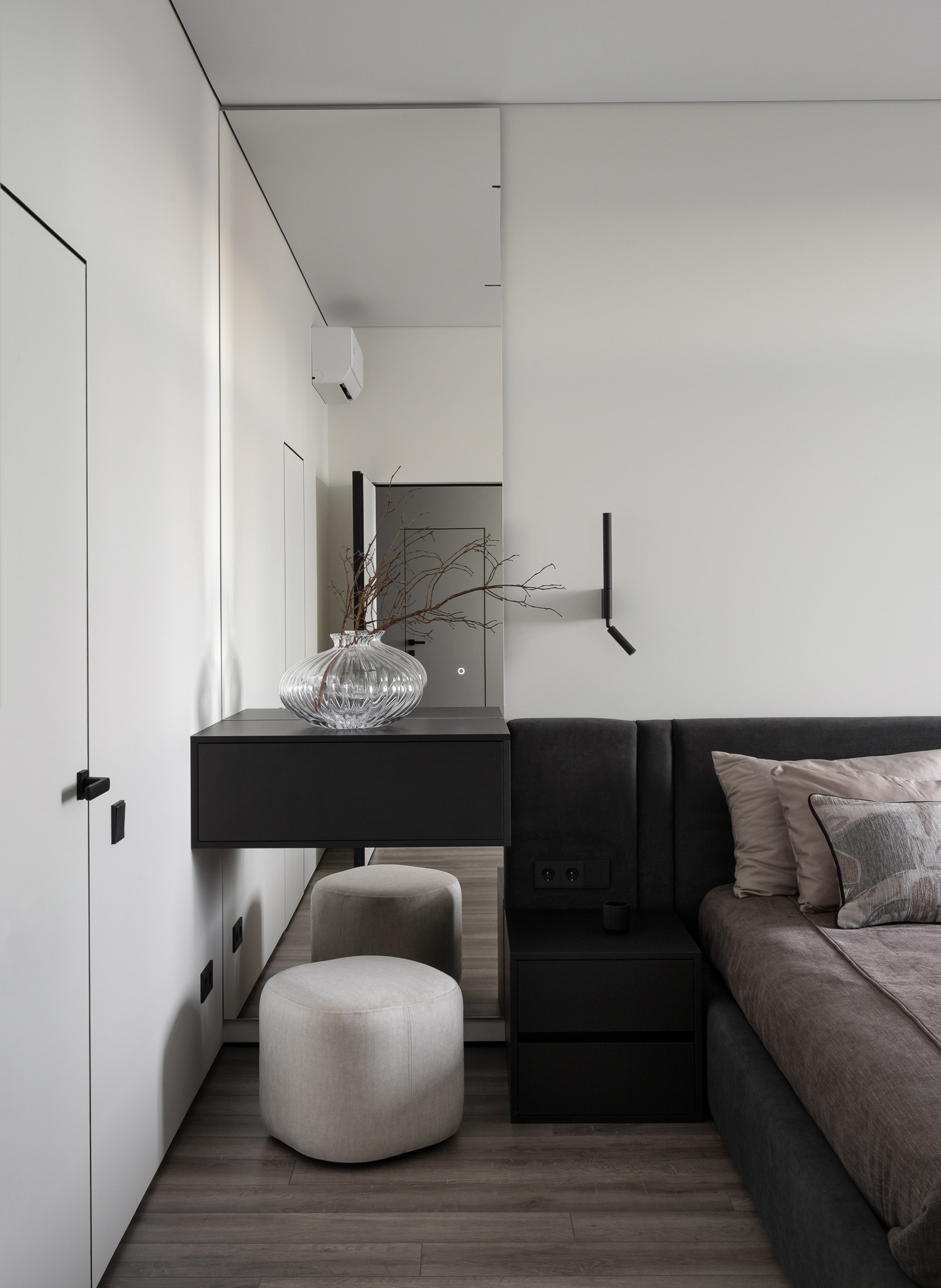 От контрольного замера до финальной сборки прошло около 3 месяцев. В результате получился интерьер в стиле «тихой роскоши»: глубокие тёмные акценты, мягкие текстуры, натуральное дерево, лаконичные формы и продуманное освещение. Здесь нет лишнего декора — каждая деталь работает на ощущение уюта, спокойствия и визуальной целостности.