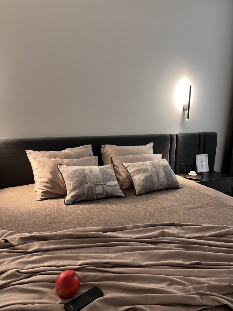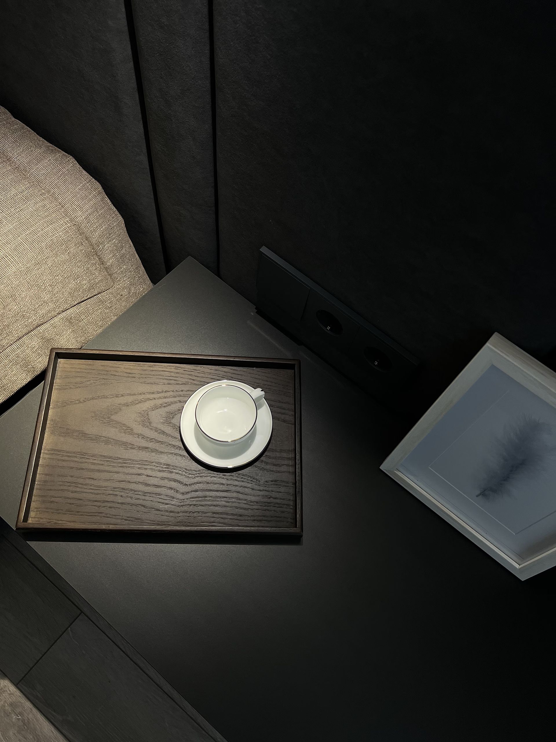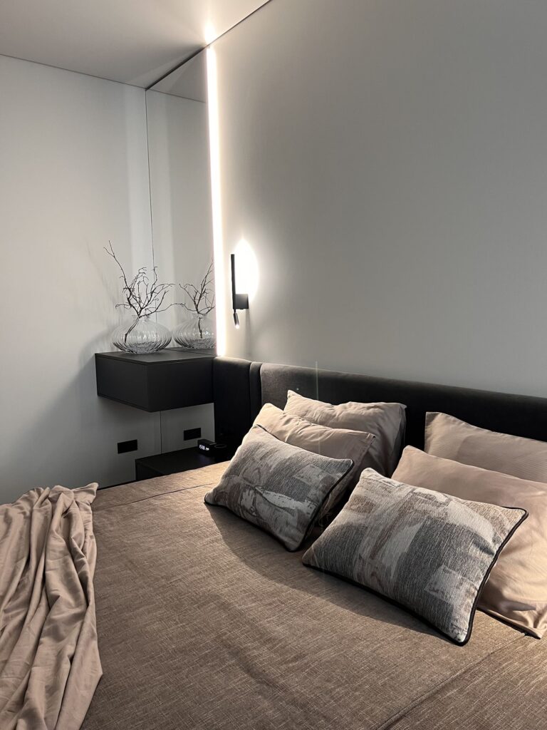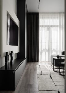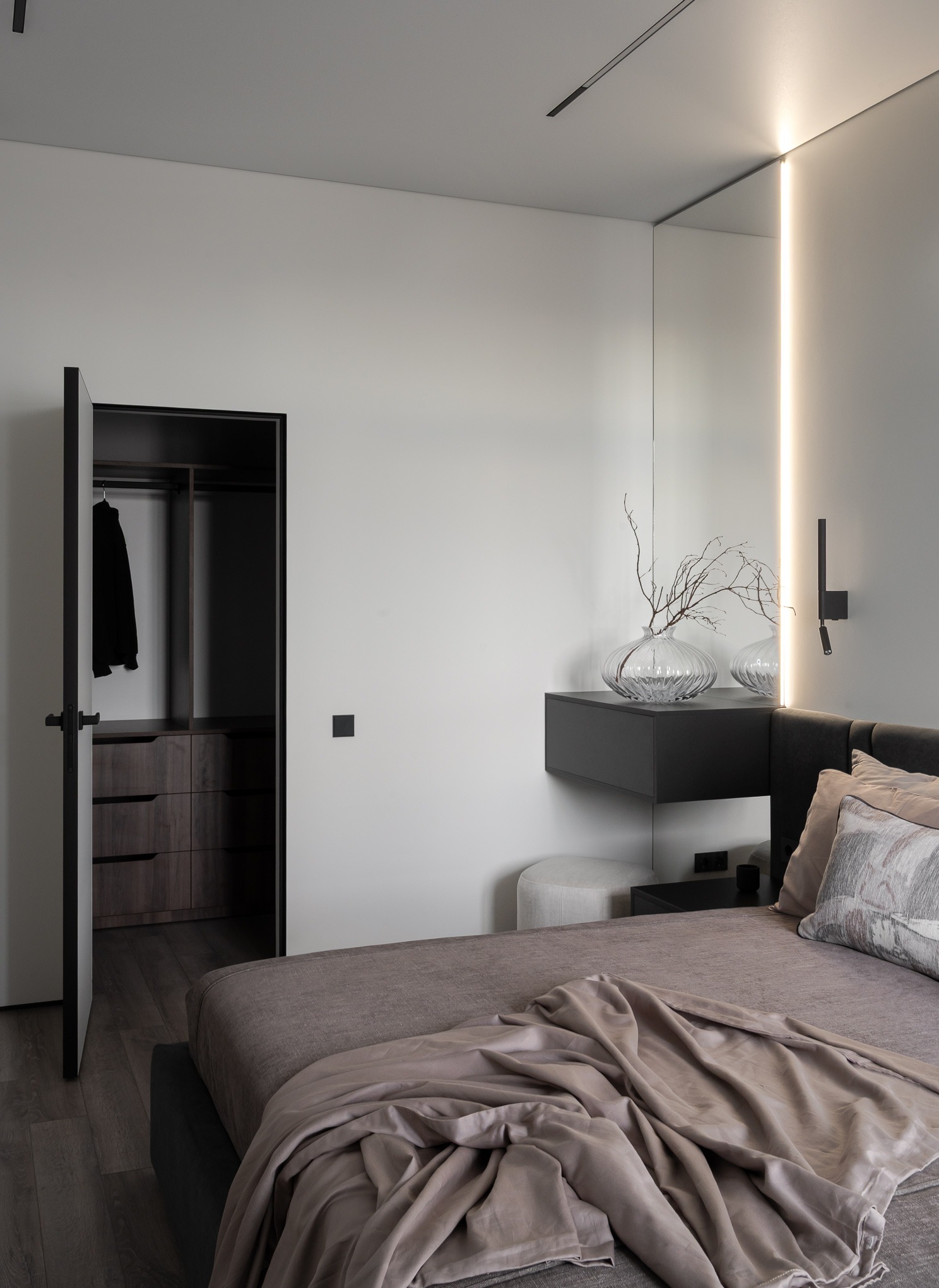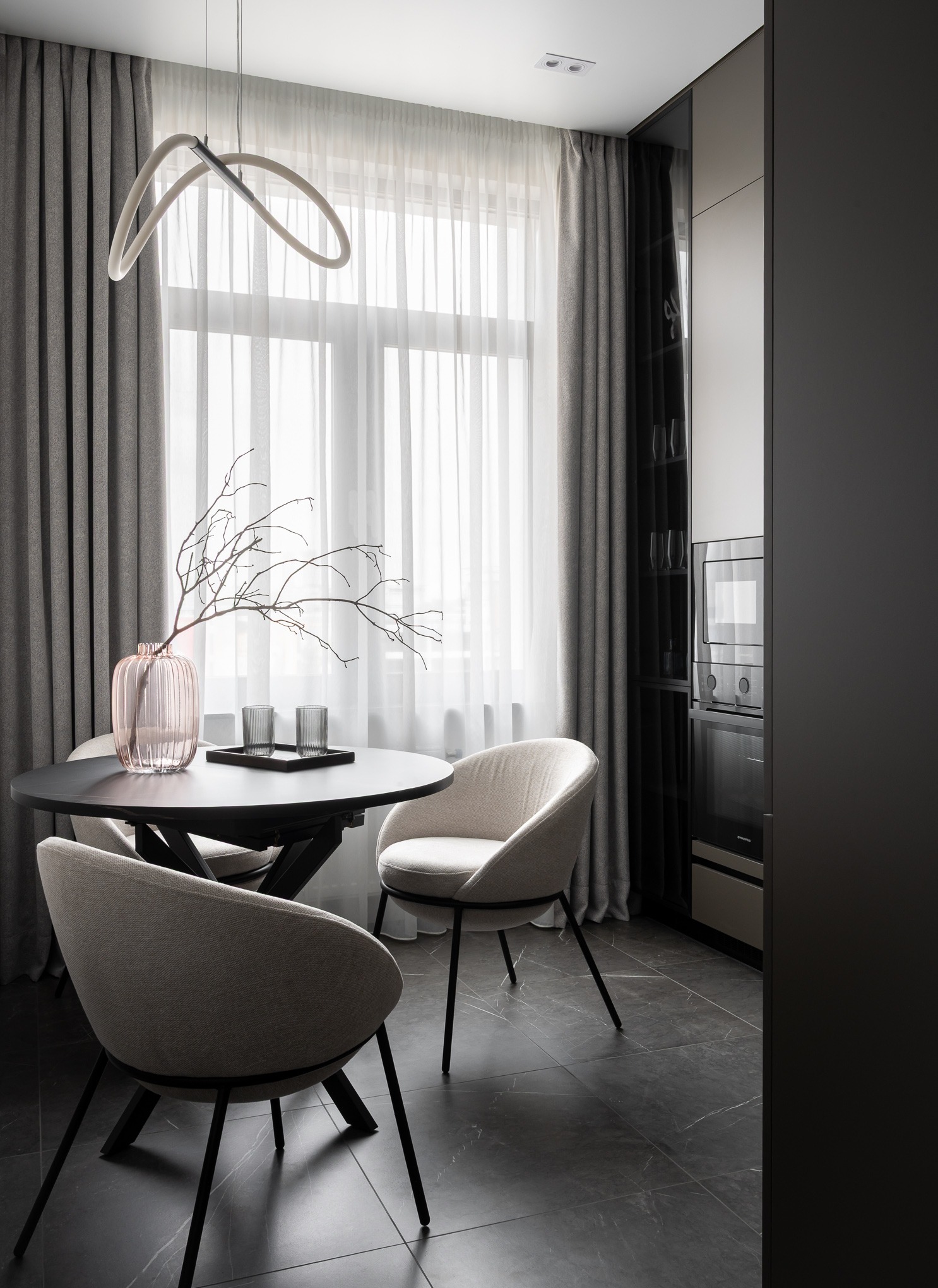 От контрольного замера до финальной сборки прошло около 3 месяцев. В результате получился интерьер в стиле «тихой роскоши»: глубокие тёмные акценты, мягкие текстуры, натуральное дерево, лаконичные формы и продуманное освещение. Здесь нет лишнего декора — каждая деталь работает на ощущение уюта, спокойствия и визуальной целостности.
