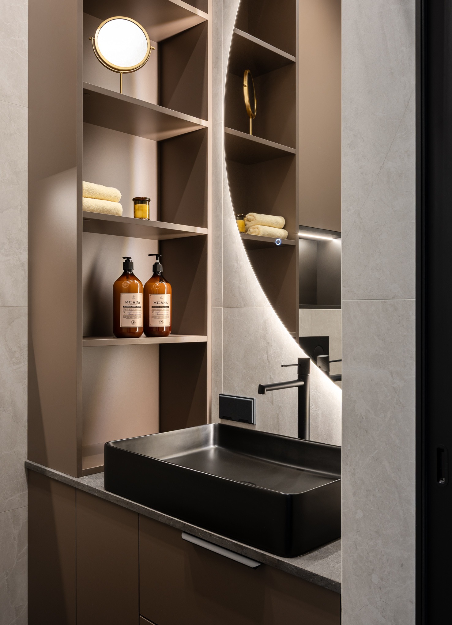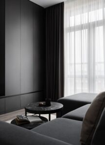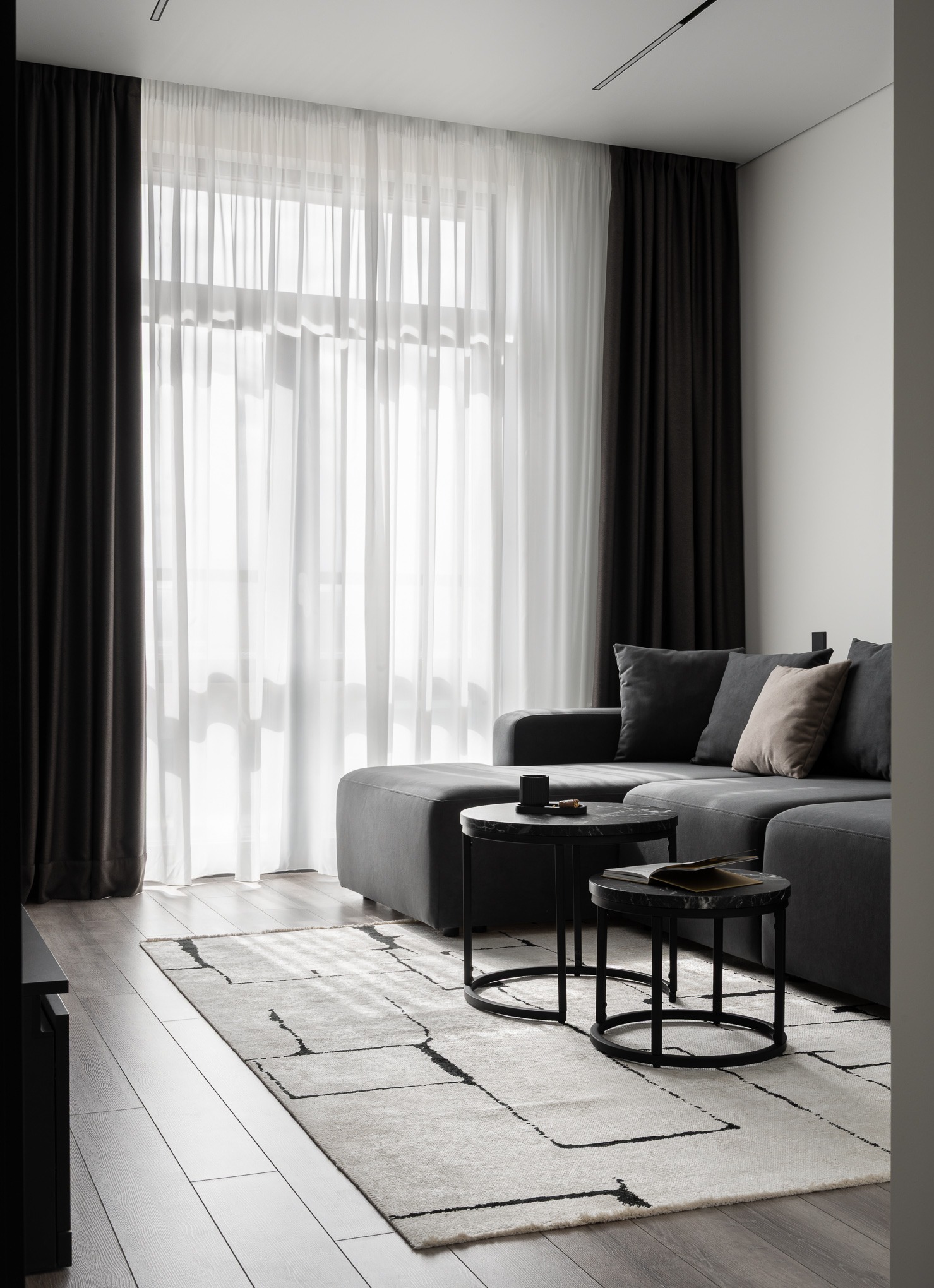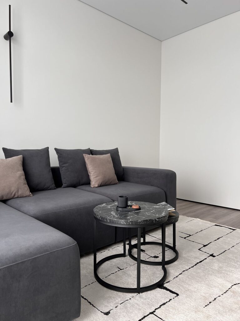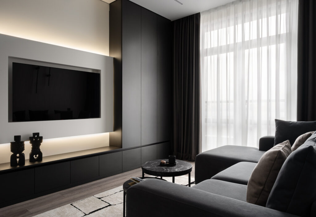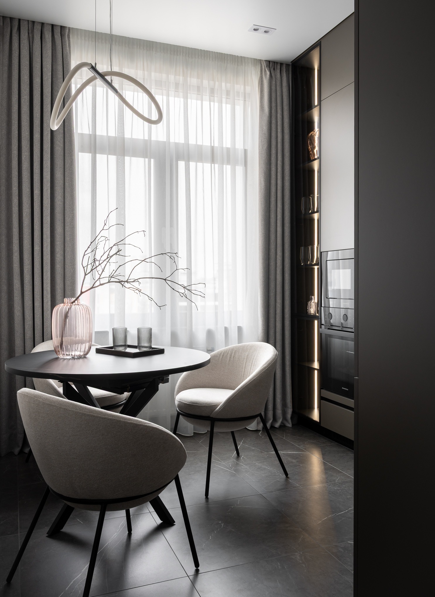 От контрольного замера до финальной сборки прошло около 3 месяцев. В результате получился интерьер в стиле «тихой роскоши»: глубокие тёмные акценты, мягкие текстуры, натуральное дерево, лаконичные формы и продуманное освещение. Здесь нет лишнего декора — каждая деталь работает на ощущение уюта, спокойствия и визуальной целостности.