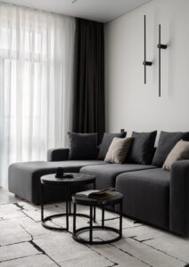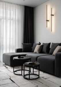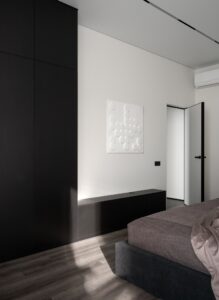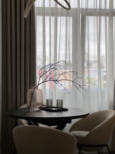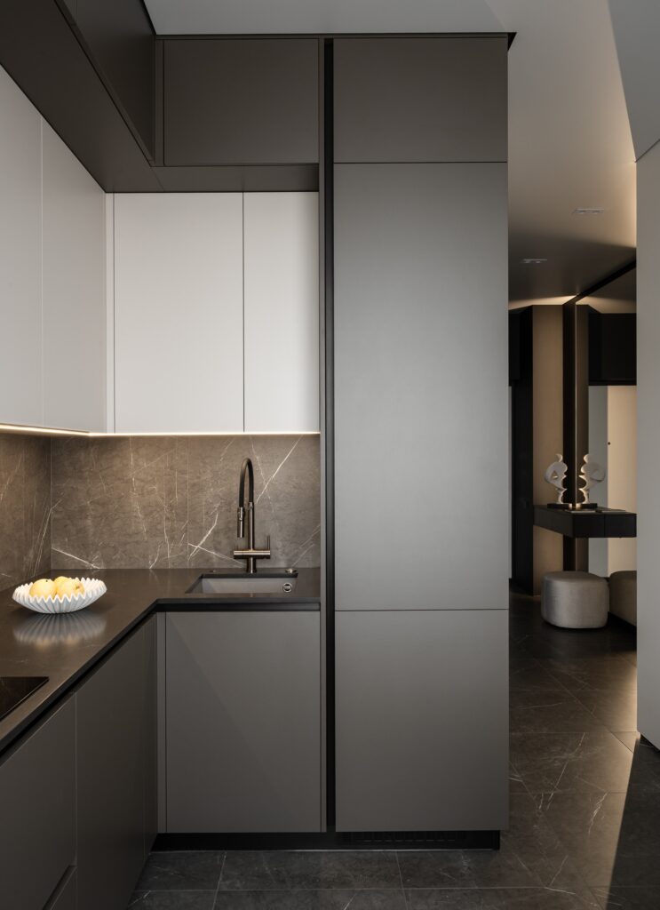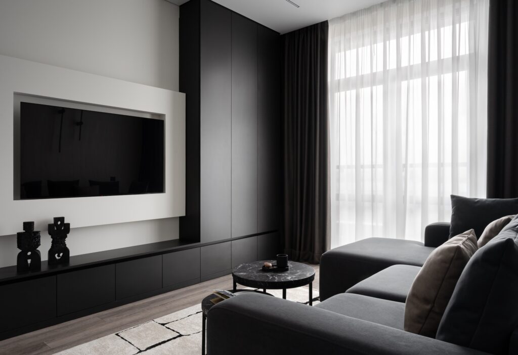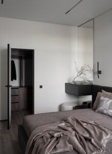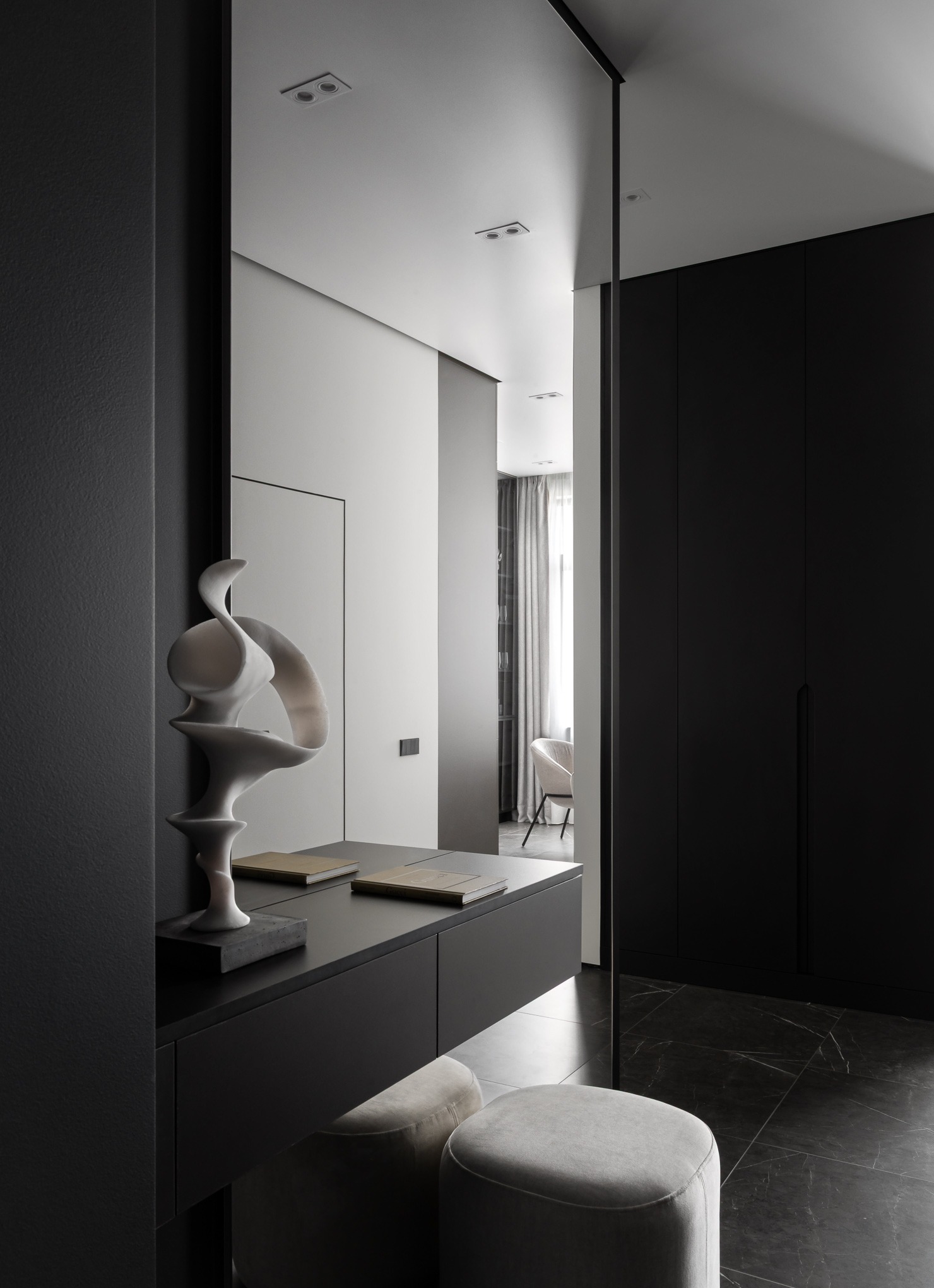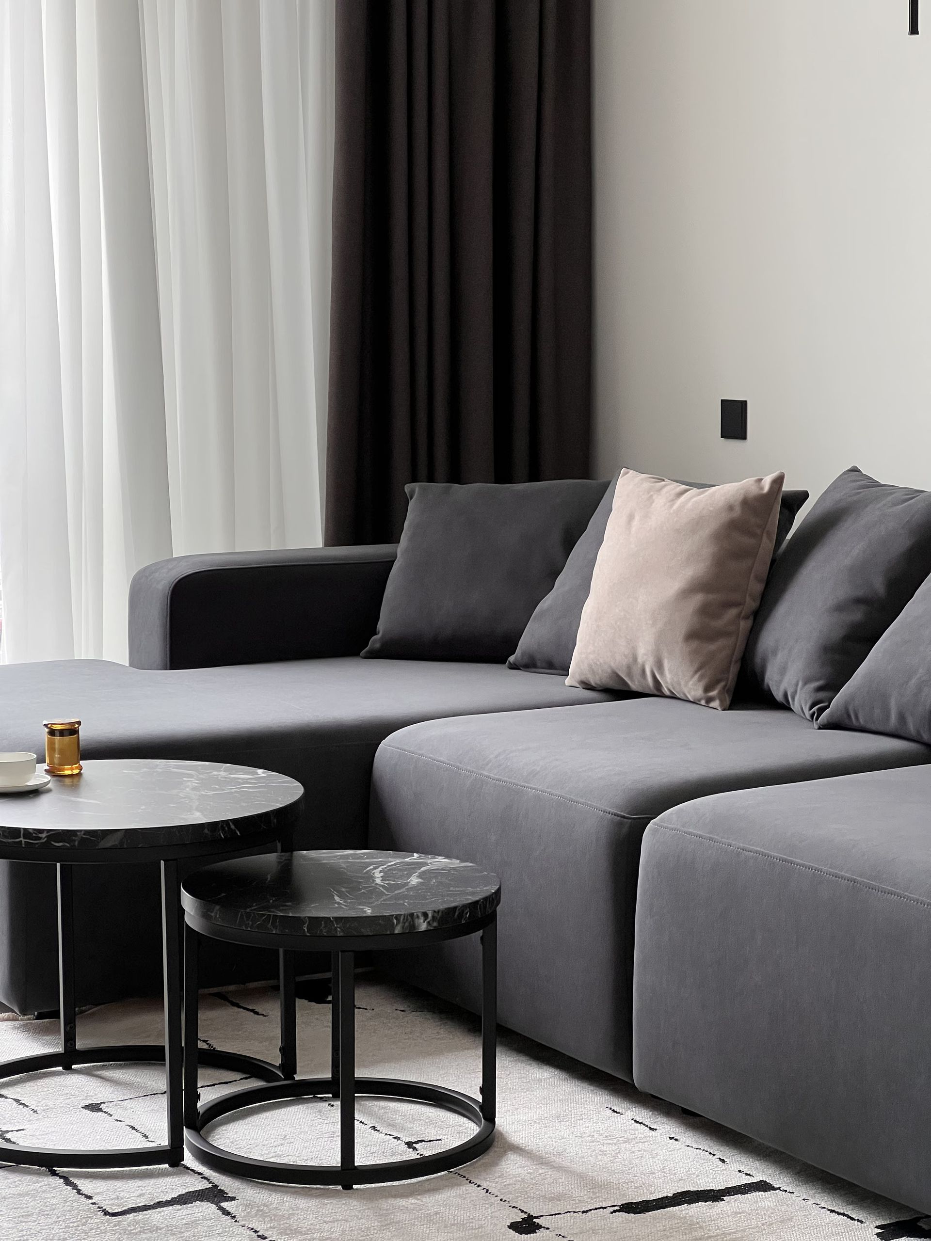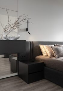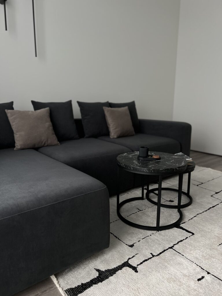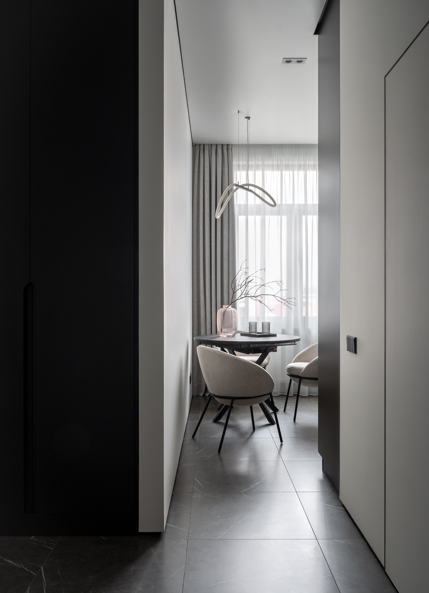 От контрольного замера до финальной сборки прошло около 3 месяцев. В результате получился интерьер в стиле «тихой роскоши»: глубокие тёмные акценты, мягкие текстуры, натуральное дерево, лаконичные формы и продуманное освещение. Здесь нет лишнего декора — каждая деталь работает на ощущение уюта, спокойствия и визуальной целостности.