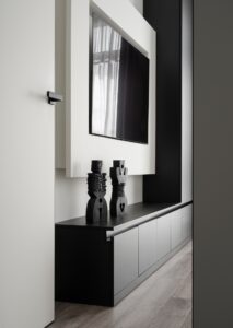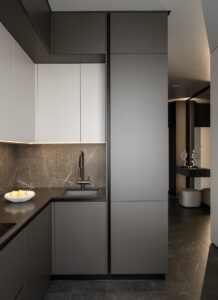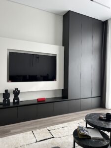 После завершения ремонтных работ команда Everest провела контрольный замер, зафиксировав финальные габариты помещений. На их основе была запущена мебельная часть проекта — изготовление корпусной мебели на нашем собственном производстве площадью 1800 м², с точной подгонкой под архитектуру пространства.