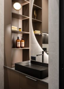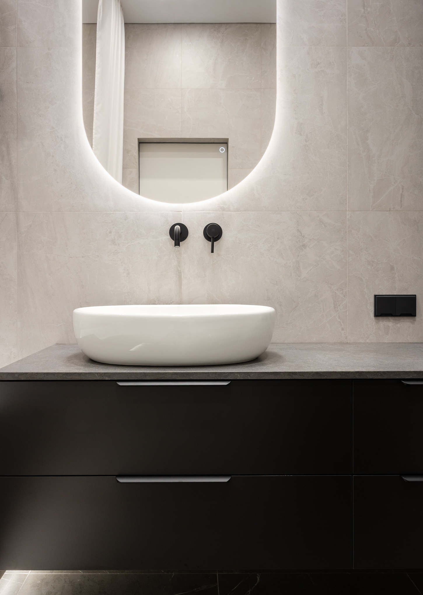 Работа началась на правильном этапе — сразу после получения ключей от застройщика. Наш дизайнер выехал на объект, выполнил первичные замеры и на их основе разработал детальный дизайн-проект. Особое внимание было уделено логике пространства, сценариям освещения и скрытым системам хранения. Параллельно были подготовлены технические рекомендации для строителей: размещение перегородок, электрики, сантехники и закладных под мебель — всё для точной и беспроблемной реализации проекта.