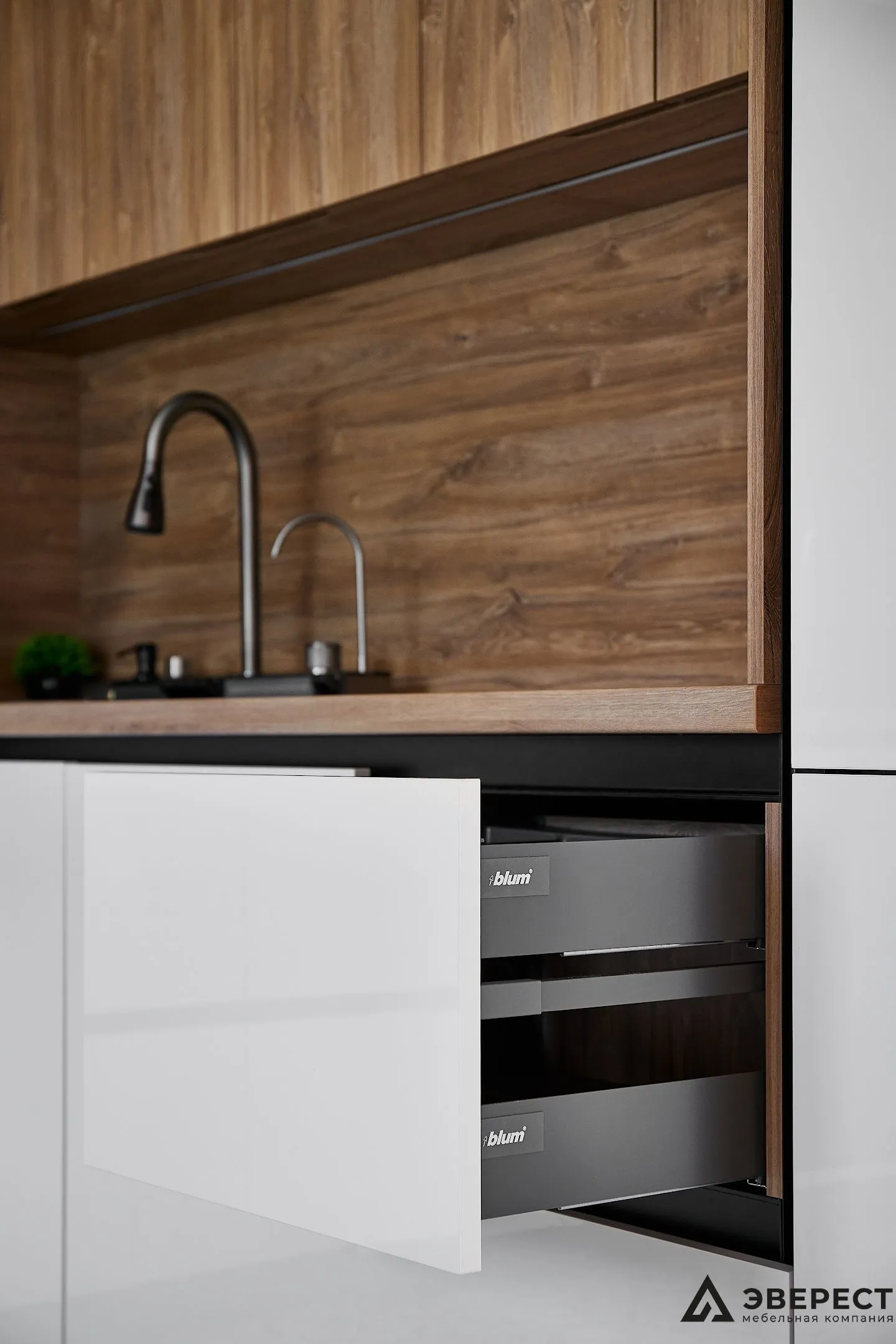 Фурнитура использована фирмы Blum. Такая фурнитура отличается качеством и долговечностью ,эстетикой, функциональностью, экологичностью .