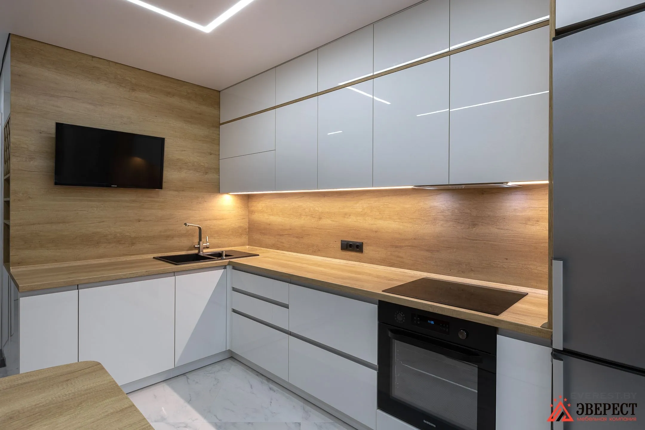Наличие собственного производства, спецтранспорта и опытных монтажников позволяют нам сделать Вашу кухню максимально быстро!
