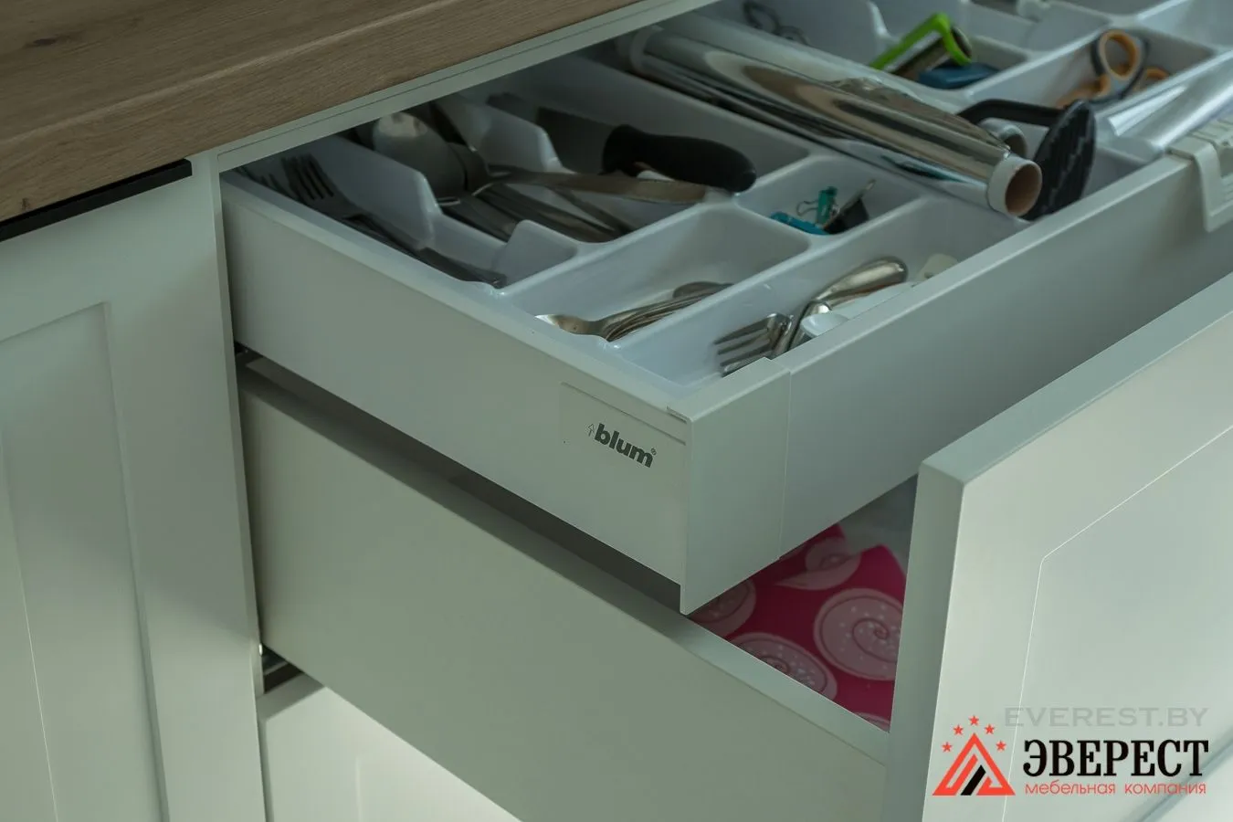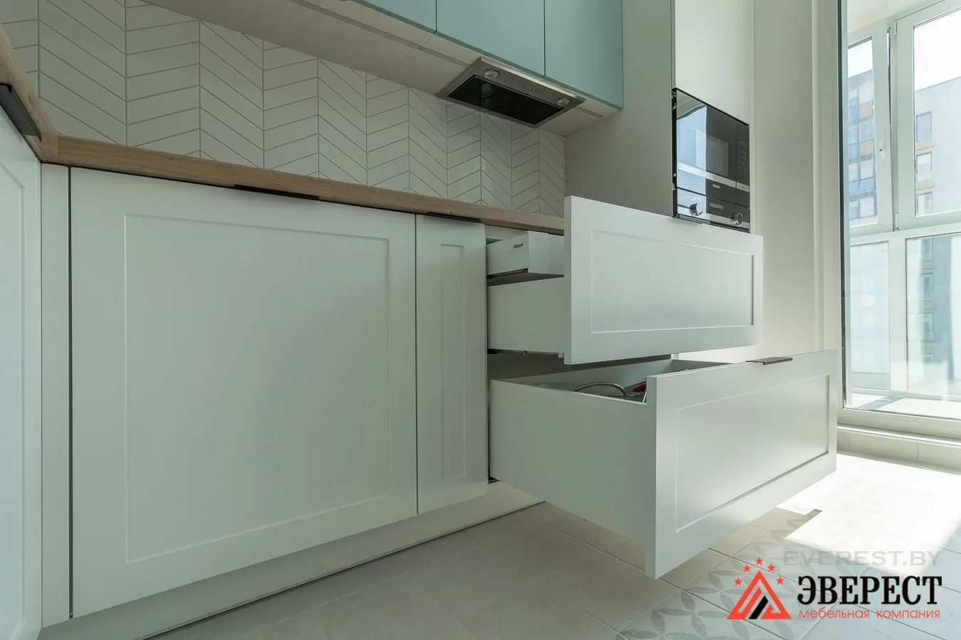 Нижние фасады в белом цвете — крашенные RAL 9003 с фрезеровкой.
