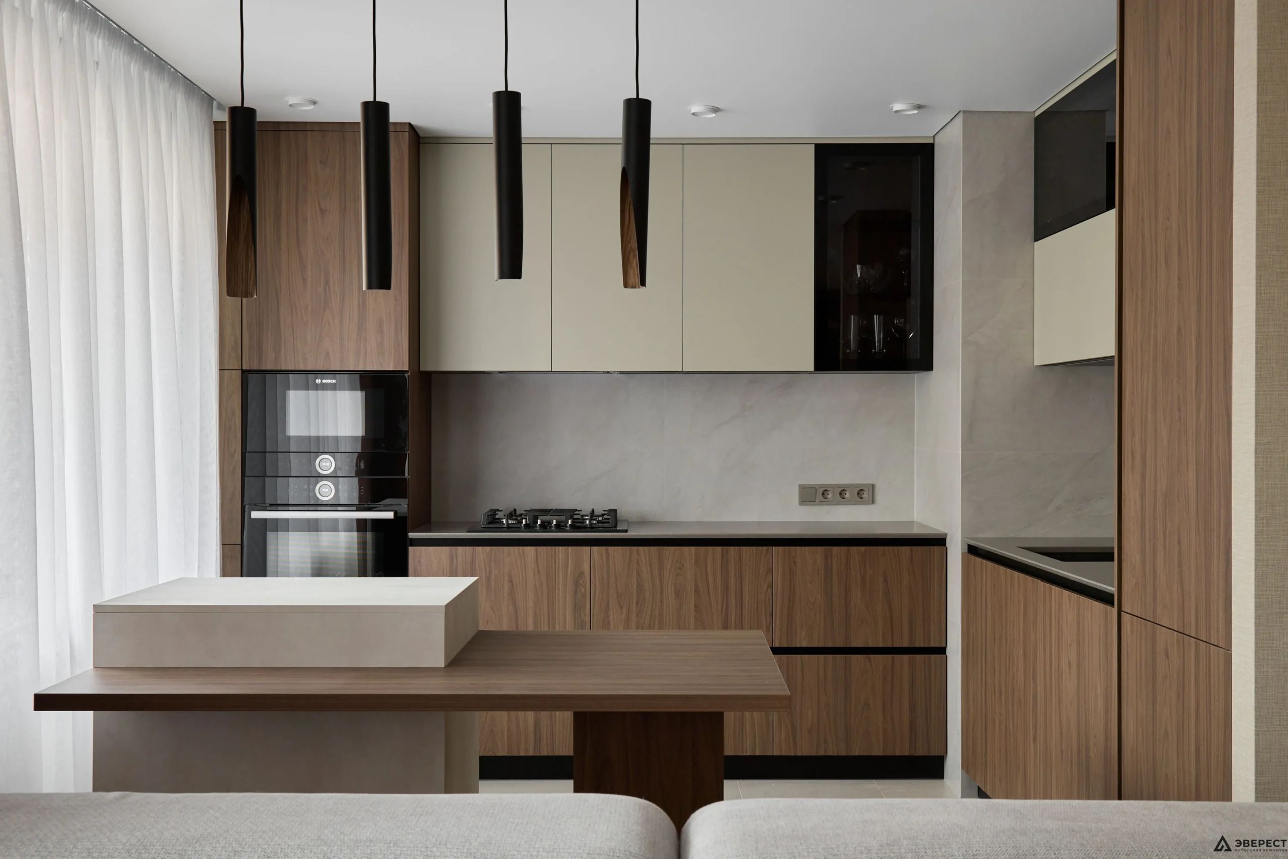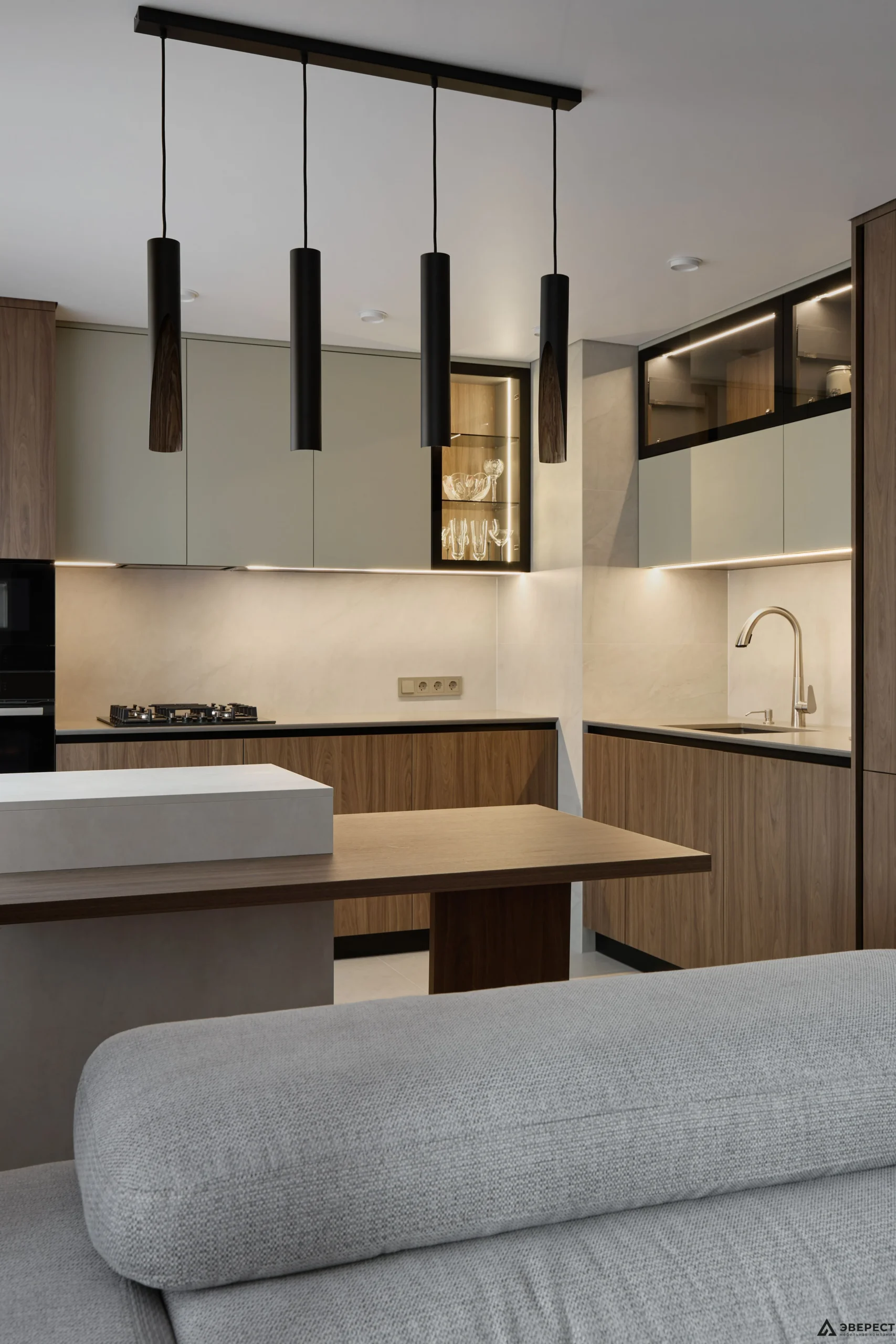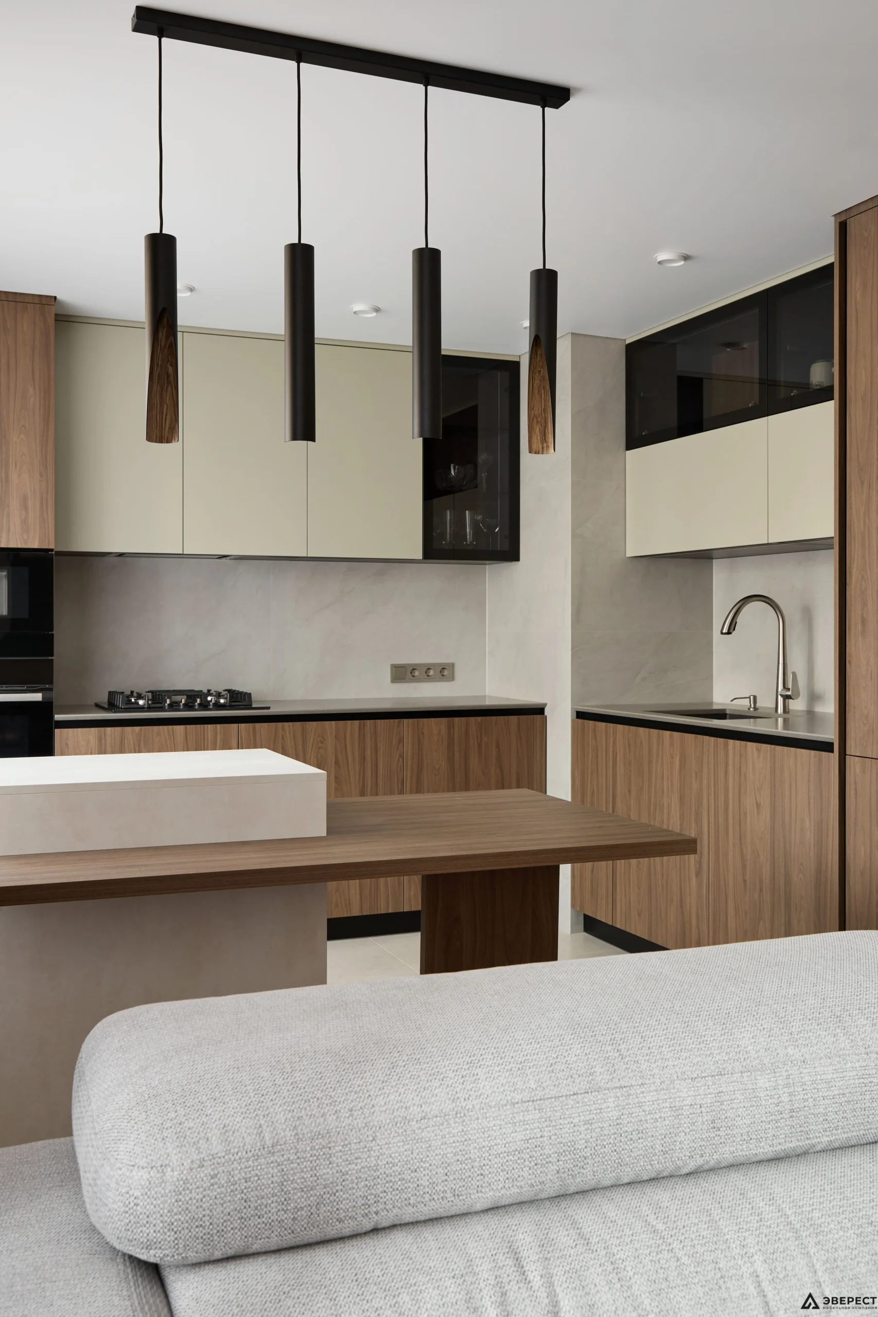 Рады представить вам наш новый реализованный проект кухни. Особое внимание здесь привлекает гармония цветов и текстур, создающая атмосферу уюта и современности.