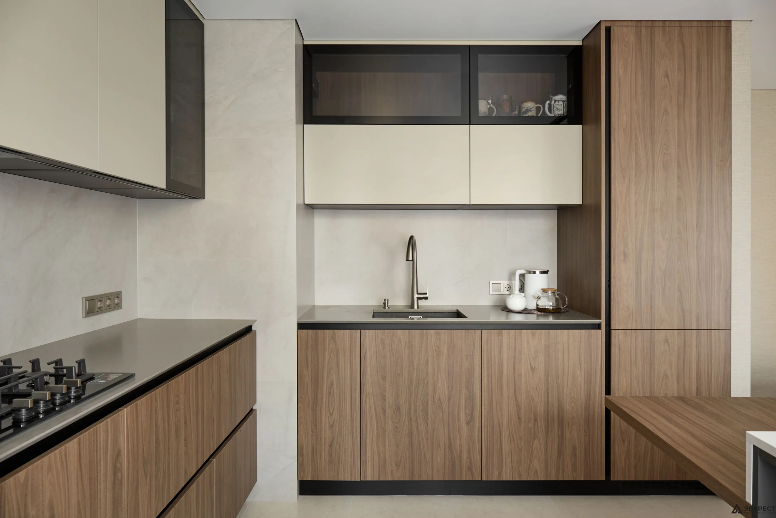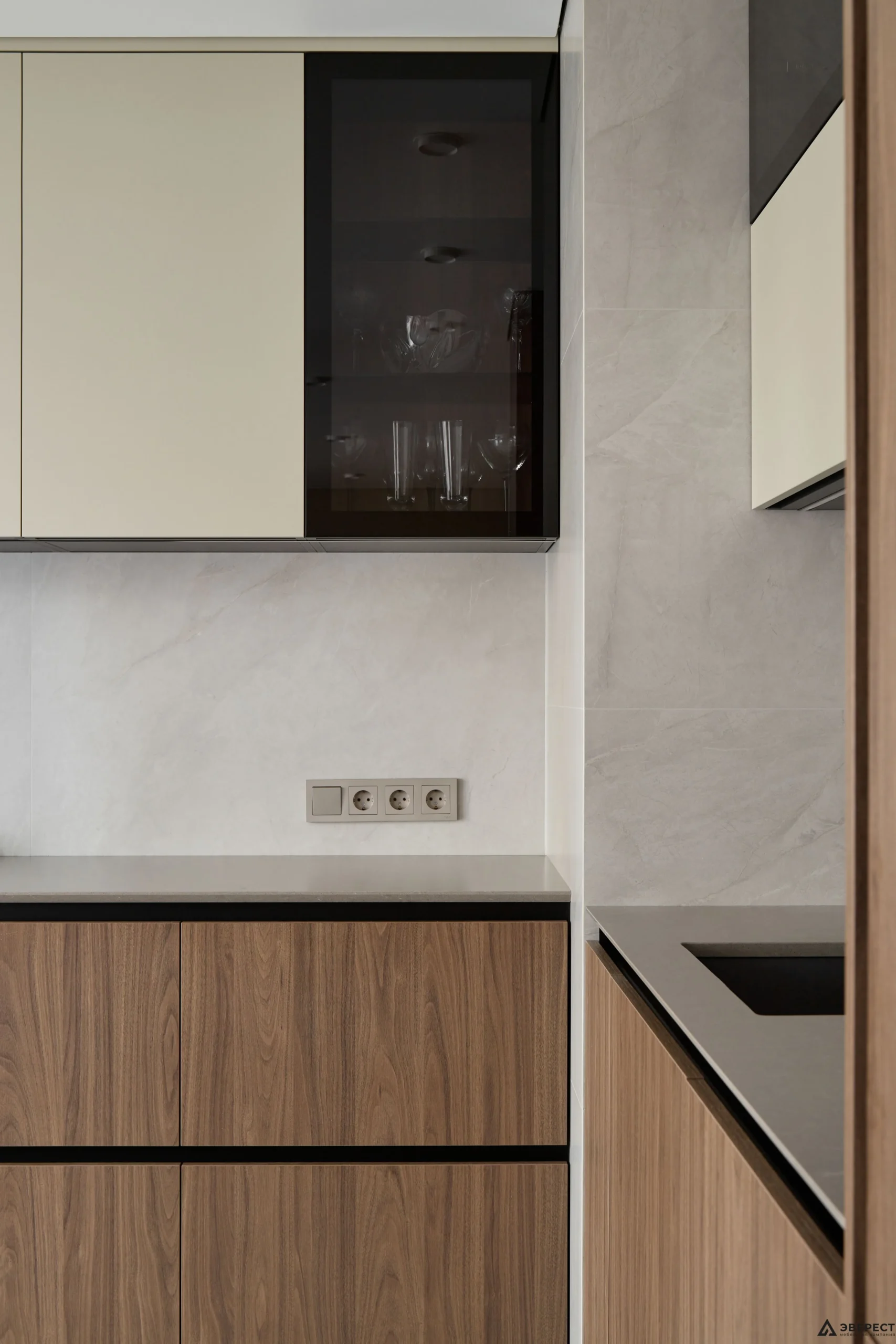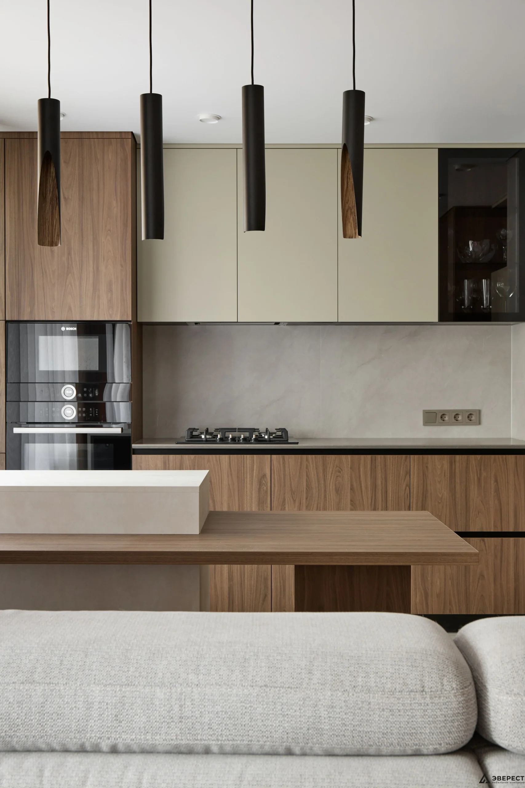 Рады представить вам наш новый реализованный проект кухни. Особое внимание здесь привлекает гармония цветов и текстур, создающая атмосферу уюта и современности.