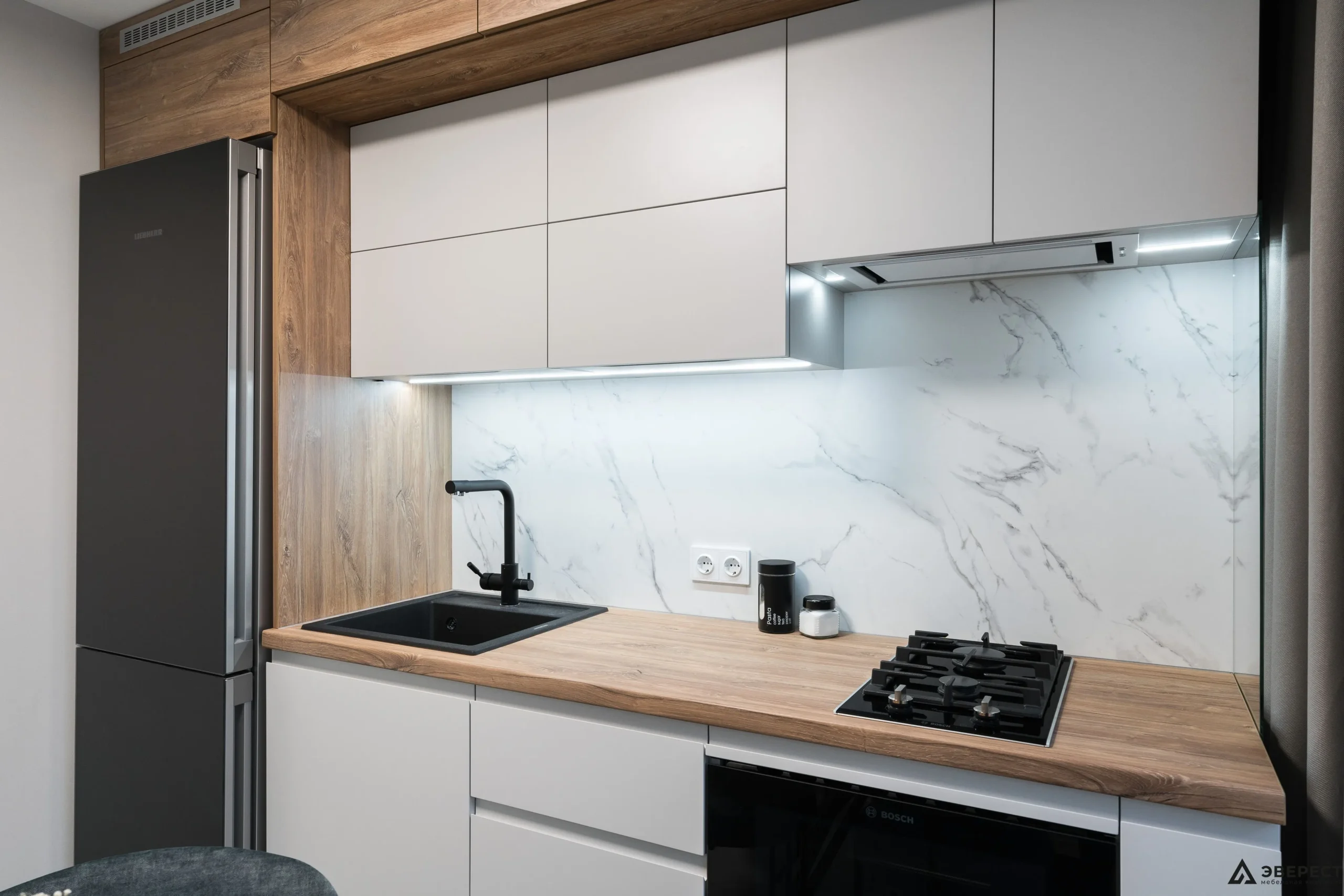 Наличие собственного производства, спецтранспорта и опытных монтажников позволяют нам сделать Вашу кухню максимально быстро!