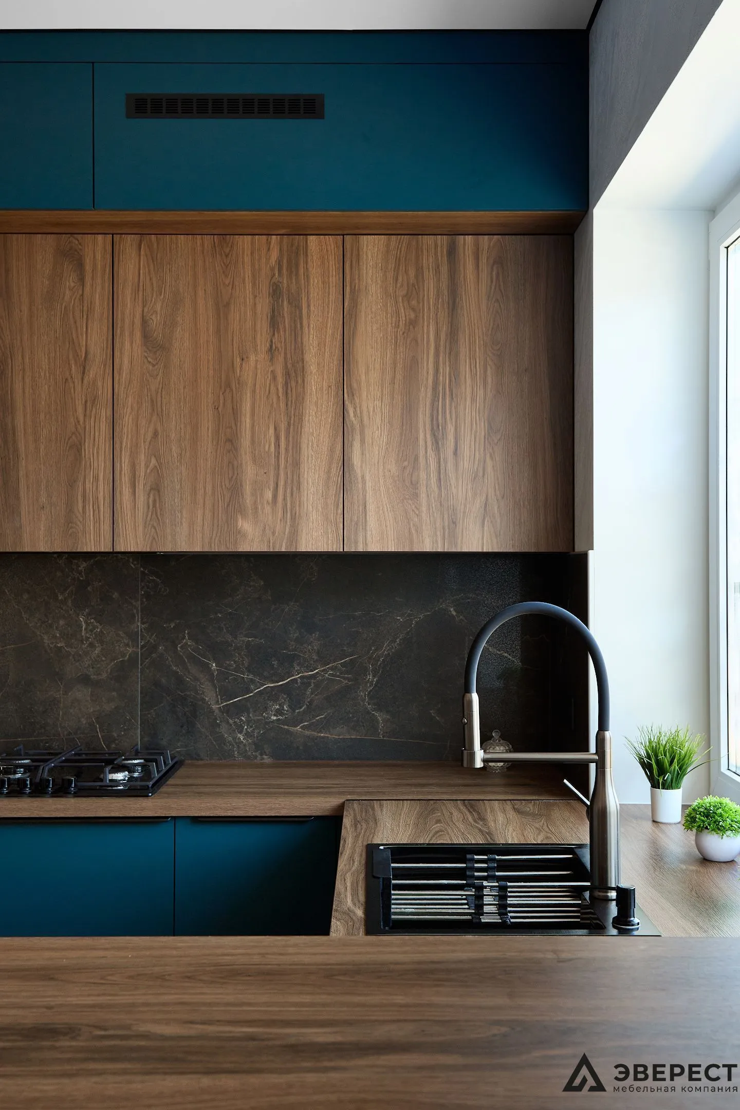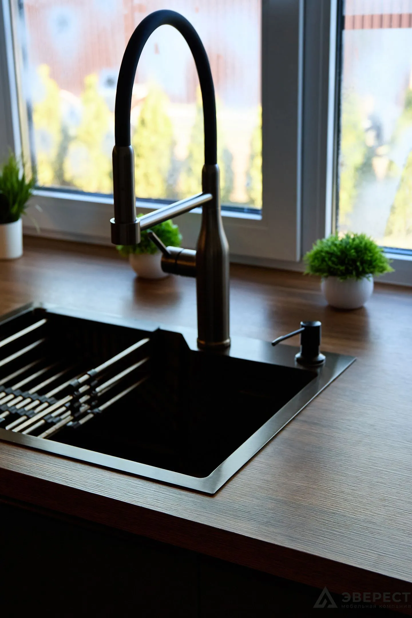 Мойка, расположенная под окном, не только добавляет естественного света в кухонное пространство, но и создает приятный вид на улицу во время выполнения повседневных задач. Это особенно приятно, когда за окном открывается живописный пейзаж или зеленый сад.