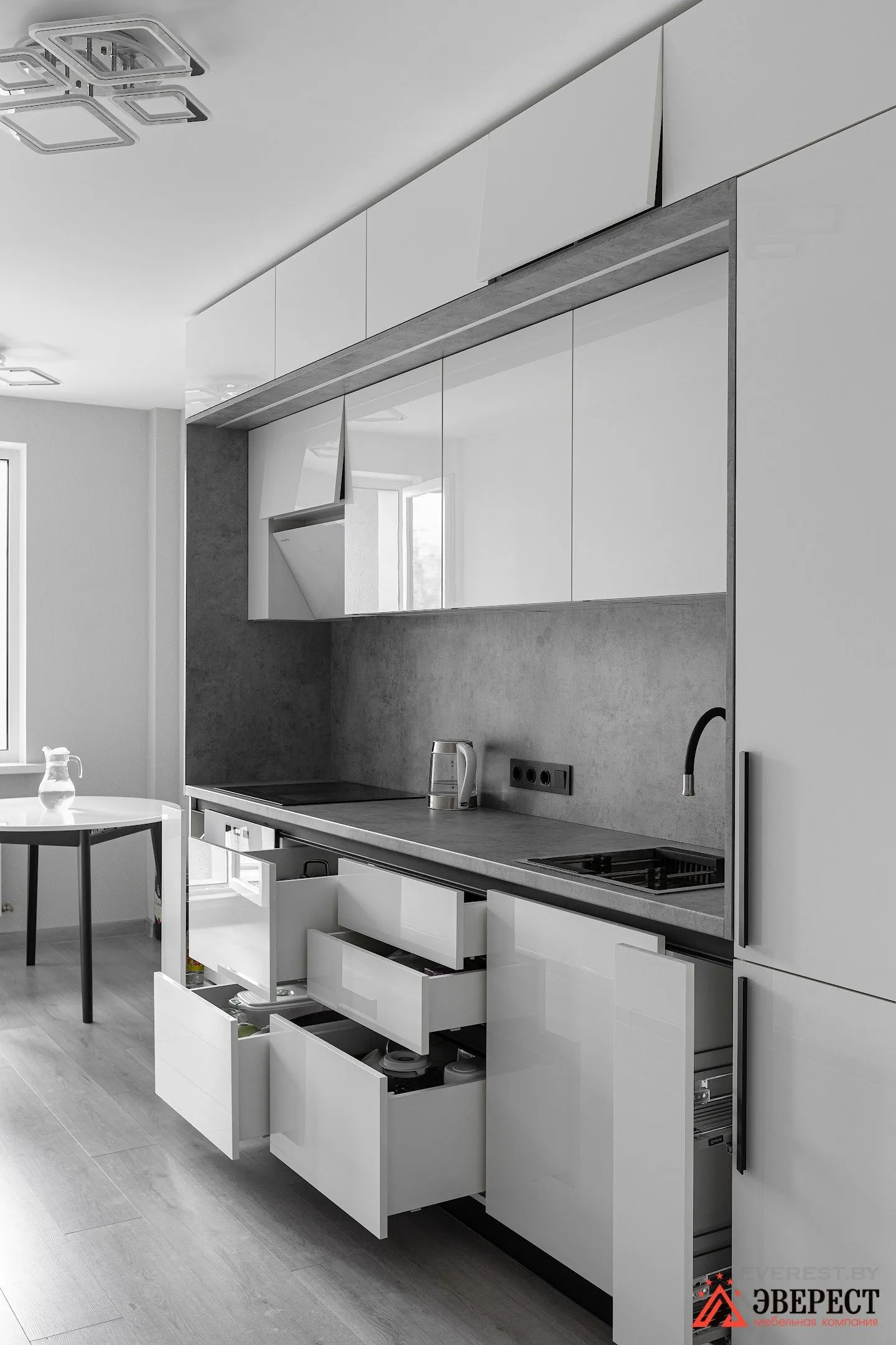 Наличие собственного производства, спецтранспорта и опытных монтажников позволяют нам сделать Вашу кухню максимально быстро!