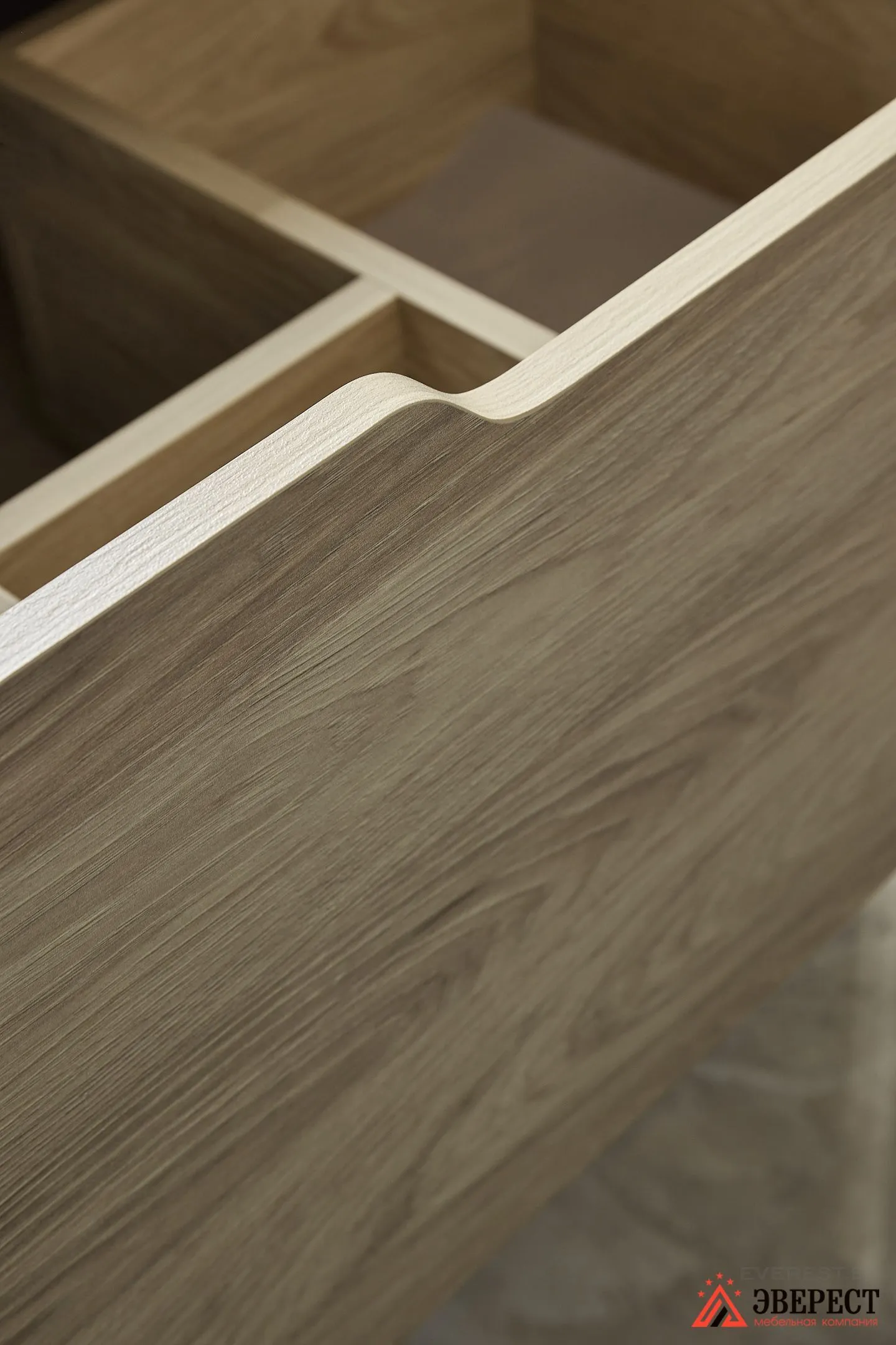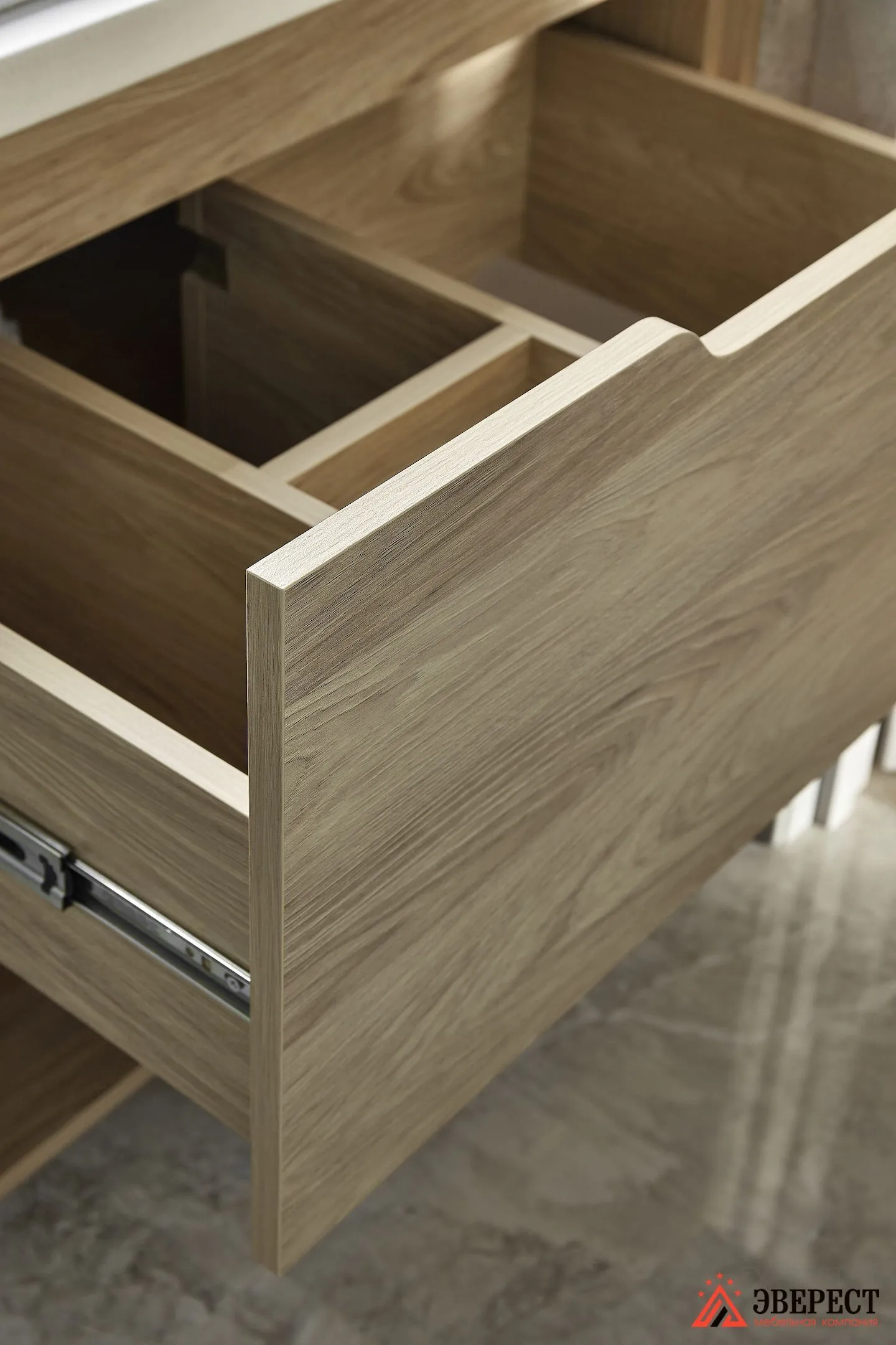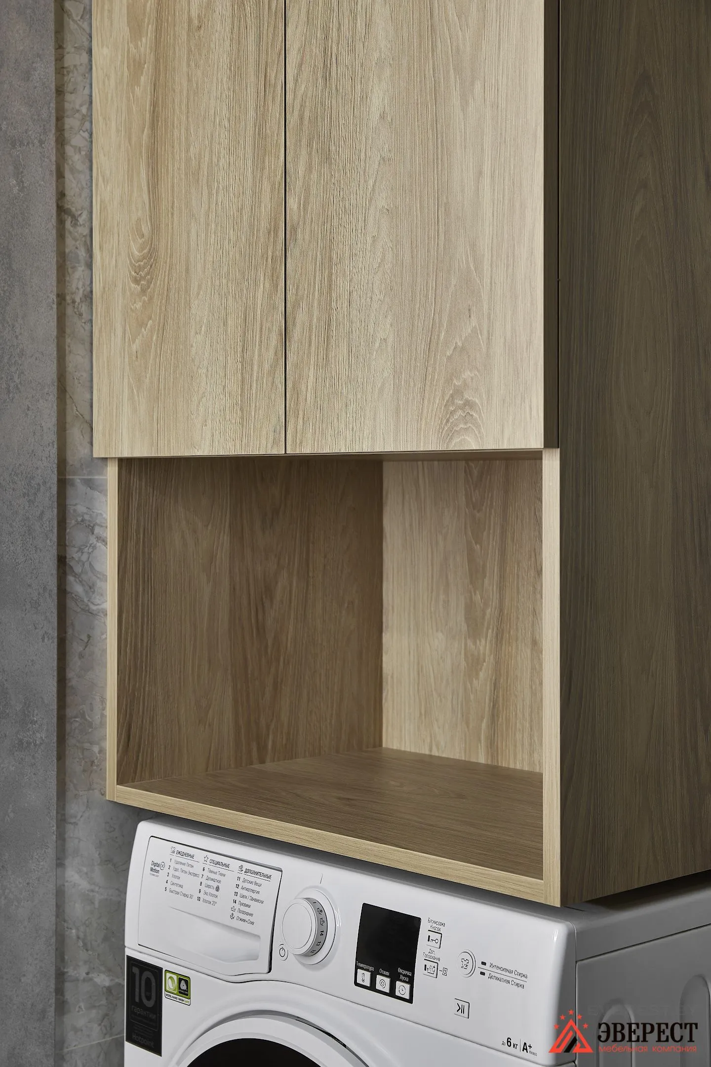 Фасады и каркасы — ЛДСП EGGER Гикори натуральный. То дерево, которое идеально подошло под цвет отделки стен.