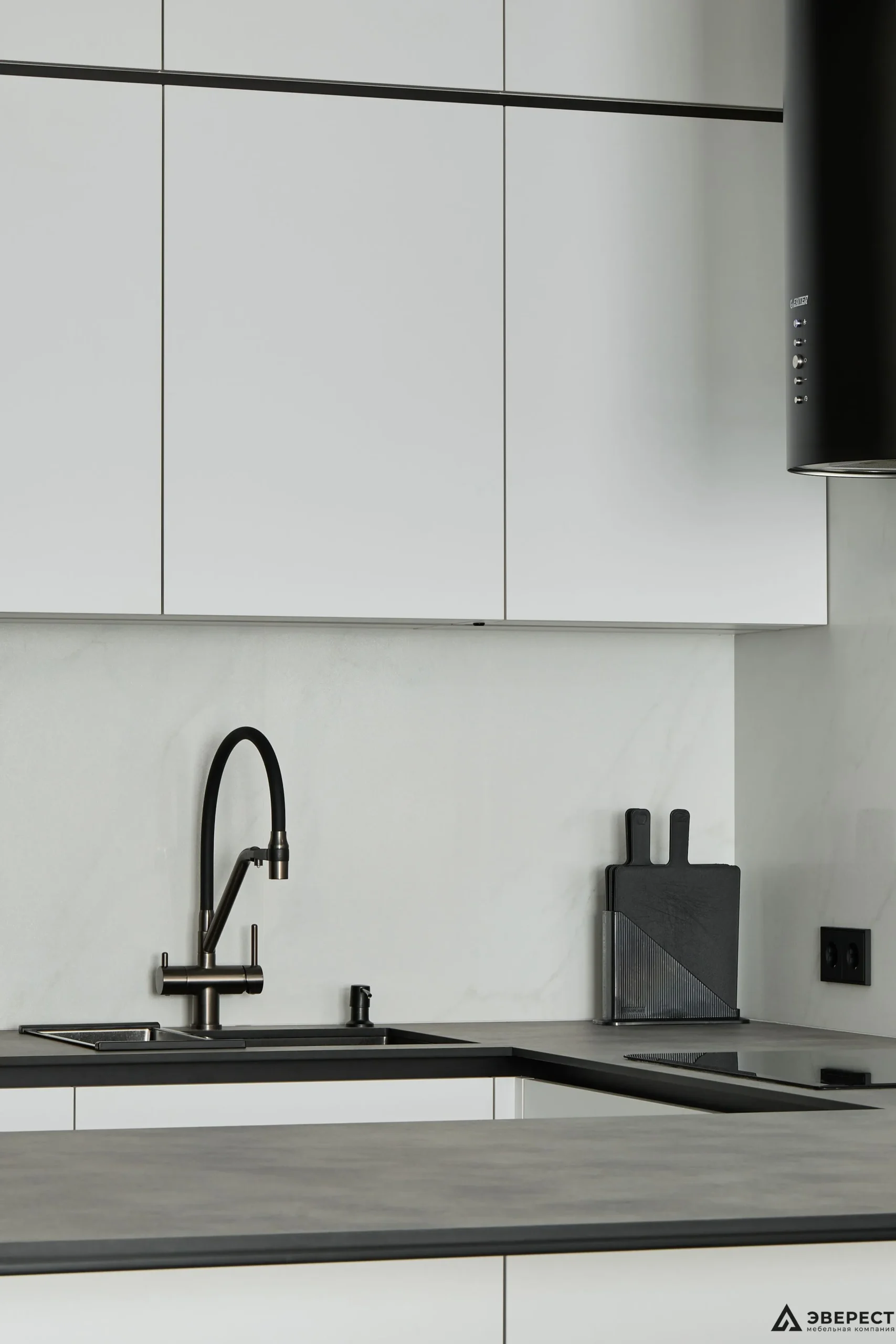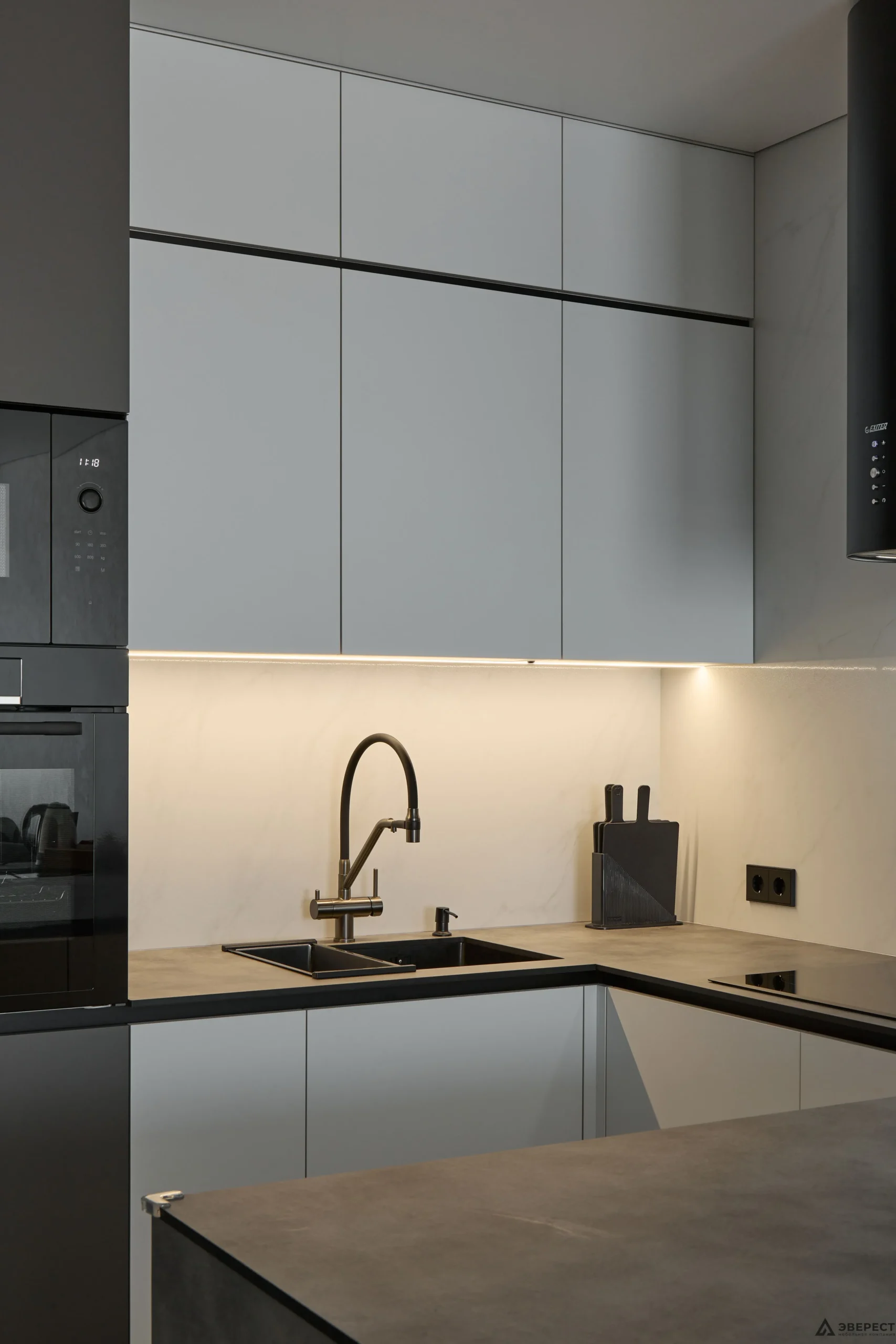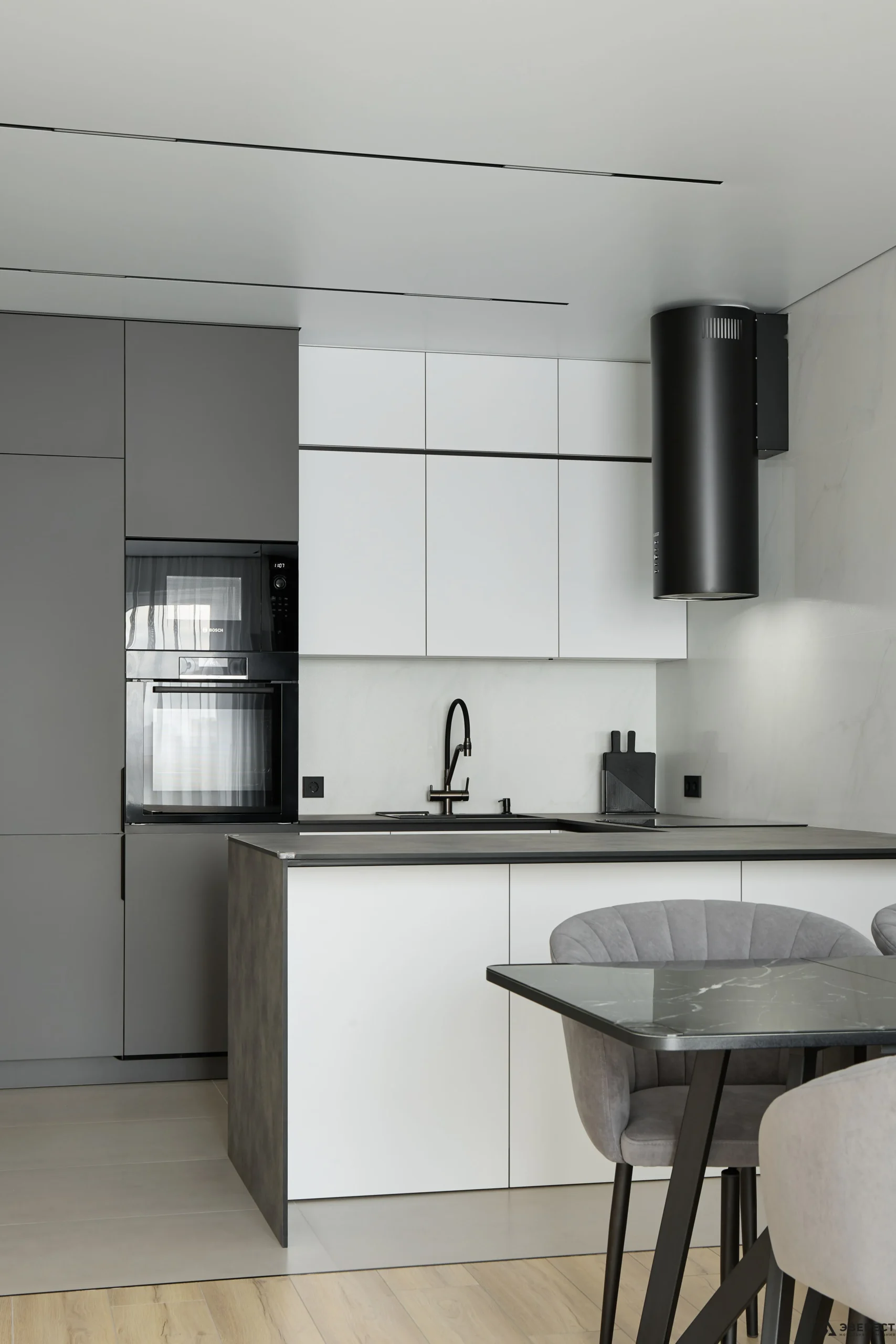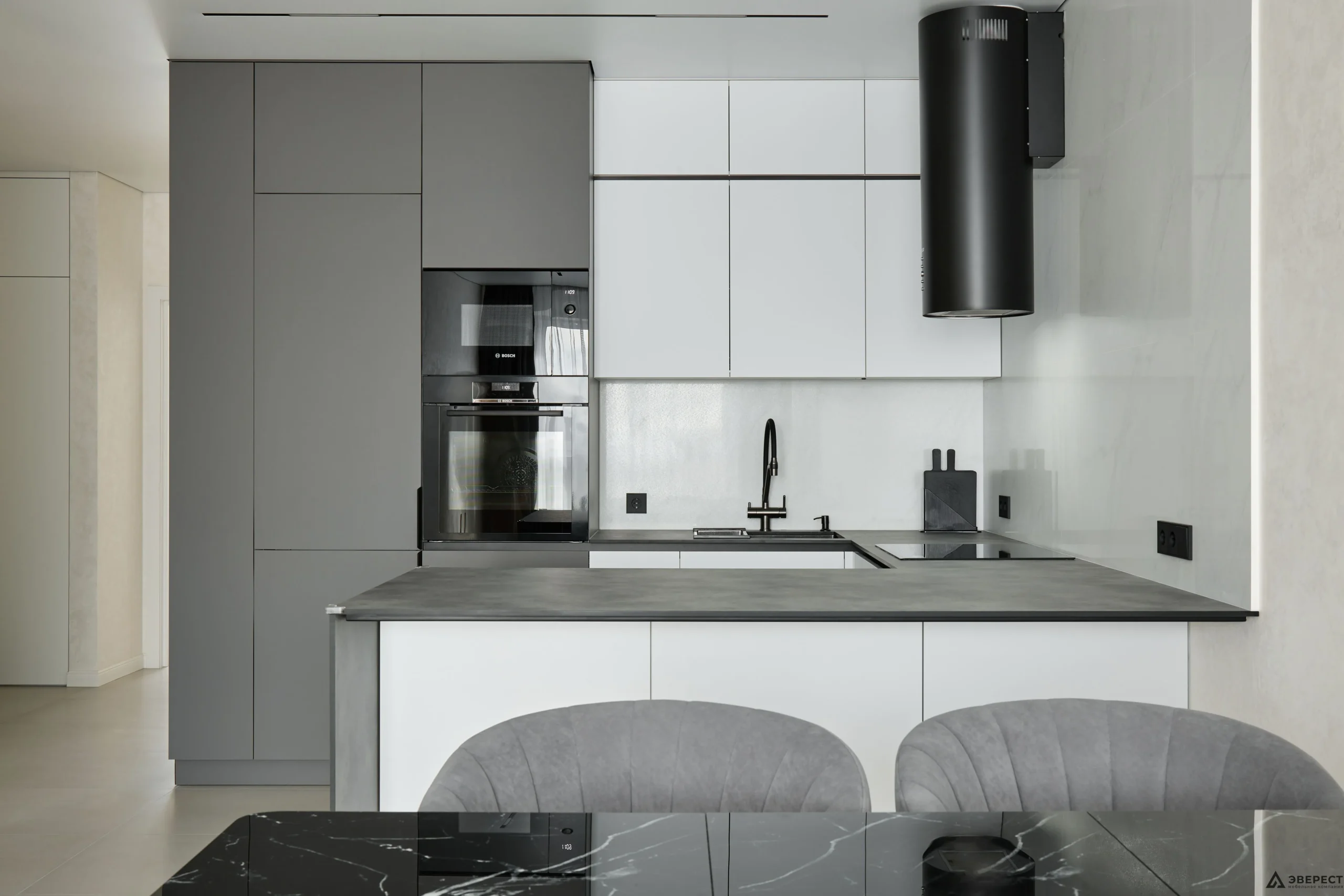 ▫️Фасады кухни из МДФ AGT Moonlight обеспечивают гармоничное сочетание с корпусом из белого классического ДСП Egger.