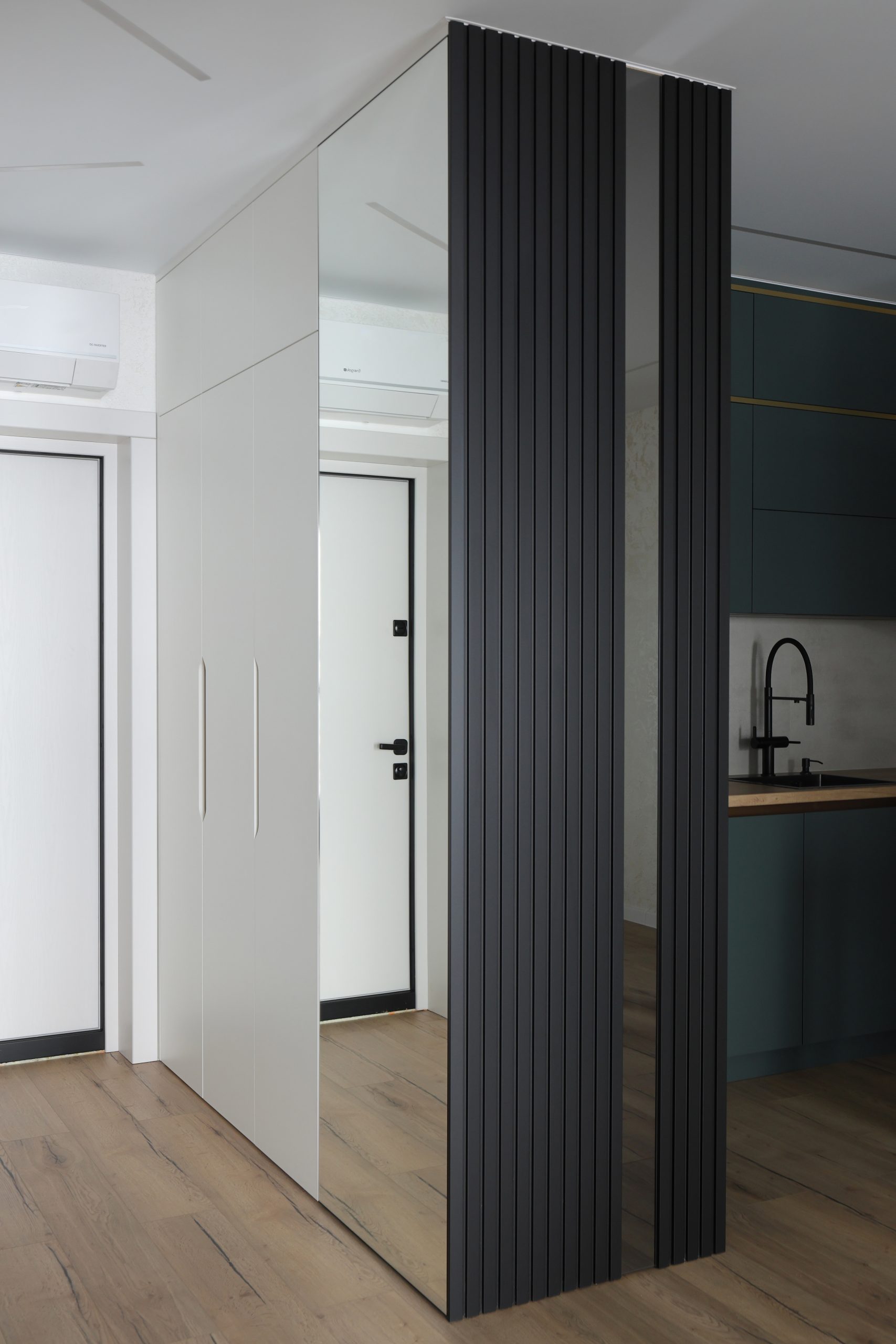 Представляем вам реализованный шкаф для прихожей, который стал не только стильным акцентом, но и функциональным решением. Этот шкаф выполняет роль зонирования между прихожей и кухней, плавно интегрируясь в общий интерьер. Со стороны кухни он имеет уникальное решение: холодильник утоплен в шкаф, что позволяет сохранить порядок и эстетику.