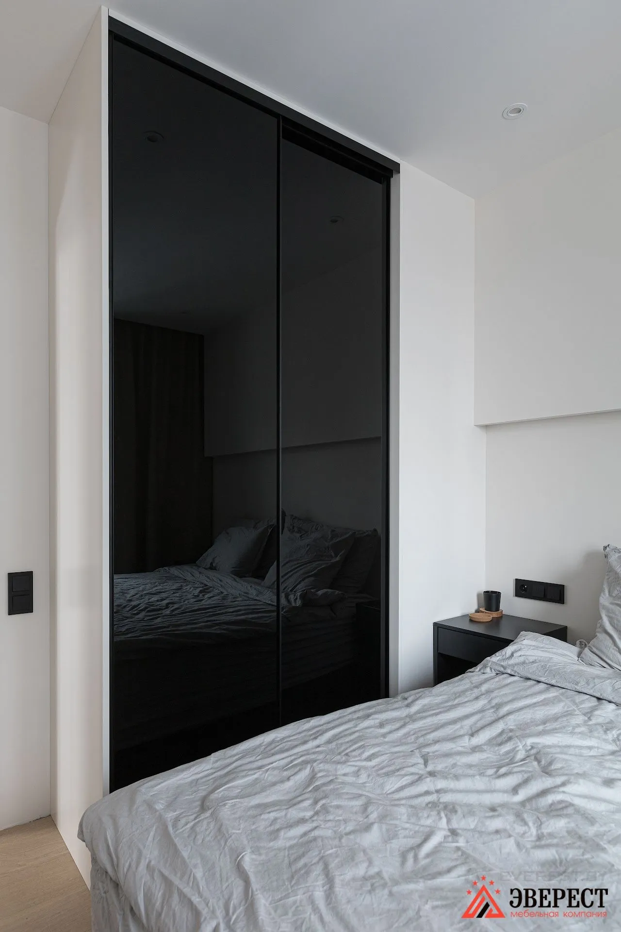 Шкаф купе с дверями из черного лакобеля — это элегантное и современное решение для вашей спальни или гардеробной комнаты.
