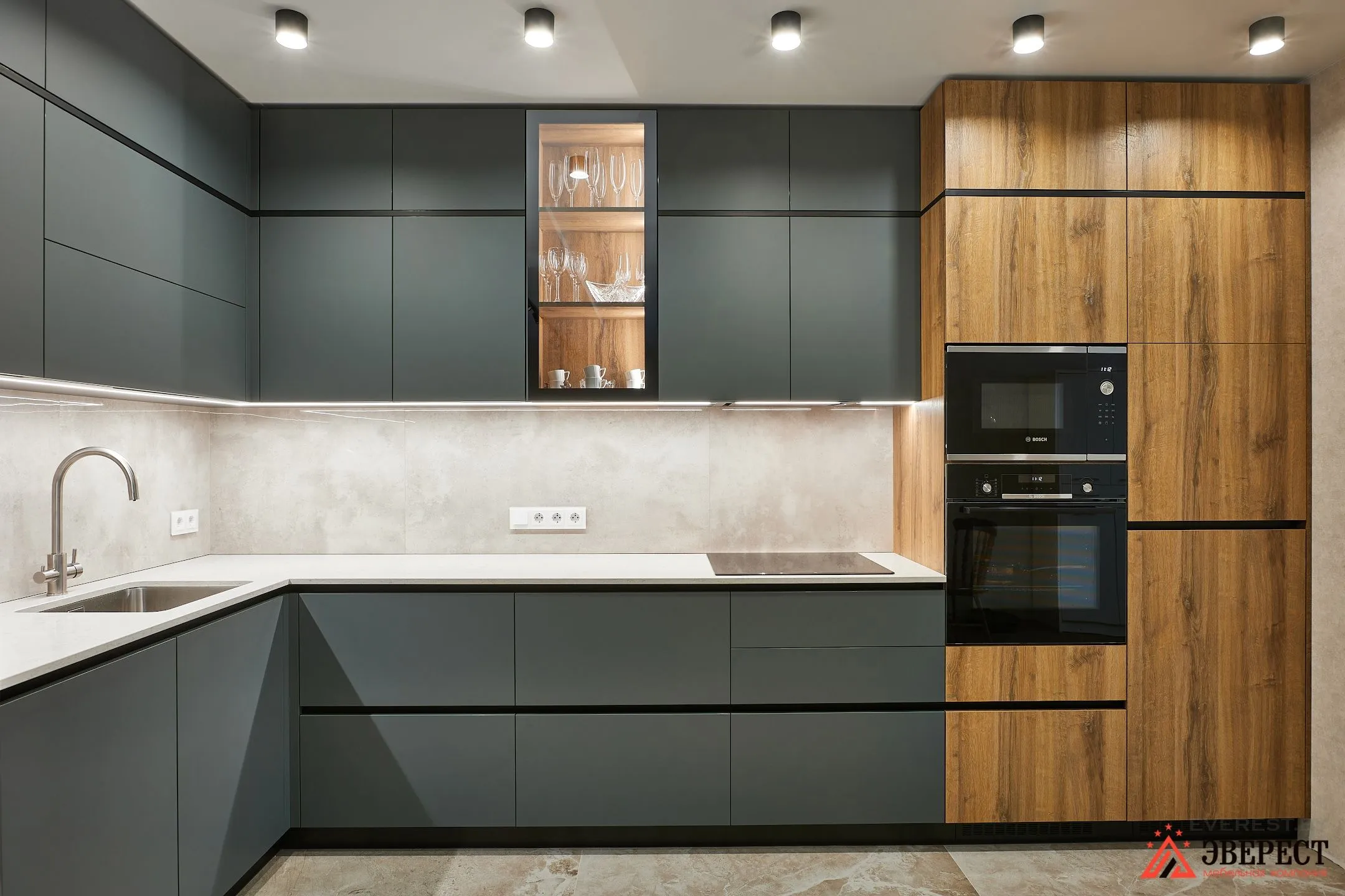 Угловая кухня под потолок «Баттон»