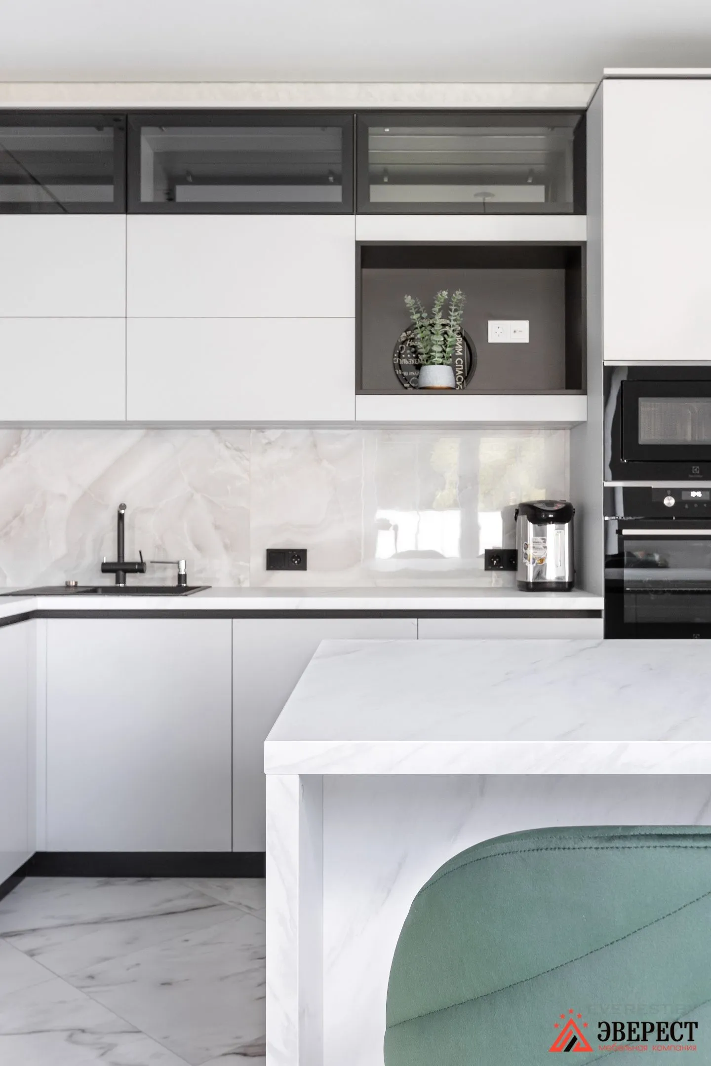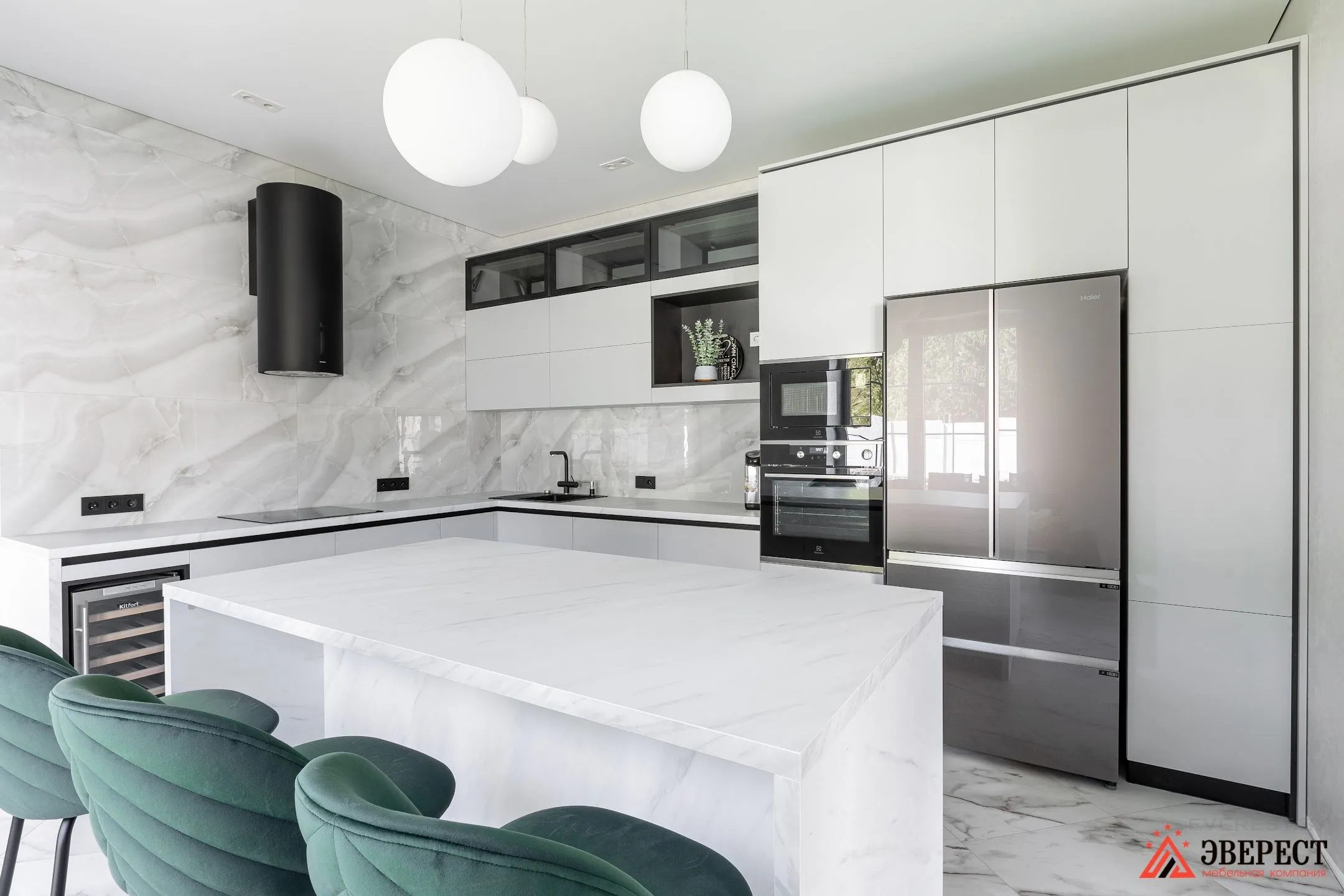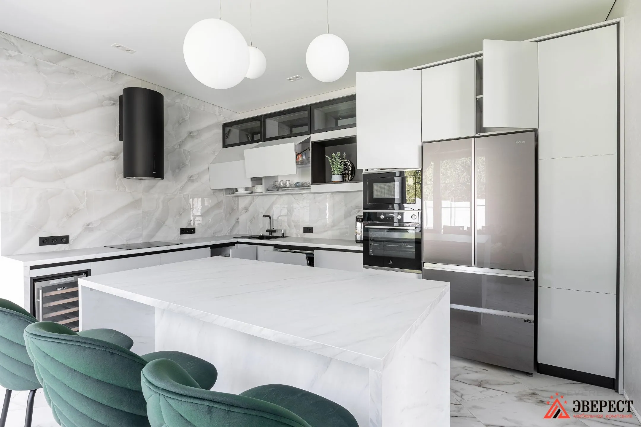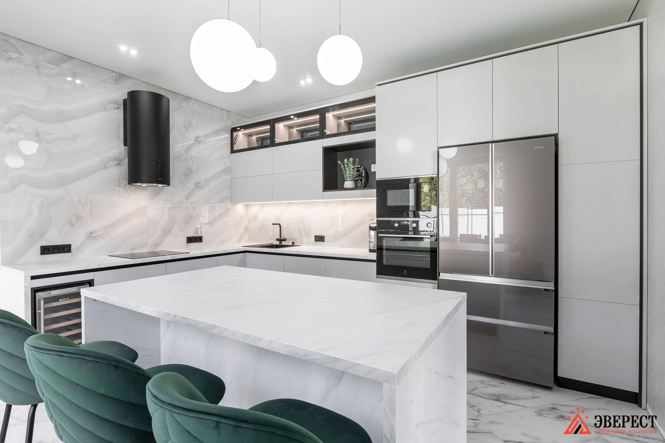 Угловая кухня под потолок с островной зоной «Шаран»