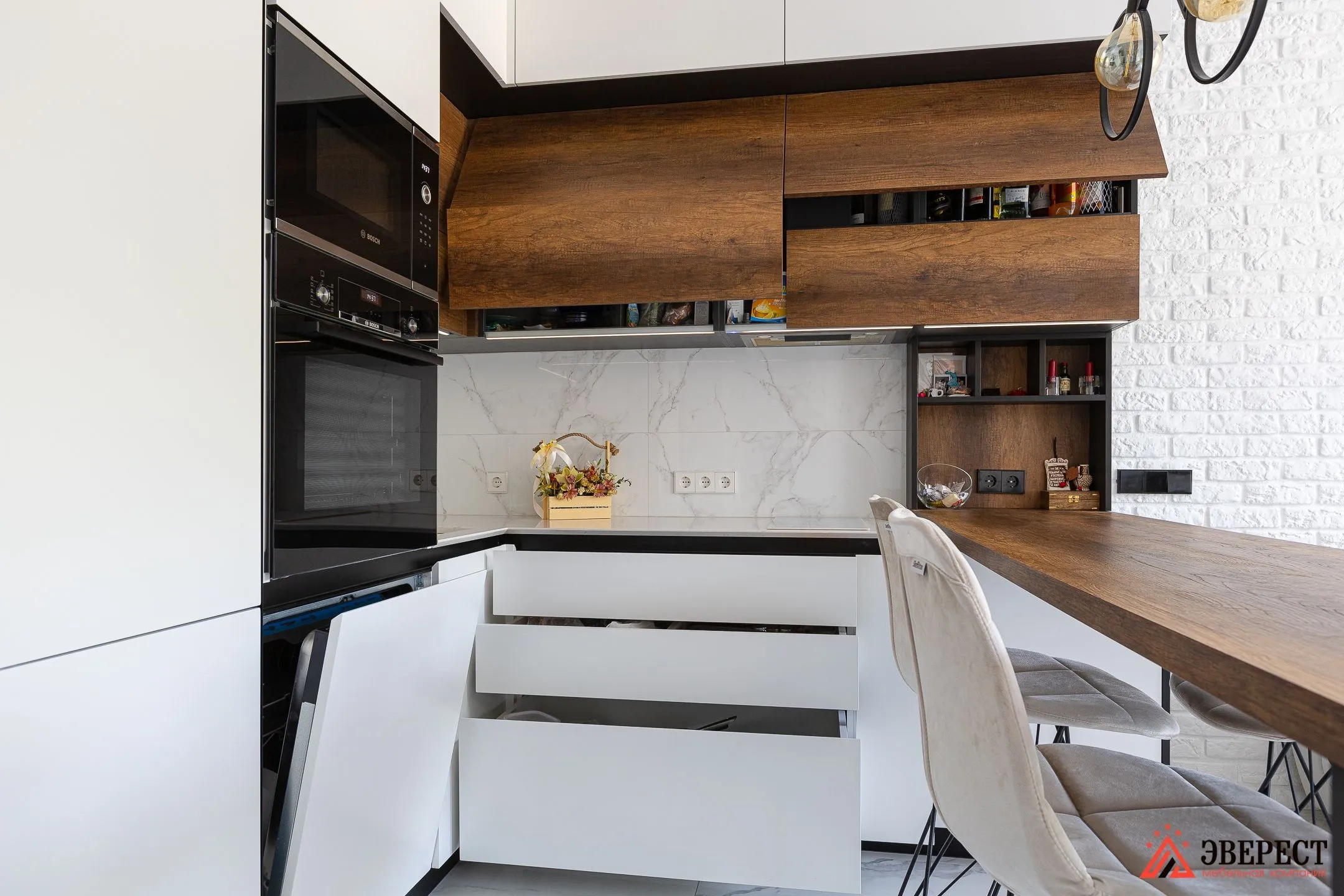 Столешница: Кварц 20мм, в стоимость кухни не входит и рассчитывается отдельно*
