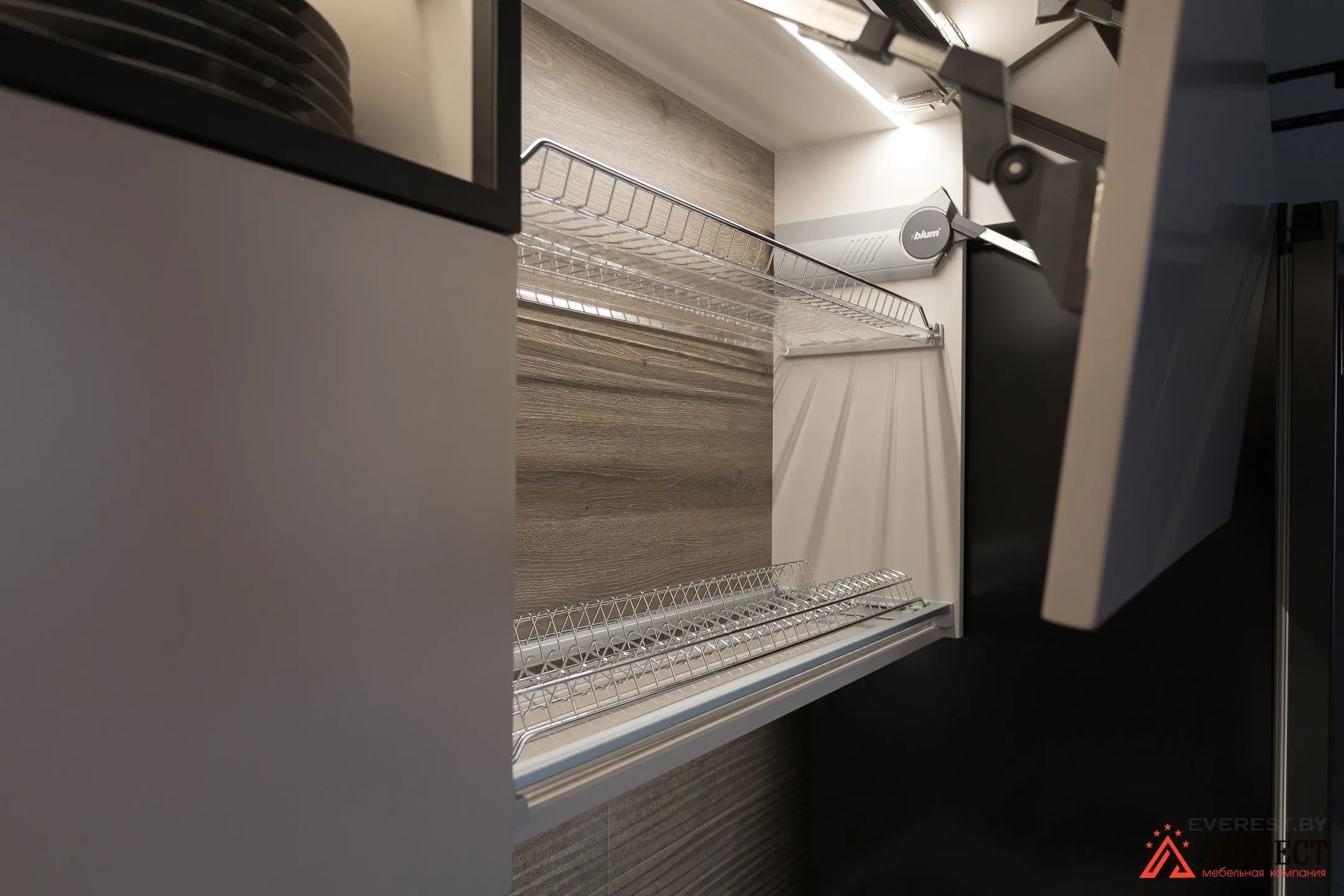 Установлены подъемные механизмы компании Blum HF, hk, hk-xs+tip-on. Выдвижные ящики Blum tandem ( x/d)Установлена встроенная вытяжка, двойная сушка 900 мм калибра хром двухуровневая,
