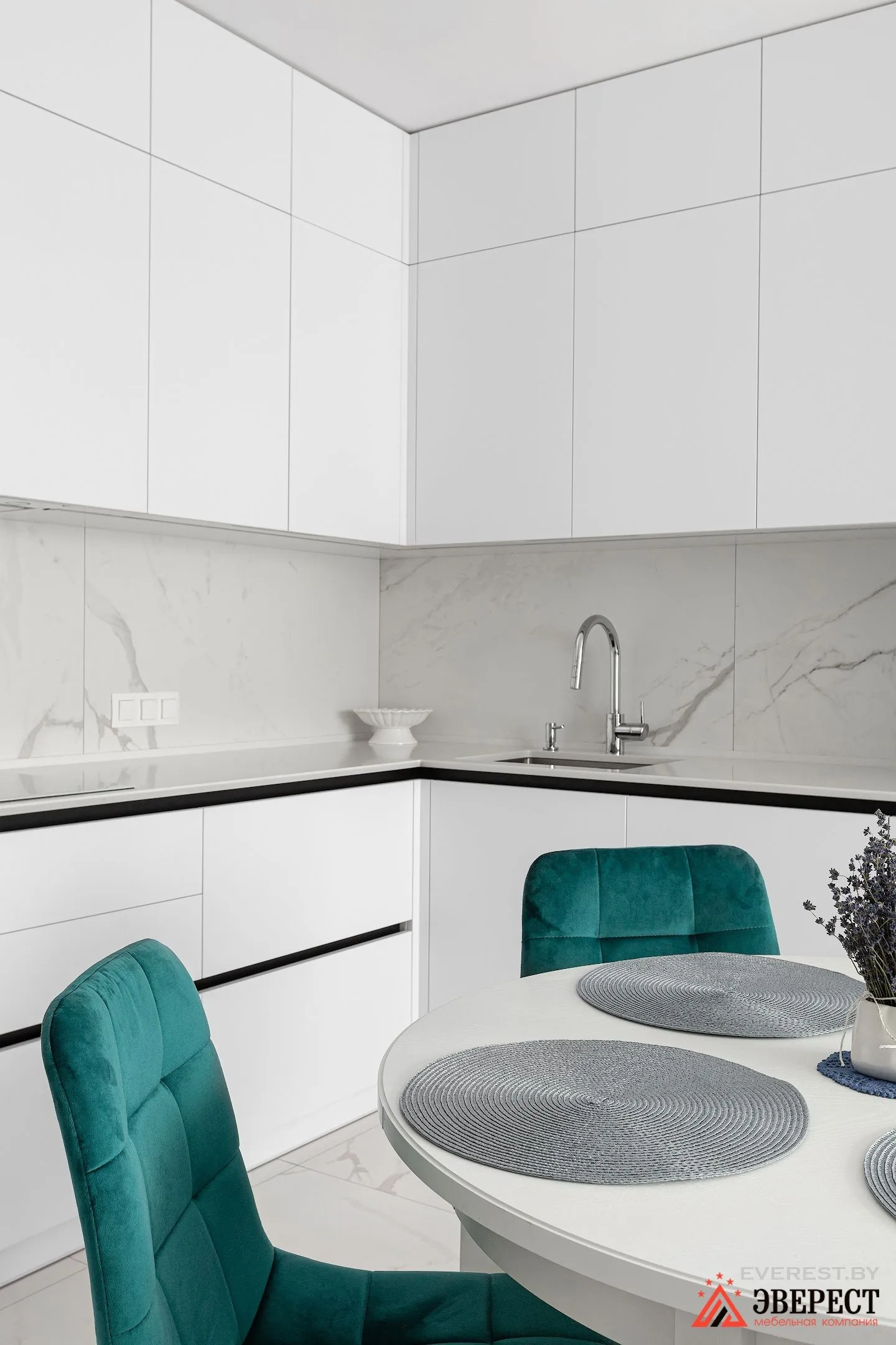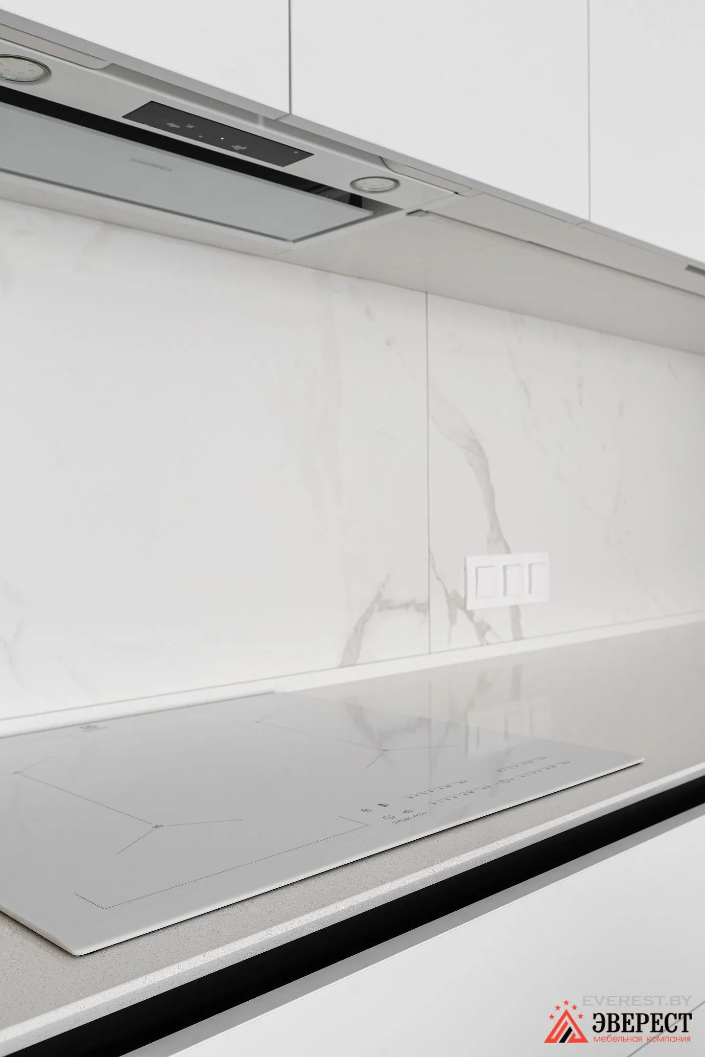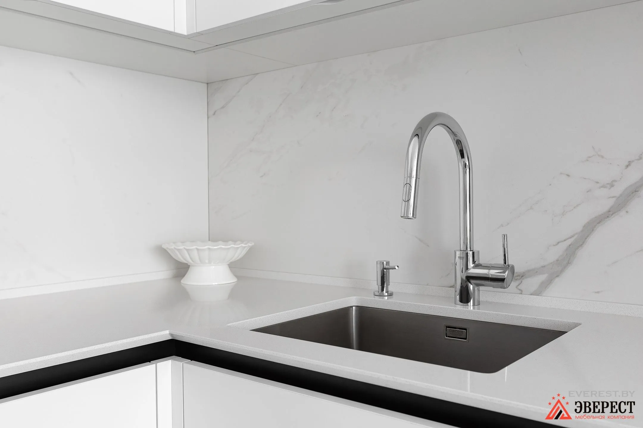 Столешница выполнена из искусственного камня — кварц ( в стоимость проекта не входит)